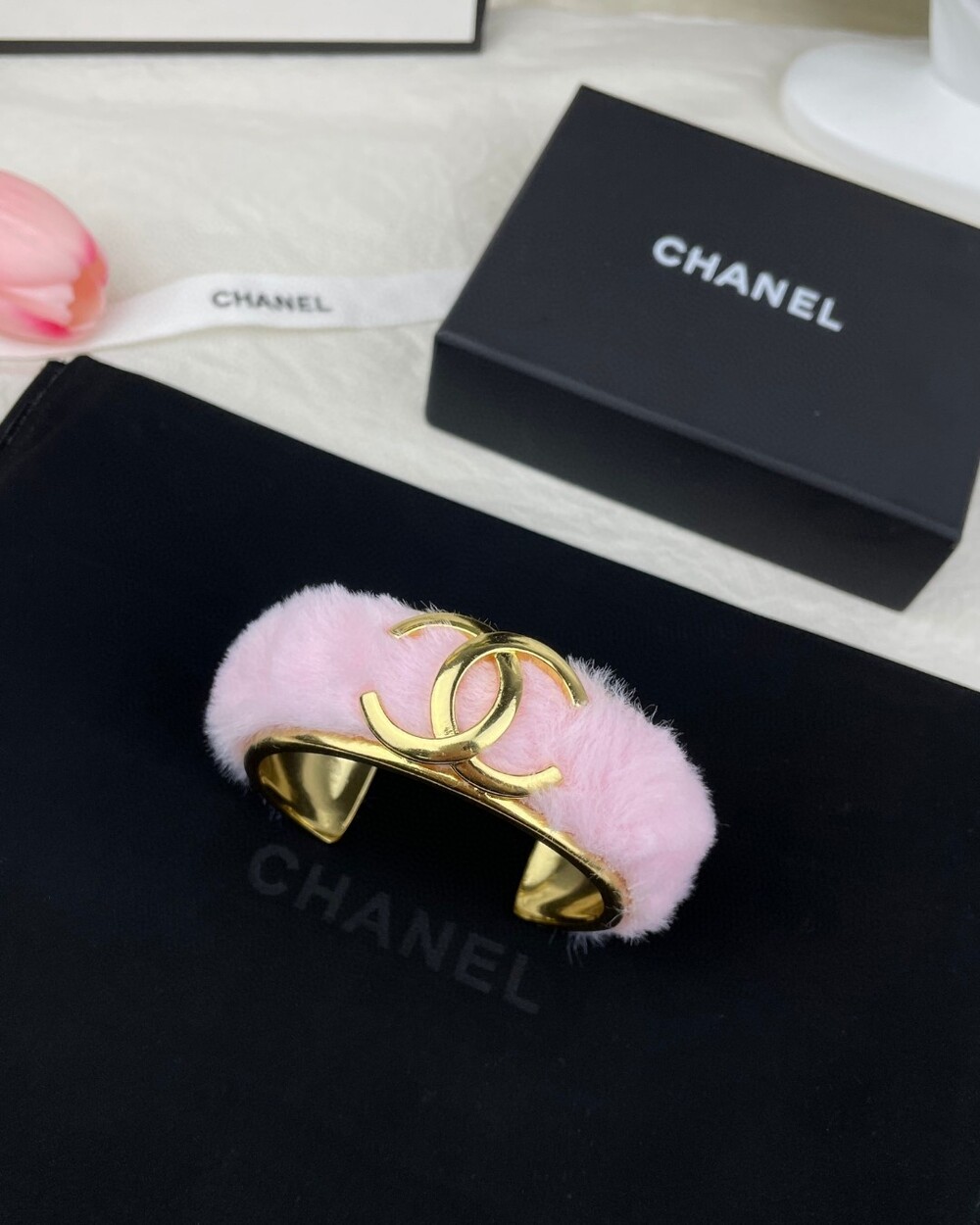 CHANEL 24 new gold pink plush opening bracelet Wrist circumference 14-18 You can wear it freely. You can accentuate it in a cute way