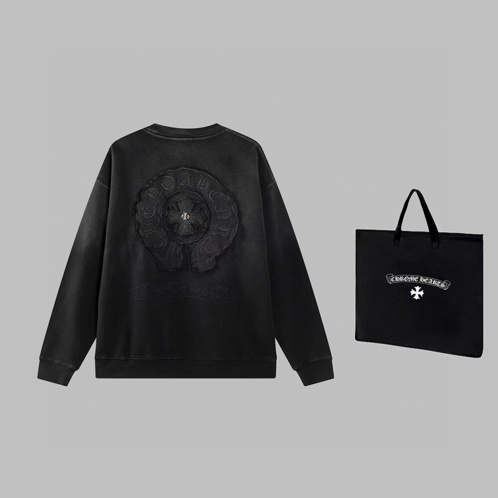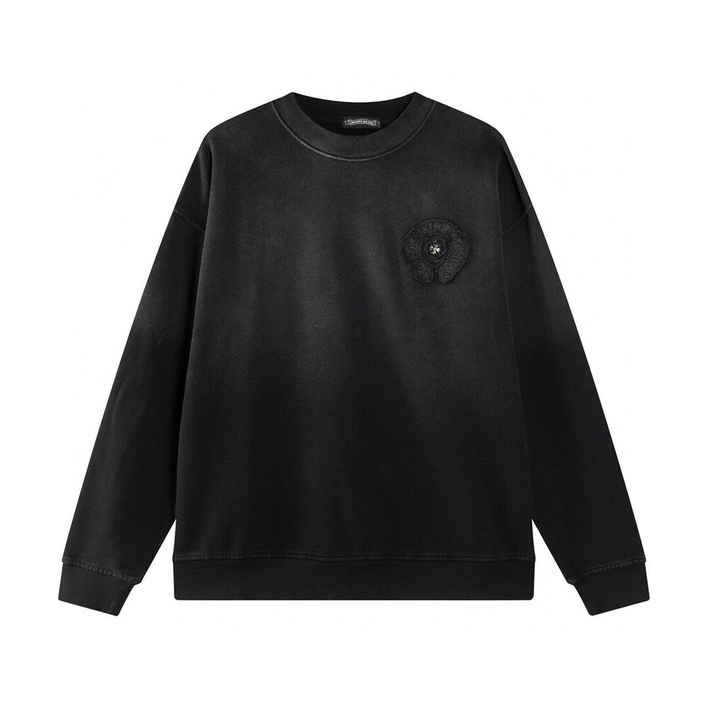 워싱이 예쁘게 빠진 블랙 크롬 맨투맨이에요