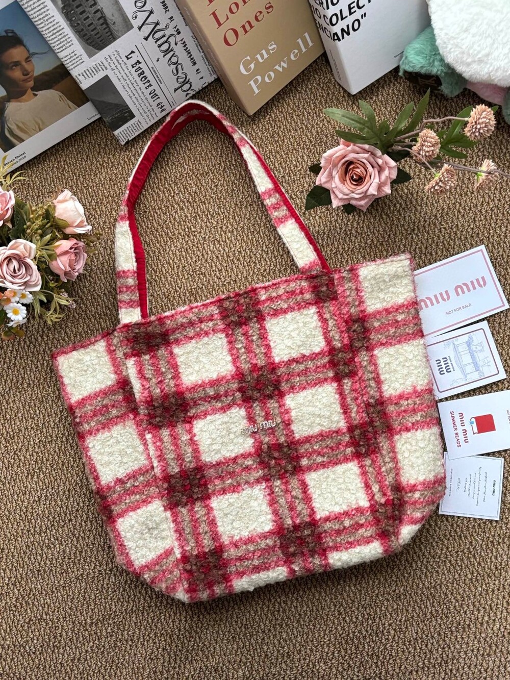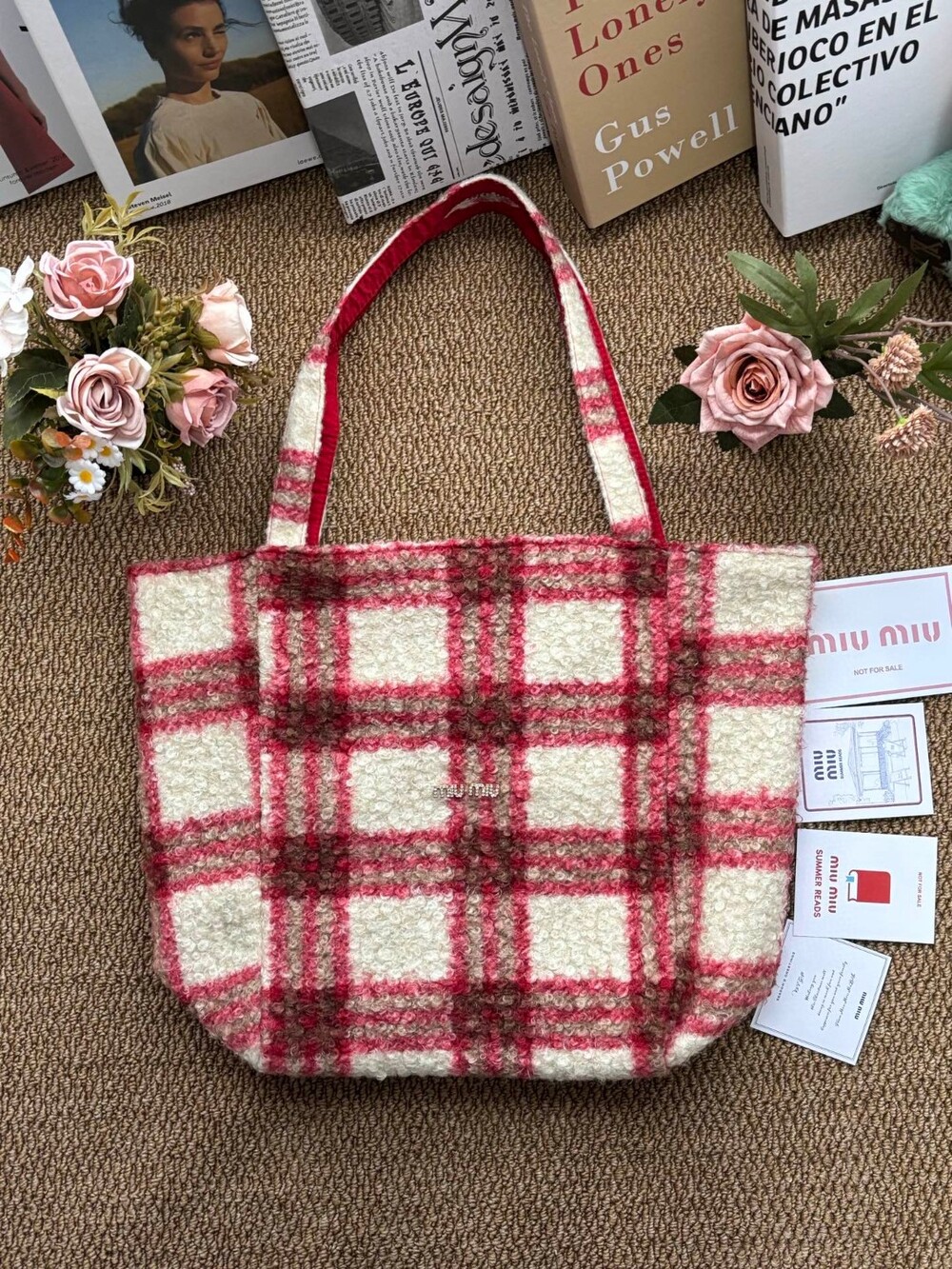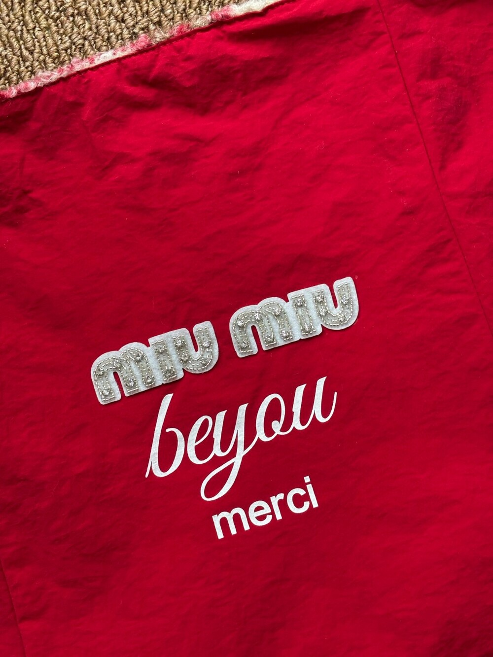 A reversible Miu Miu canvas tote bag featuring two versatile designs