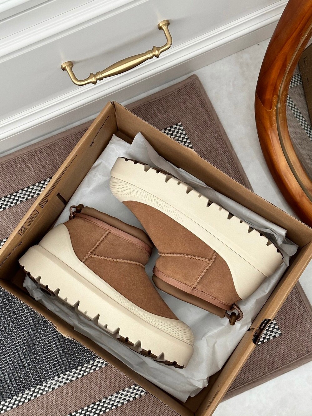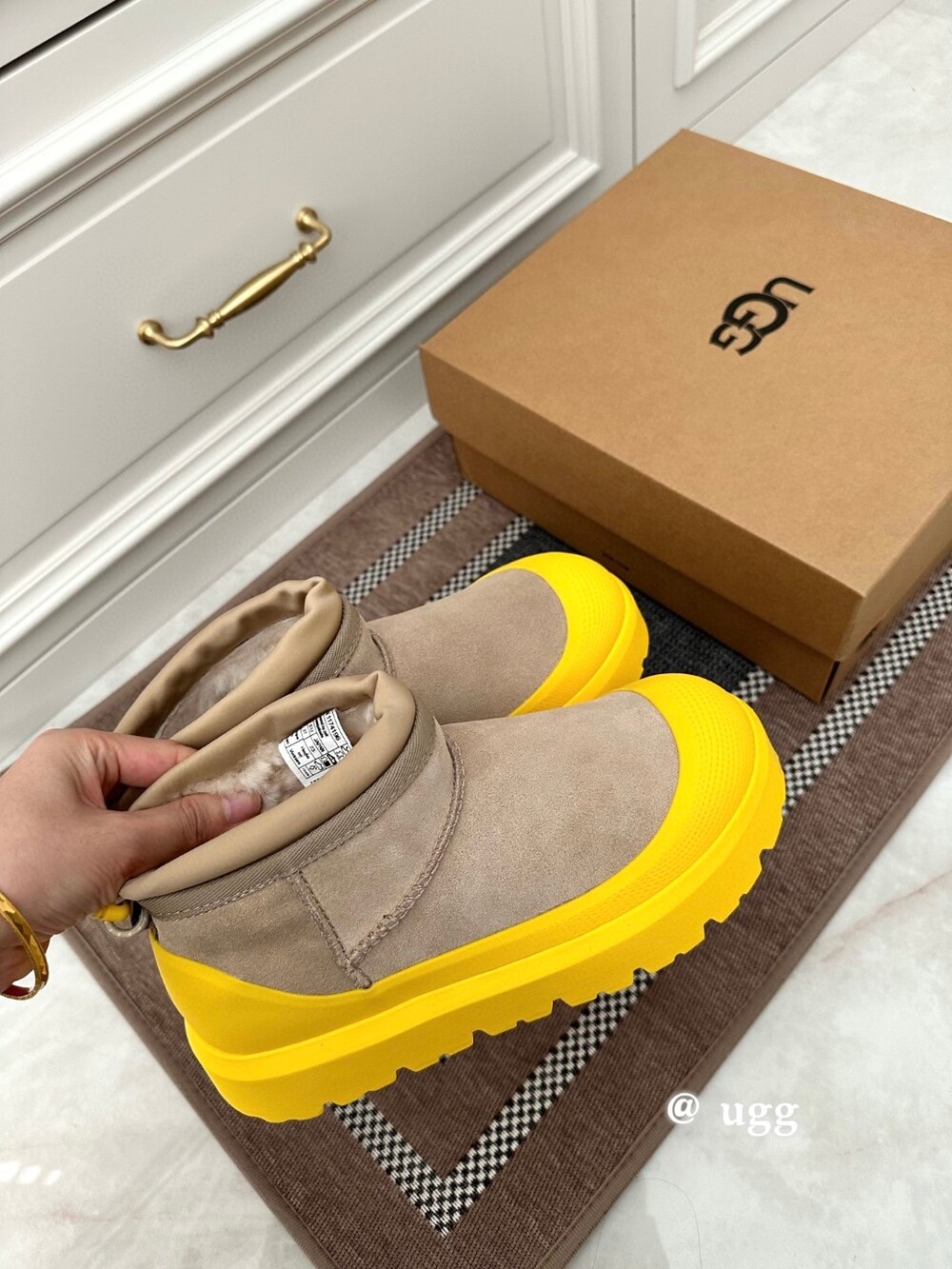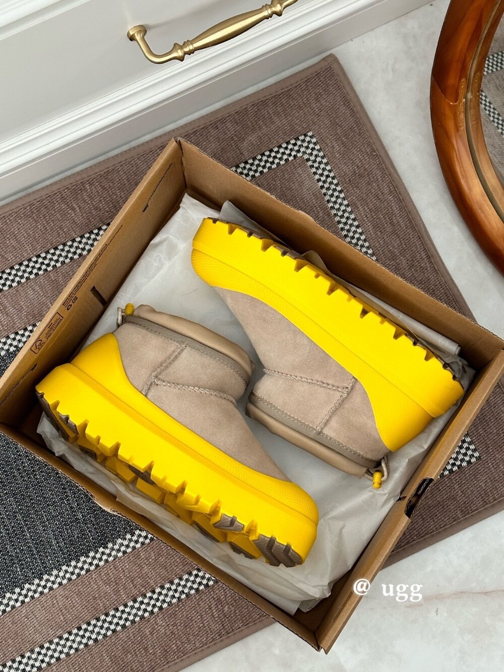 클래식한 UGG 미니 부츠를 현대적으로 재해석한