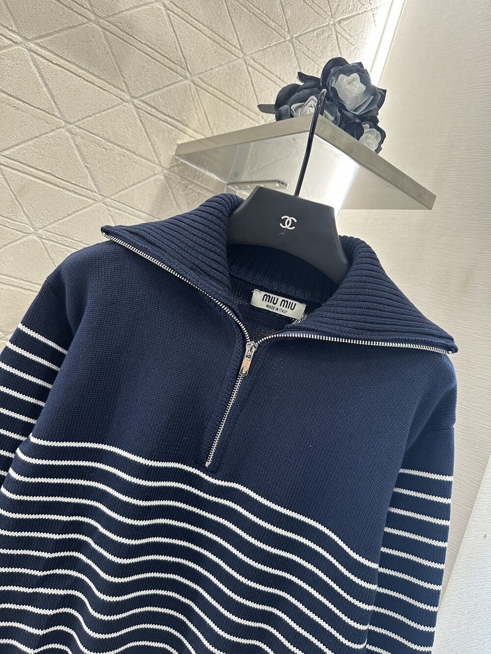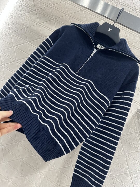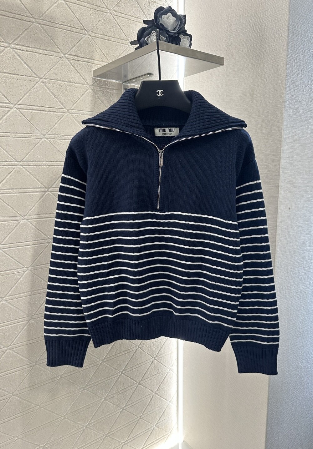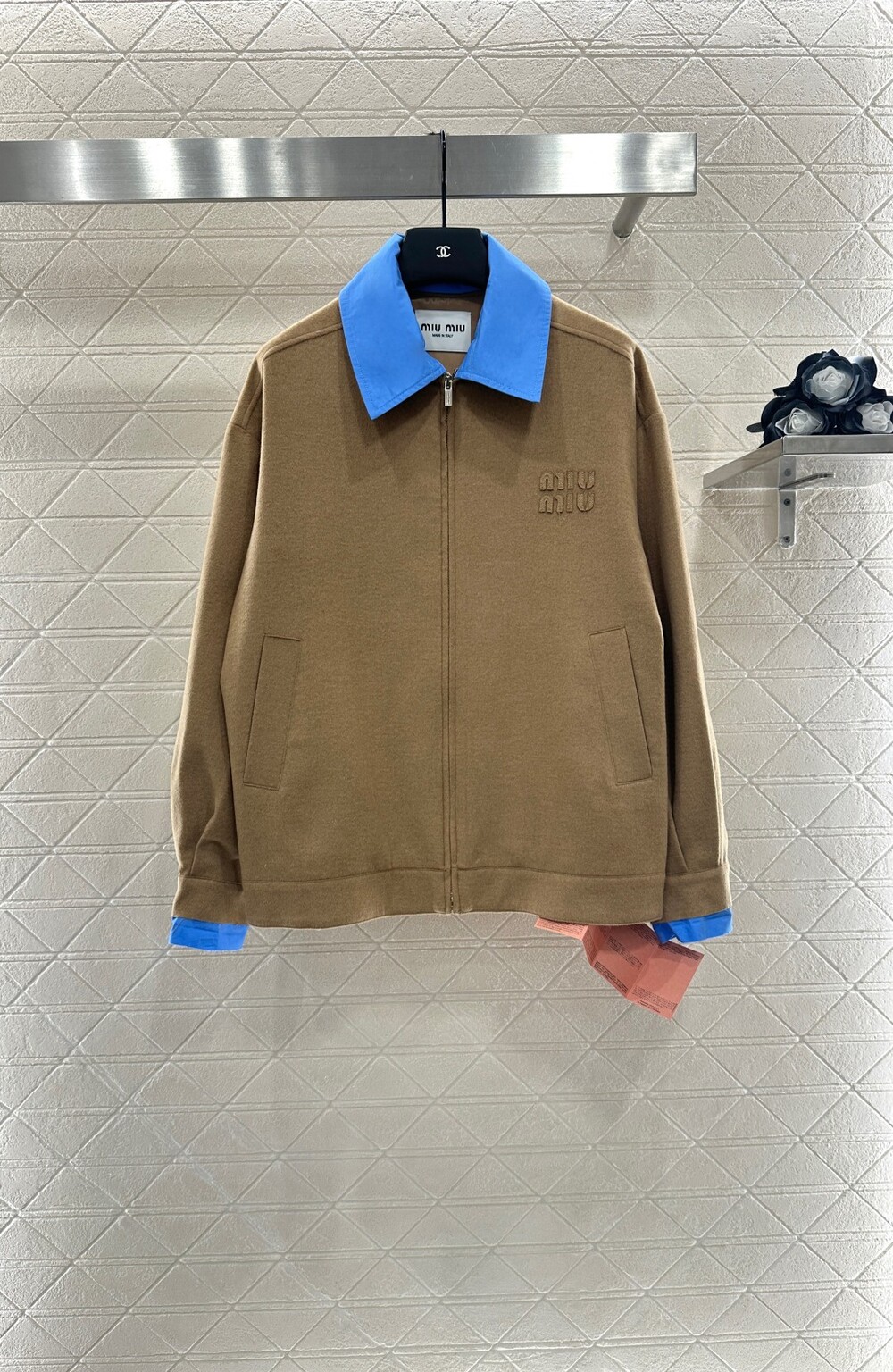M. 뮤뮤 배색 블루 카라 클래식점퍼