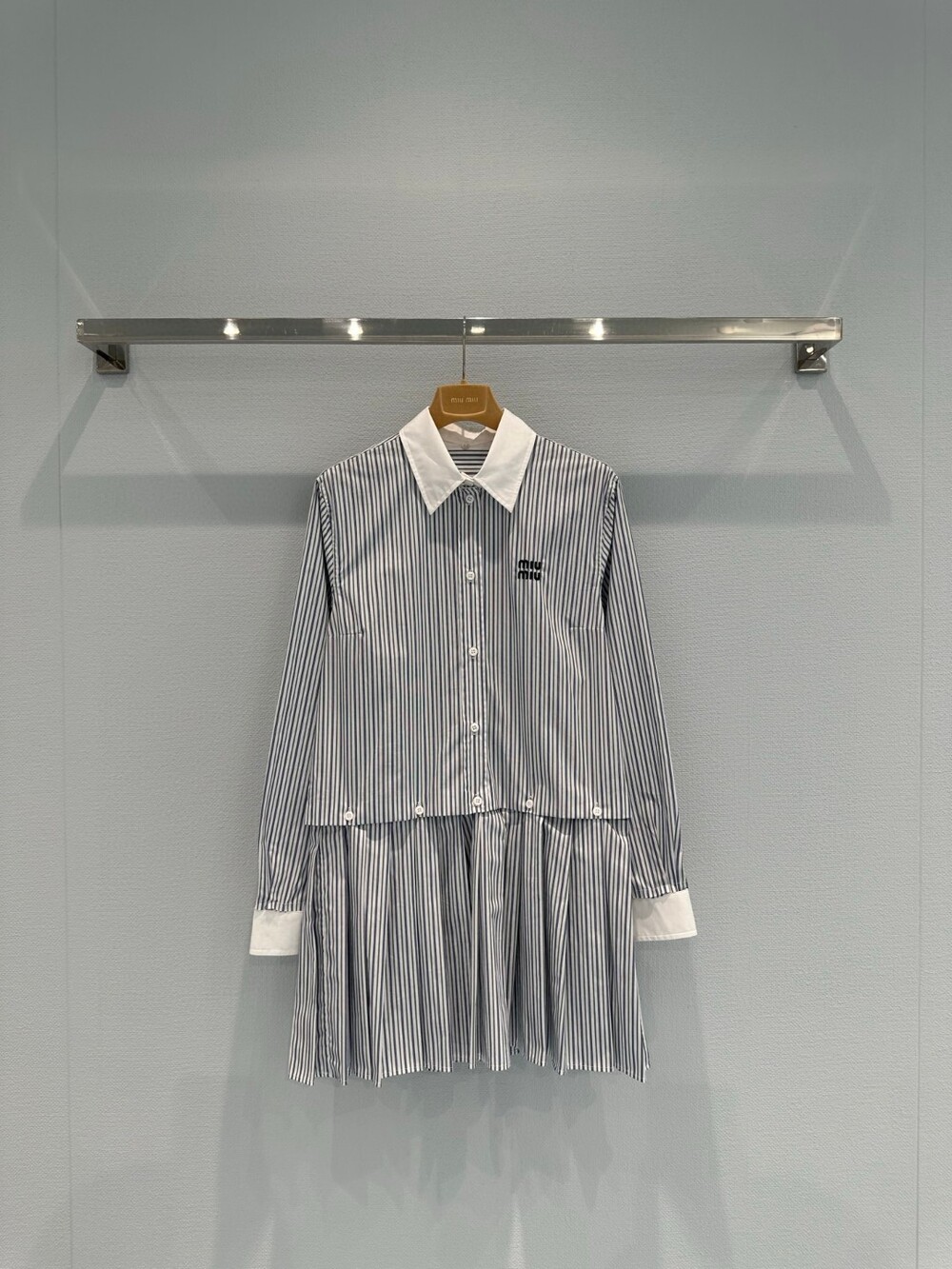 N. 뮤뮤 플리츠 버튼 셔츠 원피스