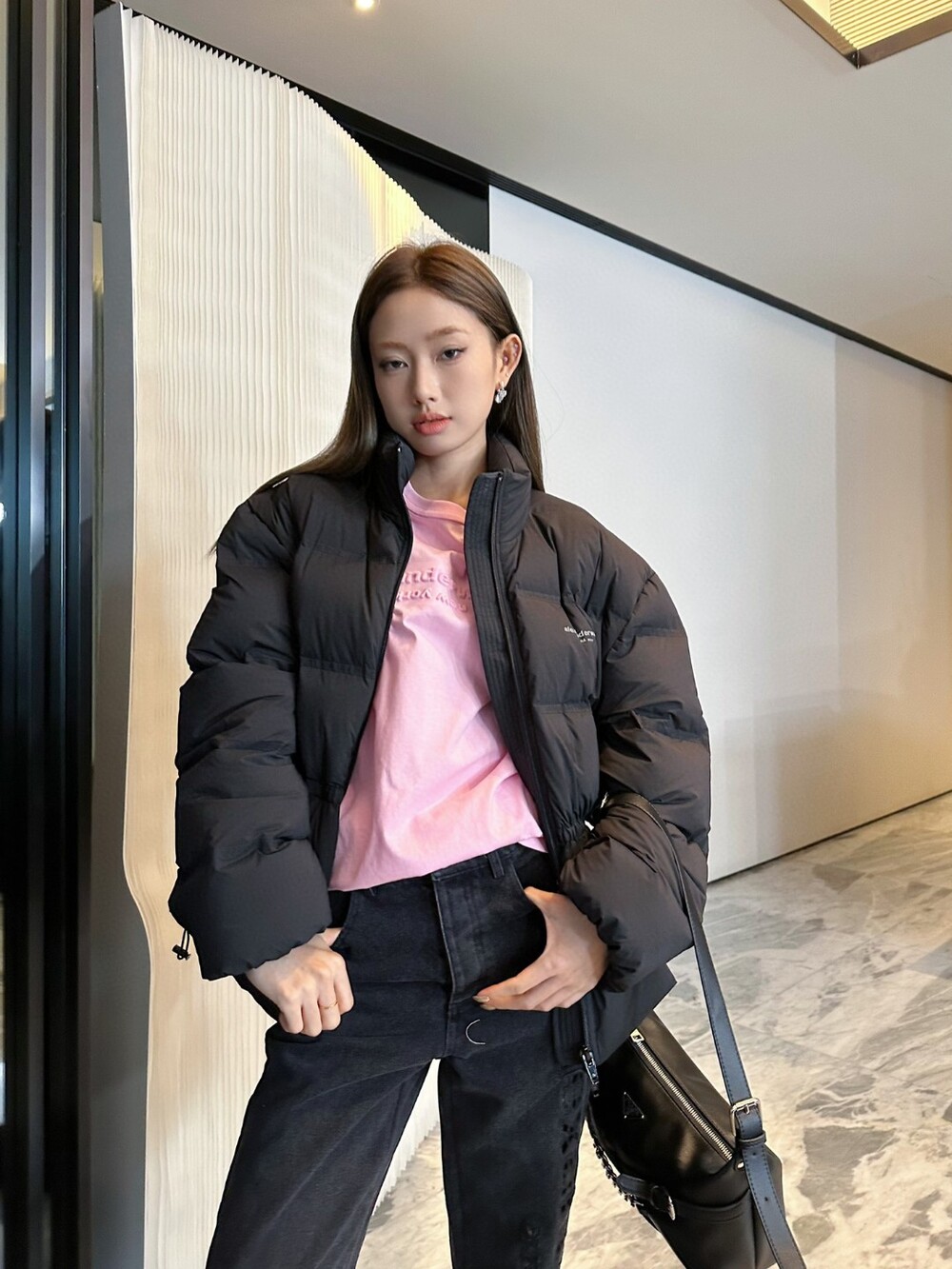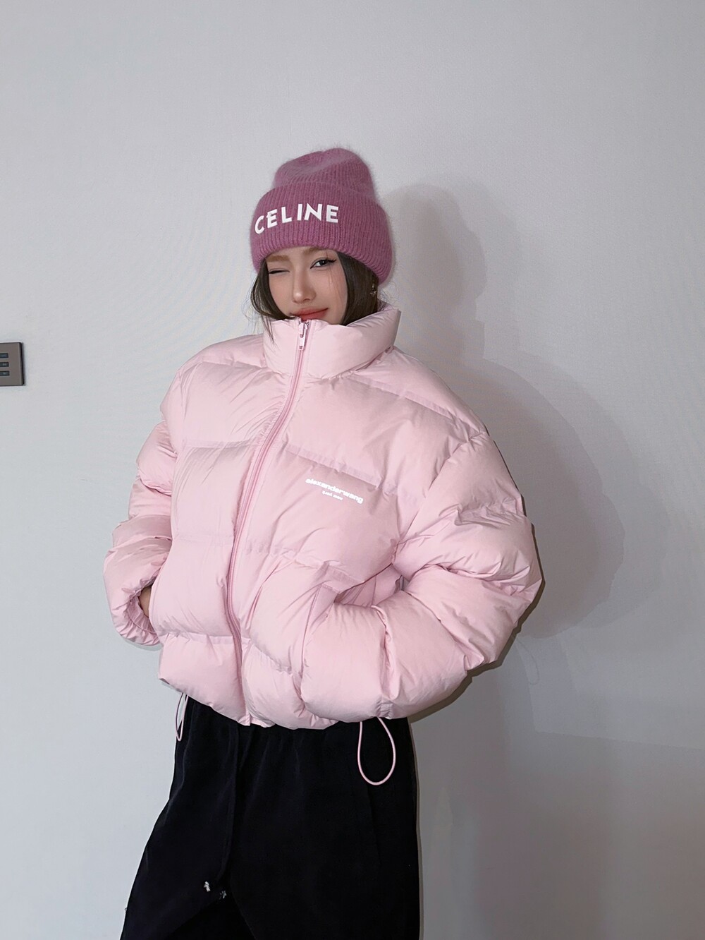 M. 뮤뮤 소프트 핑크 패디드 다운점퍼