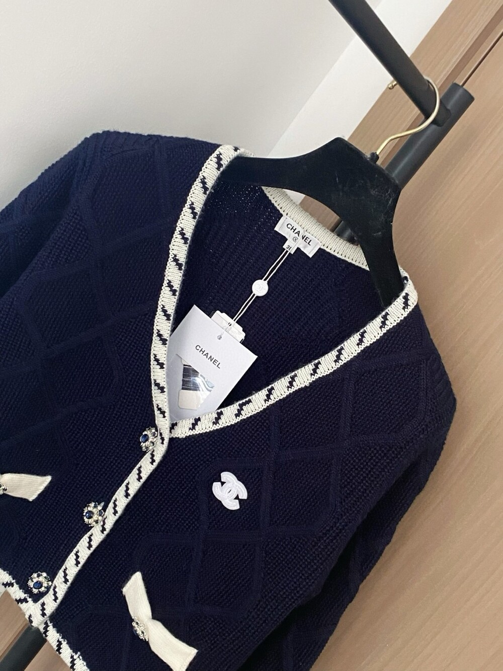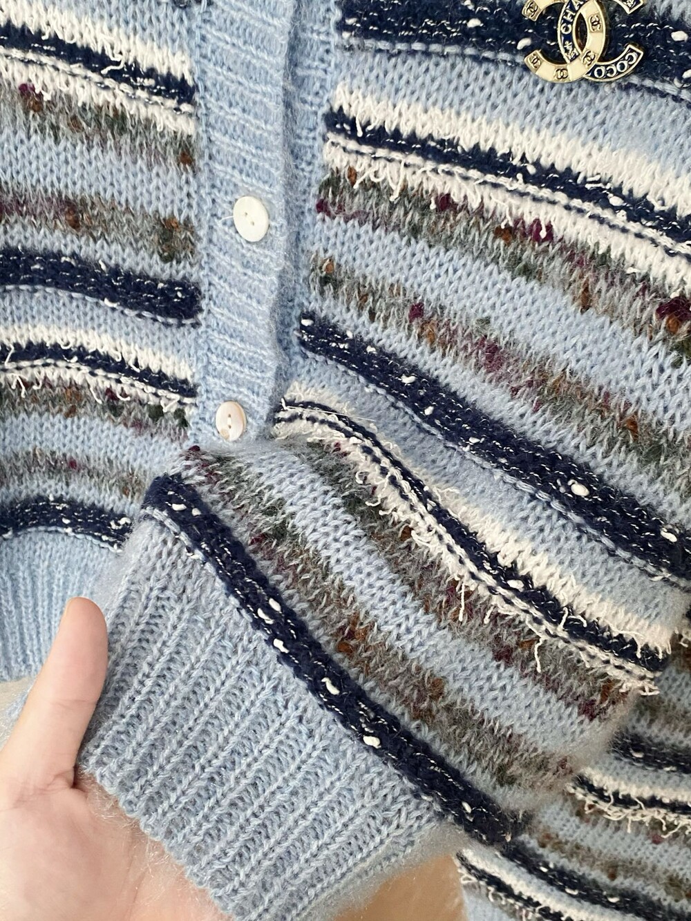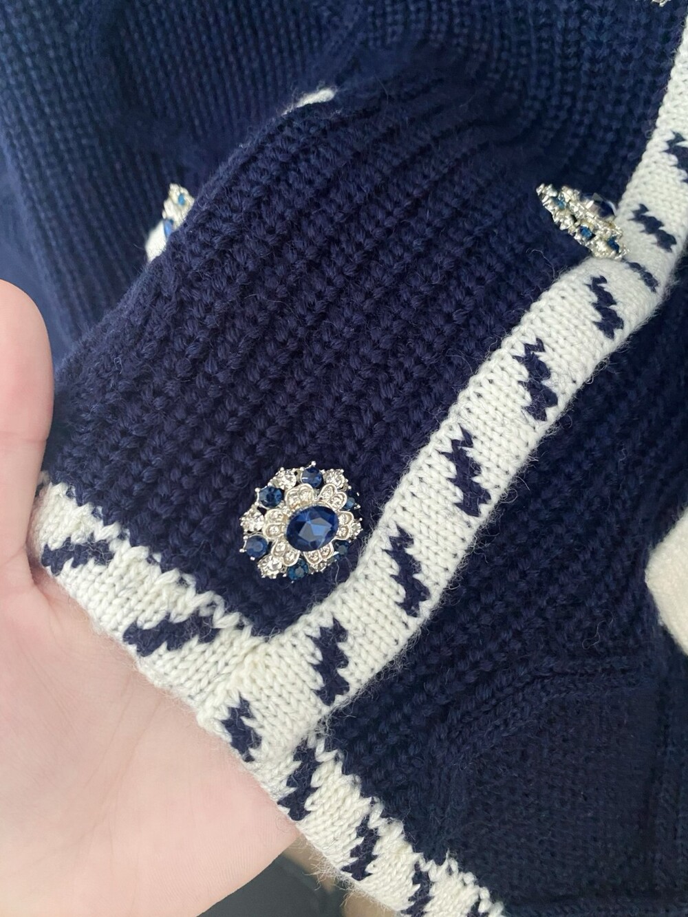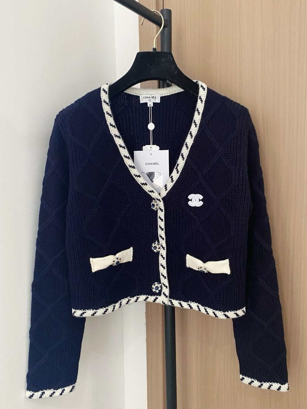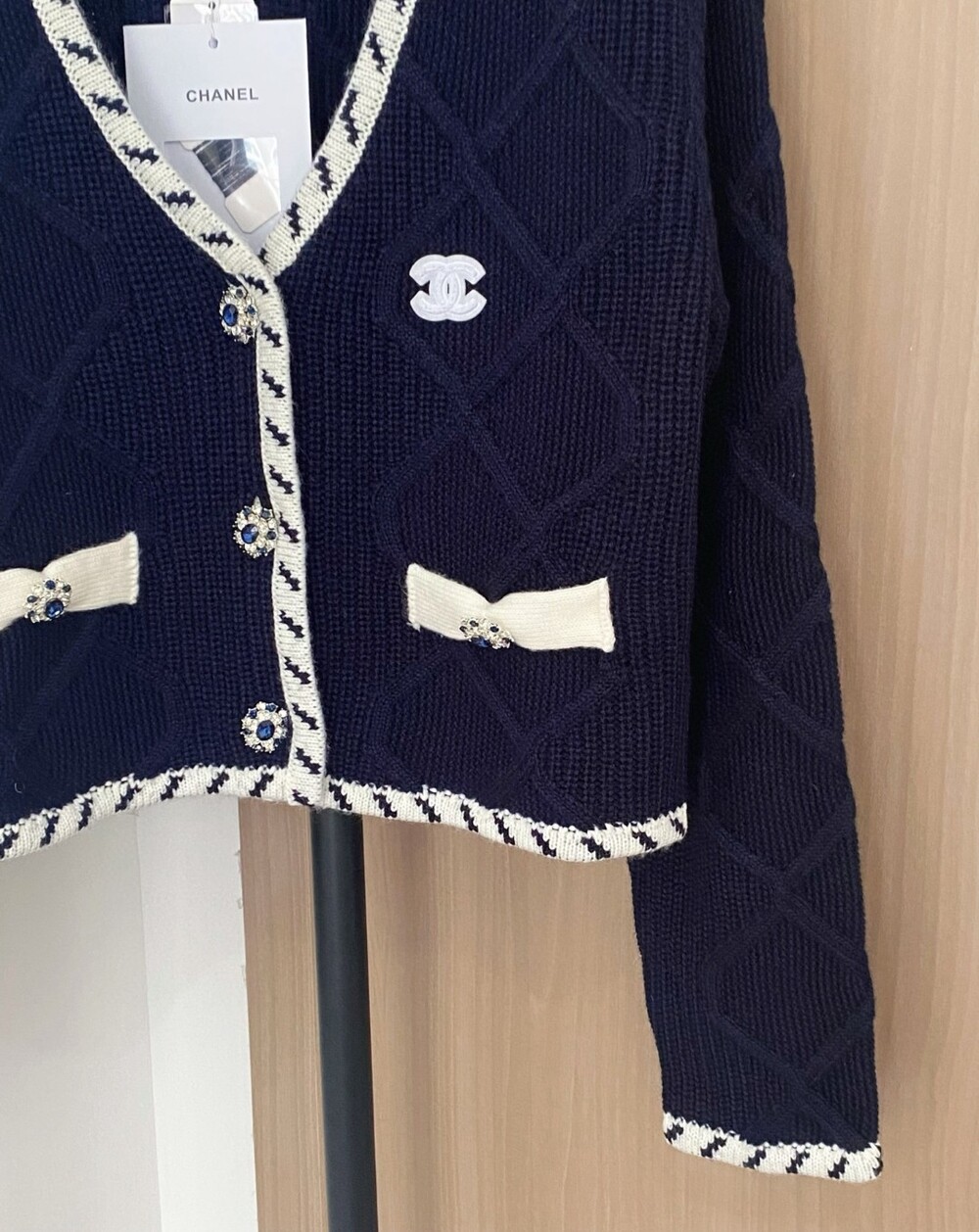 D. CC 마린 퀼팅 배색 크롭 가디건