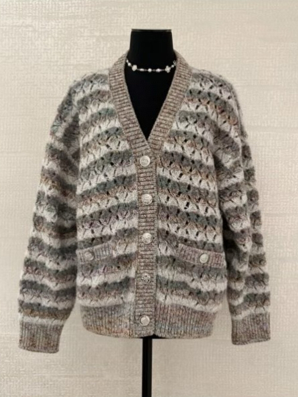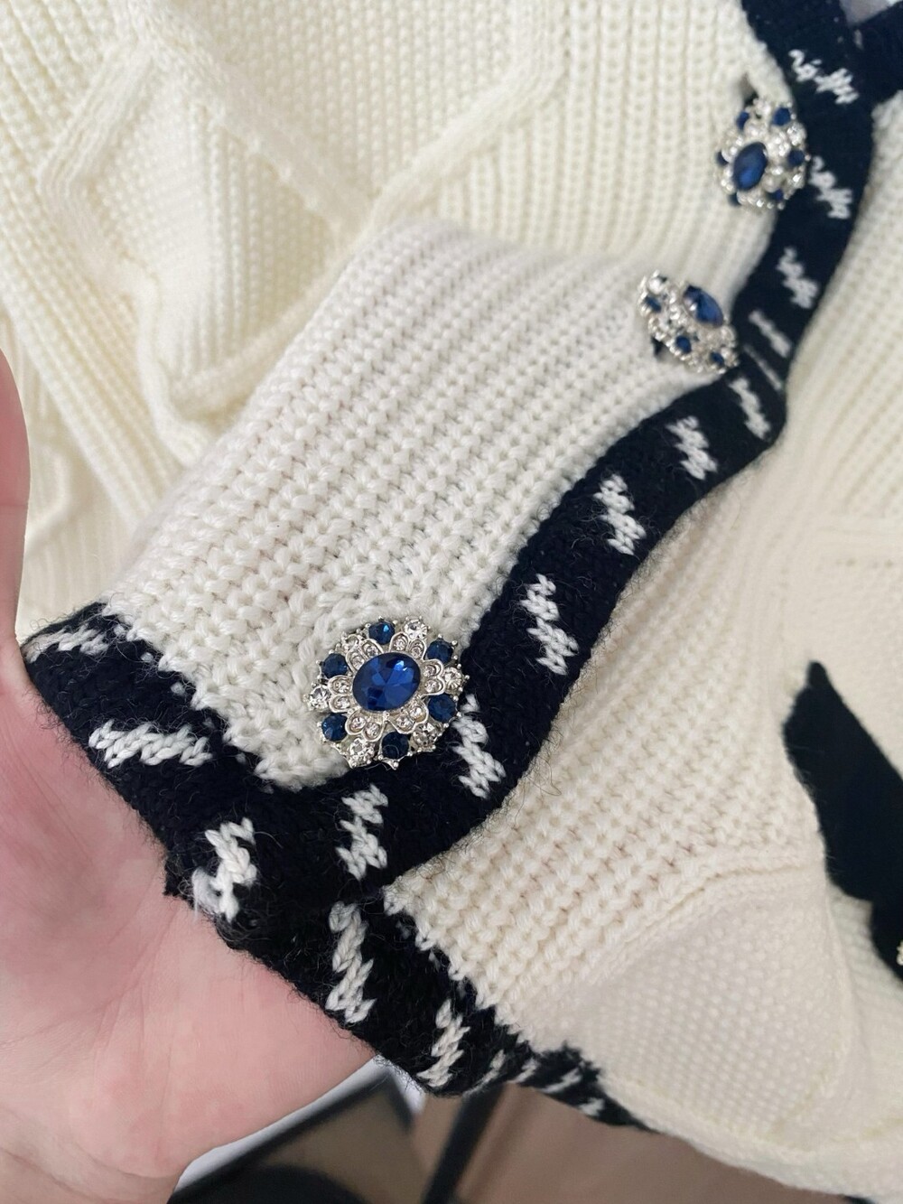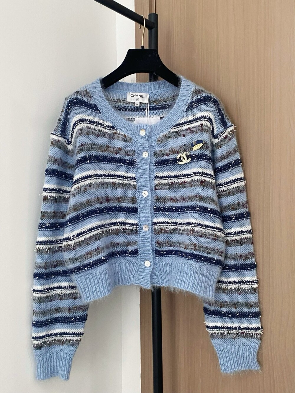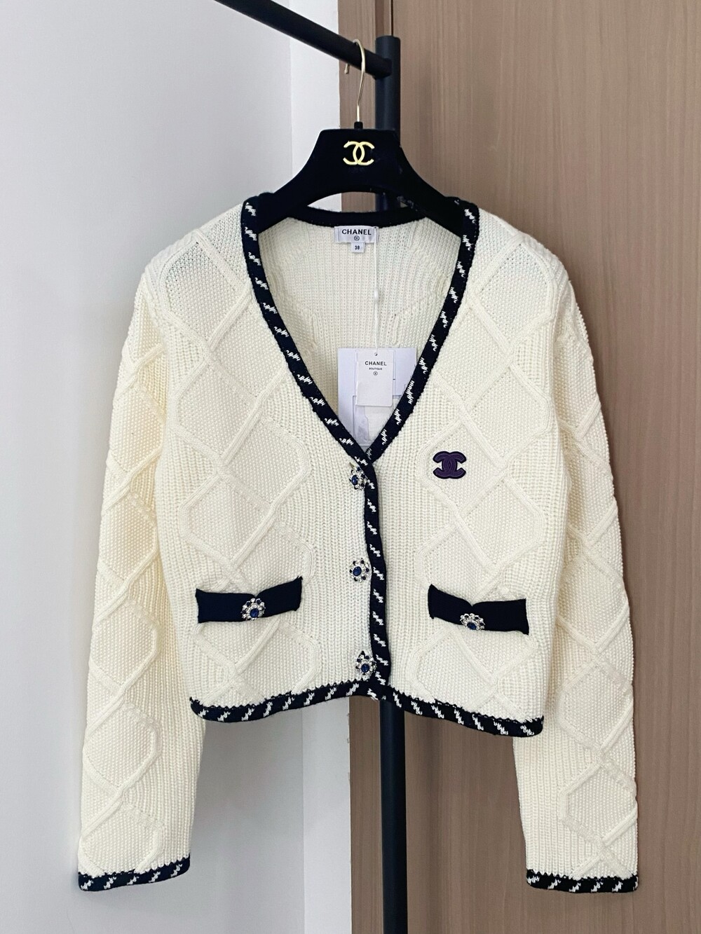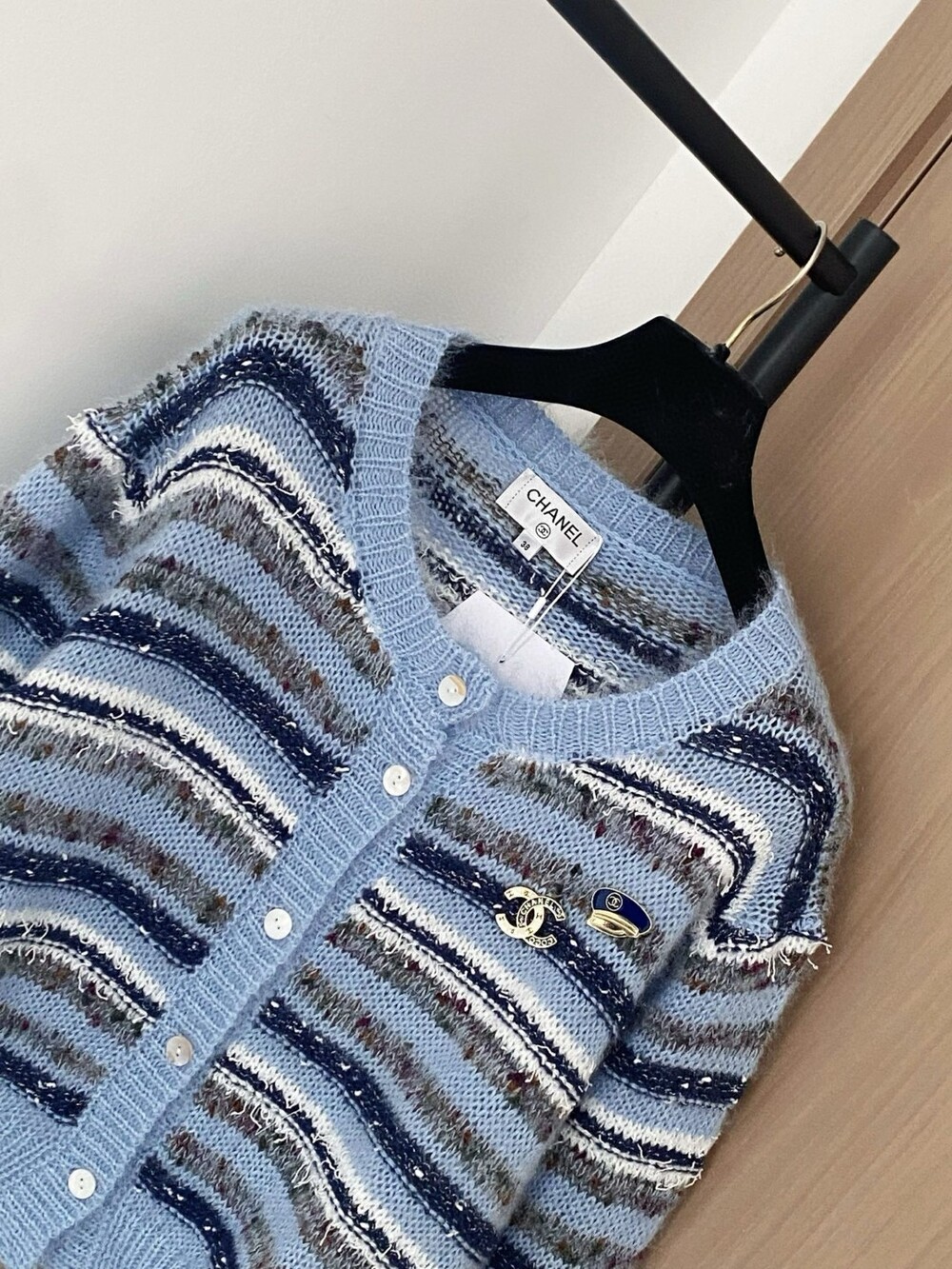 D. CC 마린 퀼팅 배색 크롭 가디건
