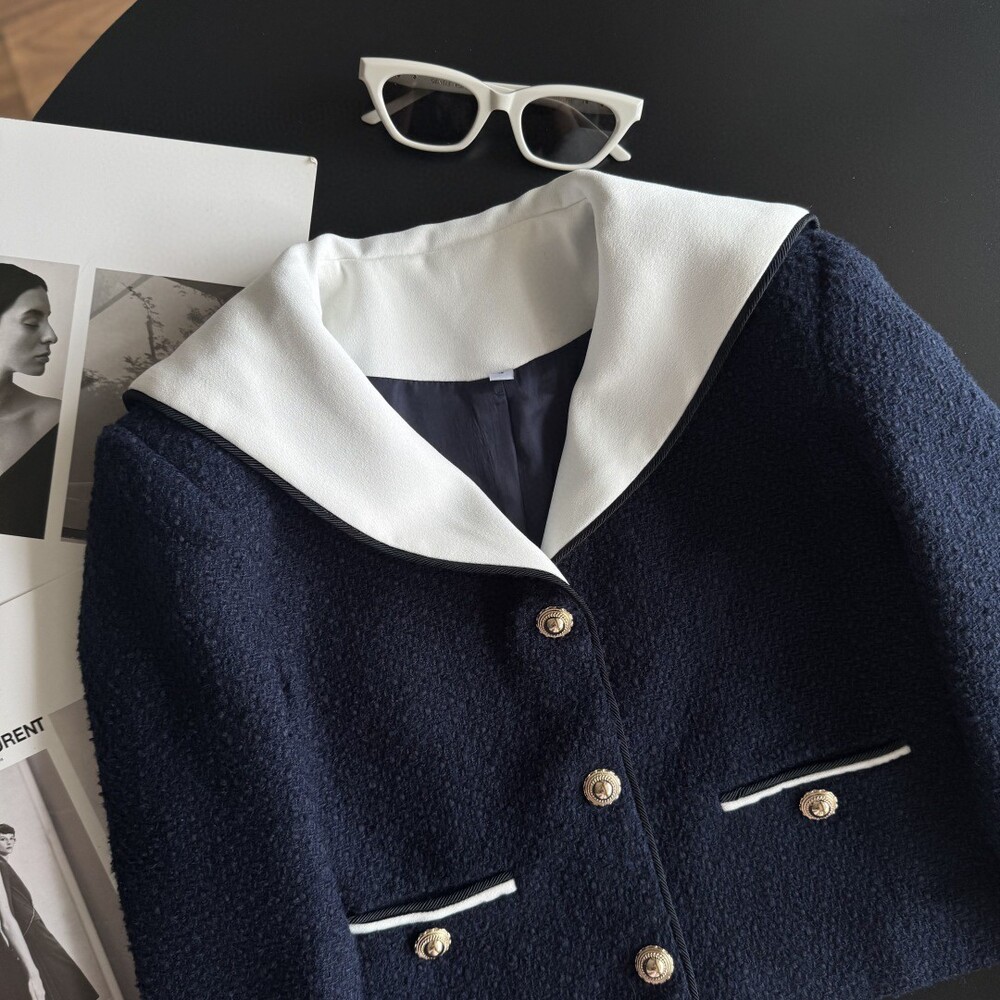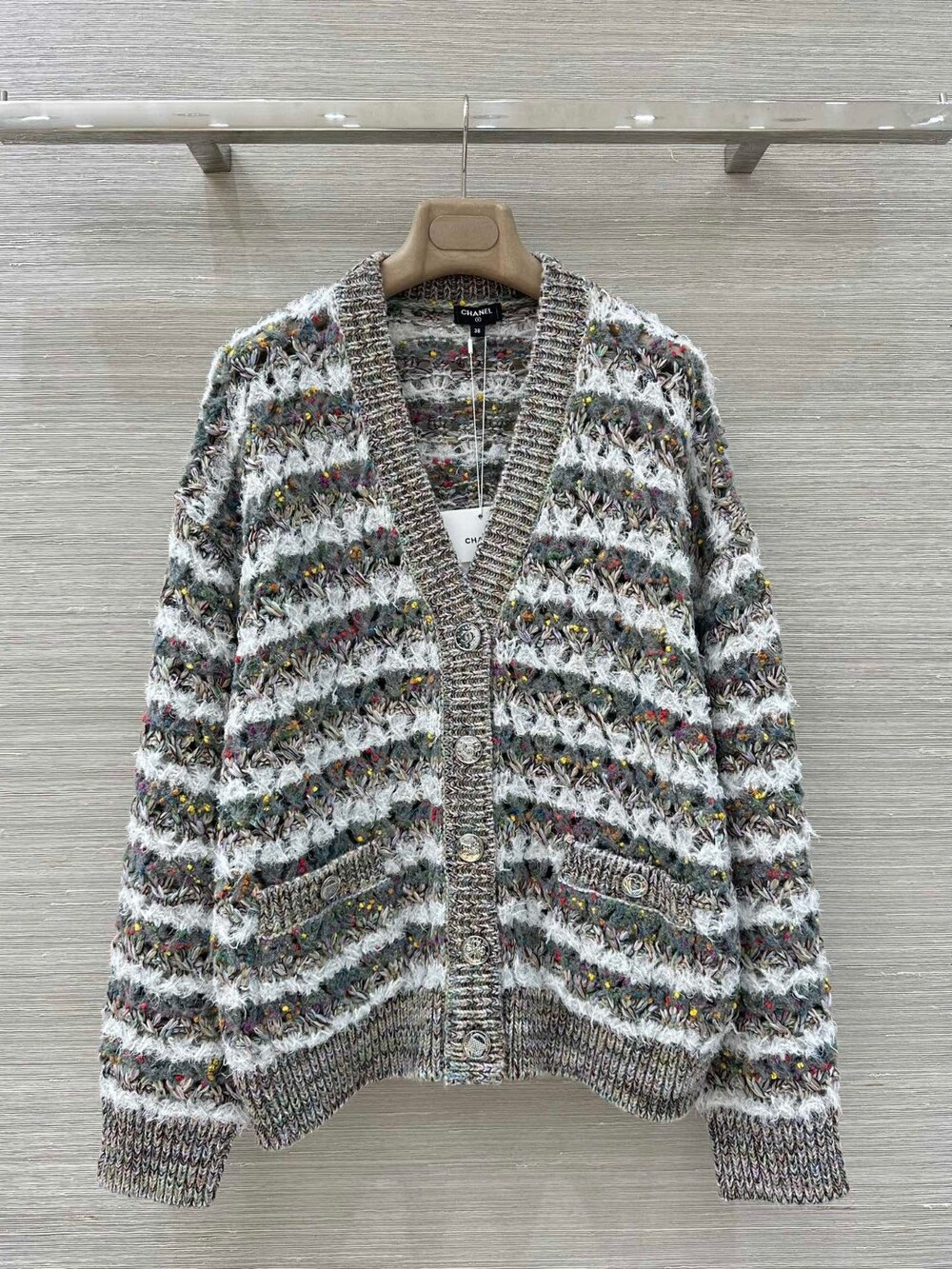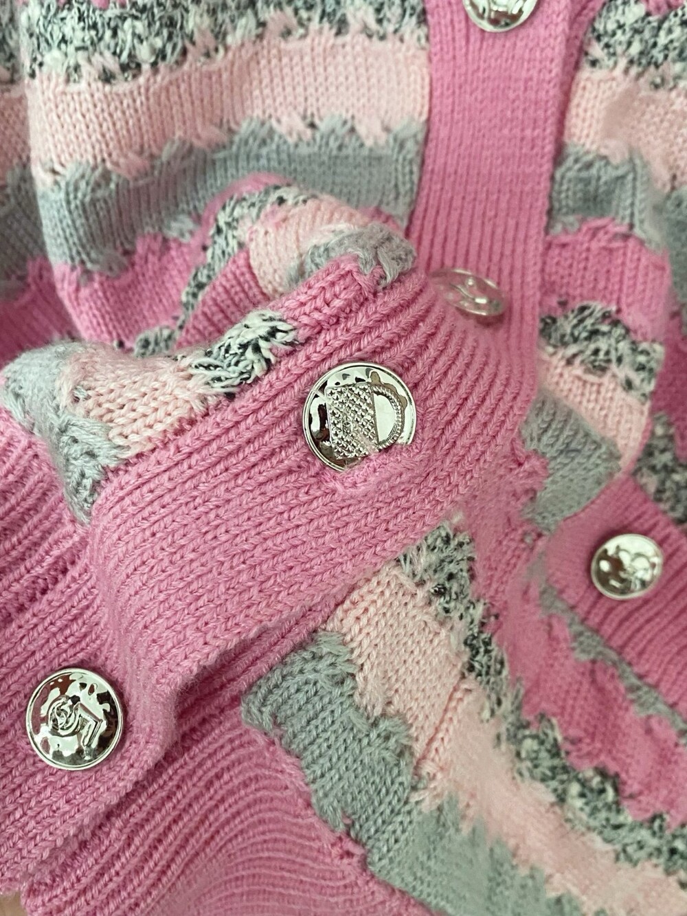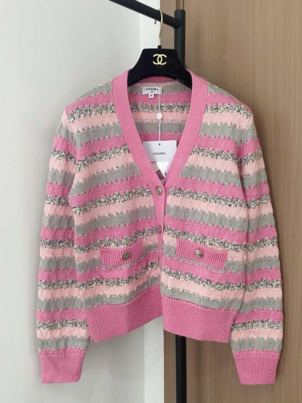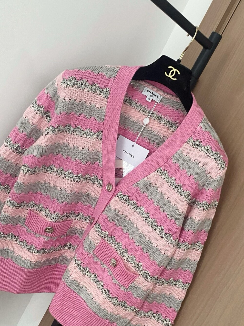 D. CC 마린 퀼팅 배색 크롭 가디건