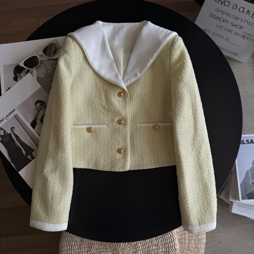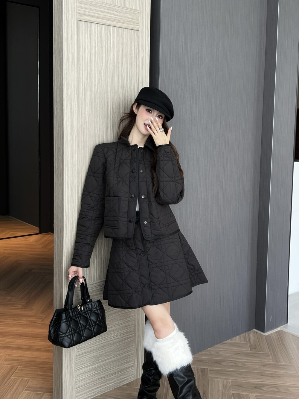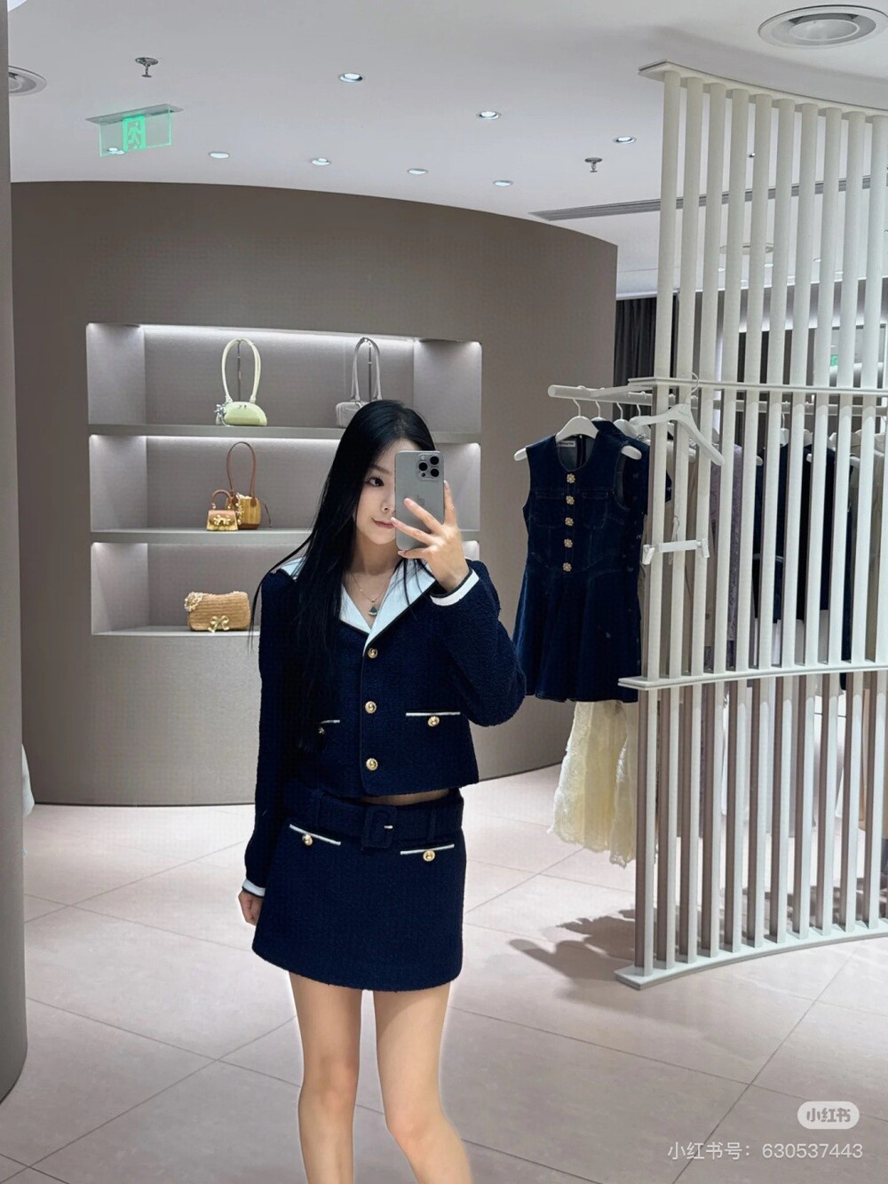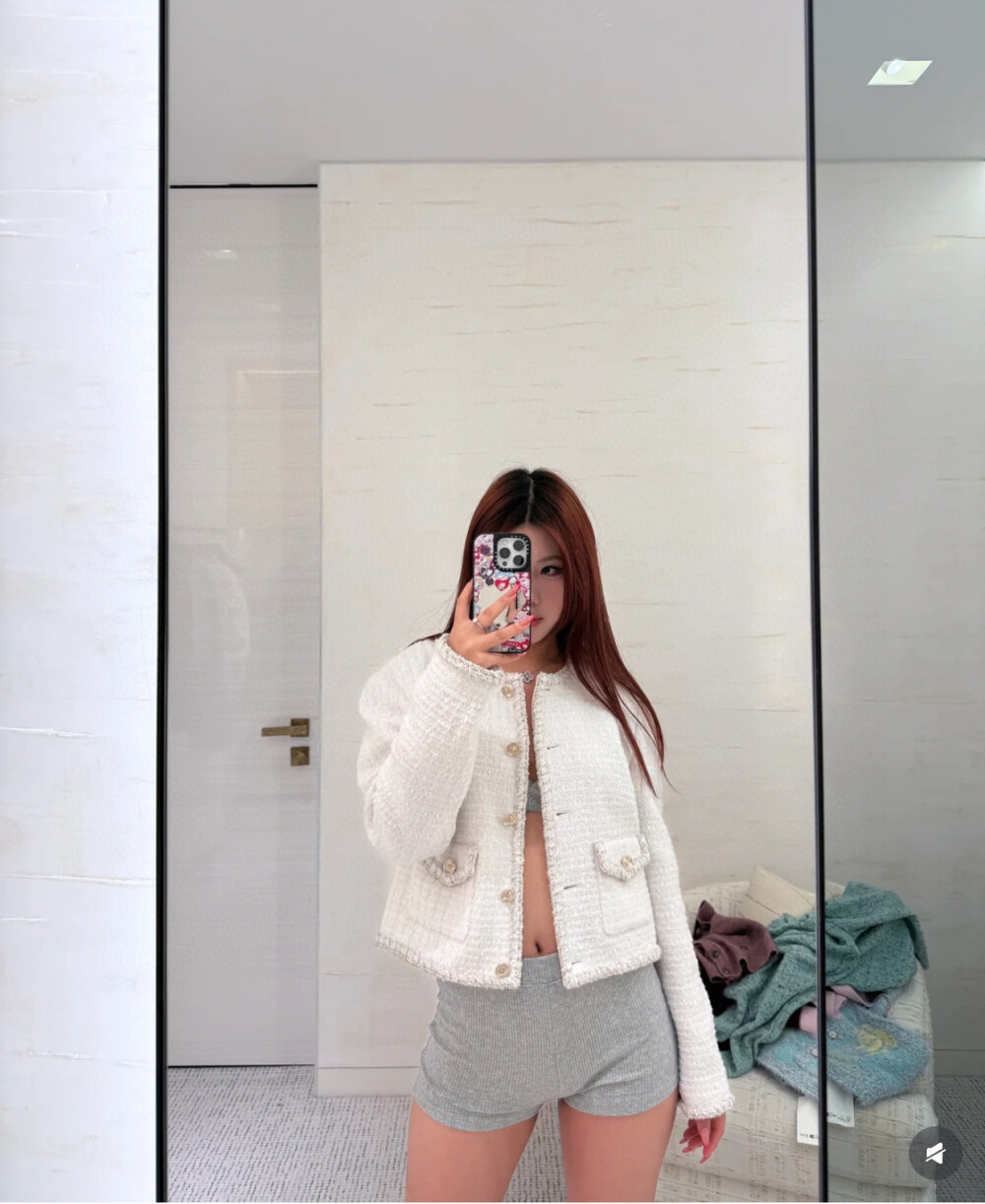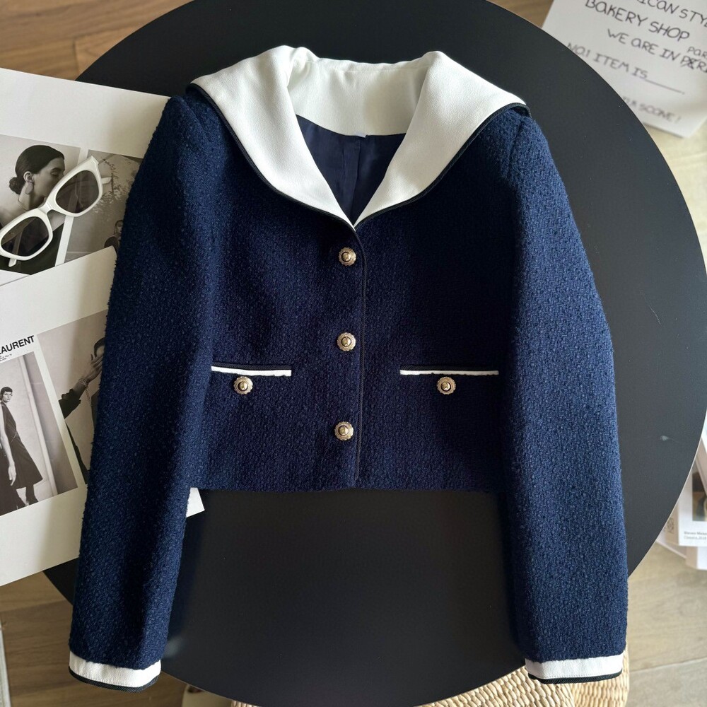 D. CC 마린 퀼팅 배색 크롭 가디건