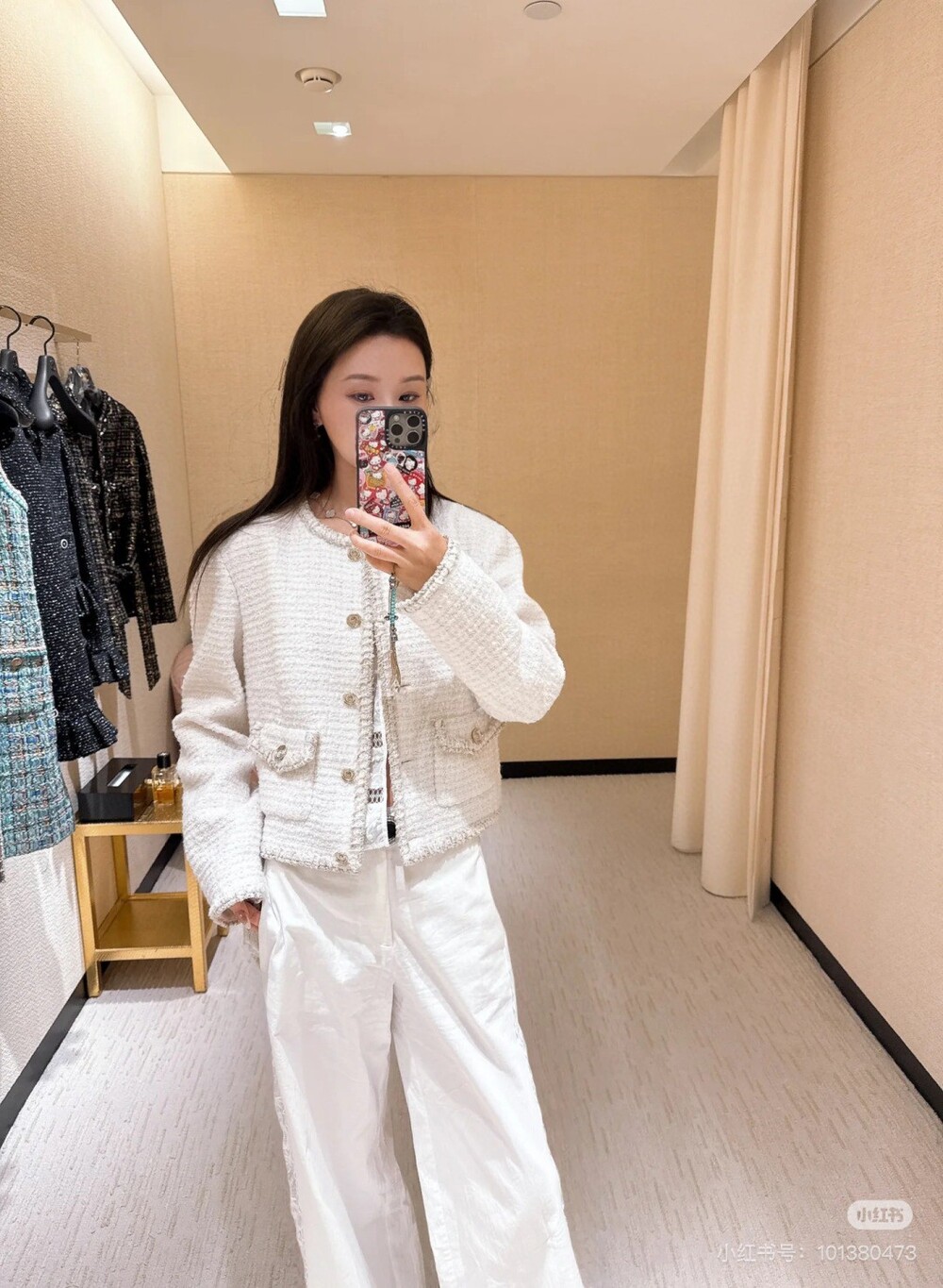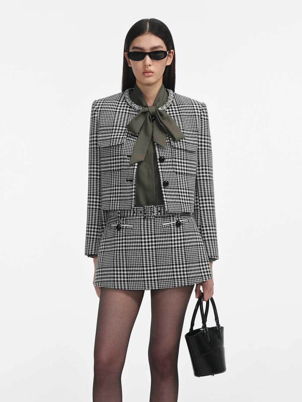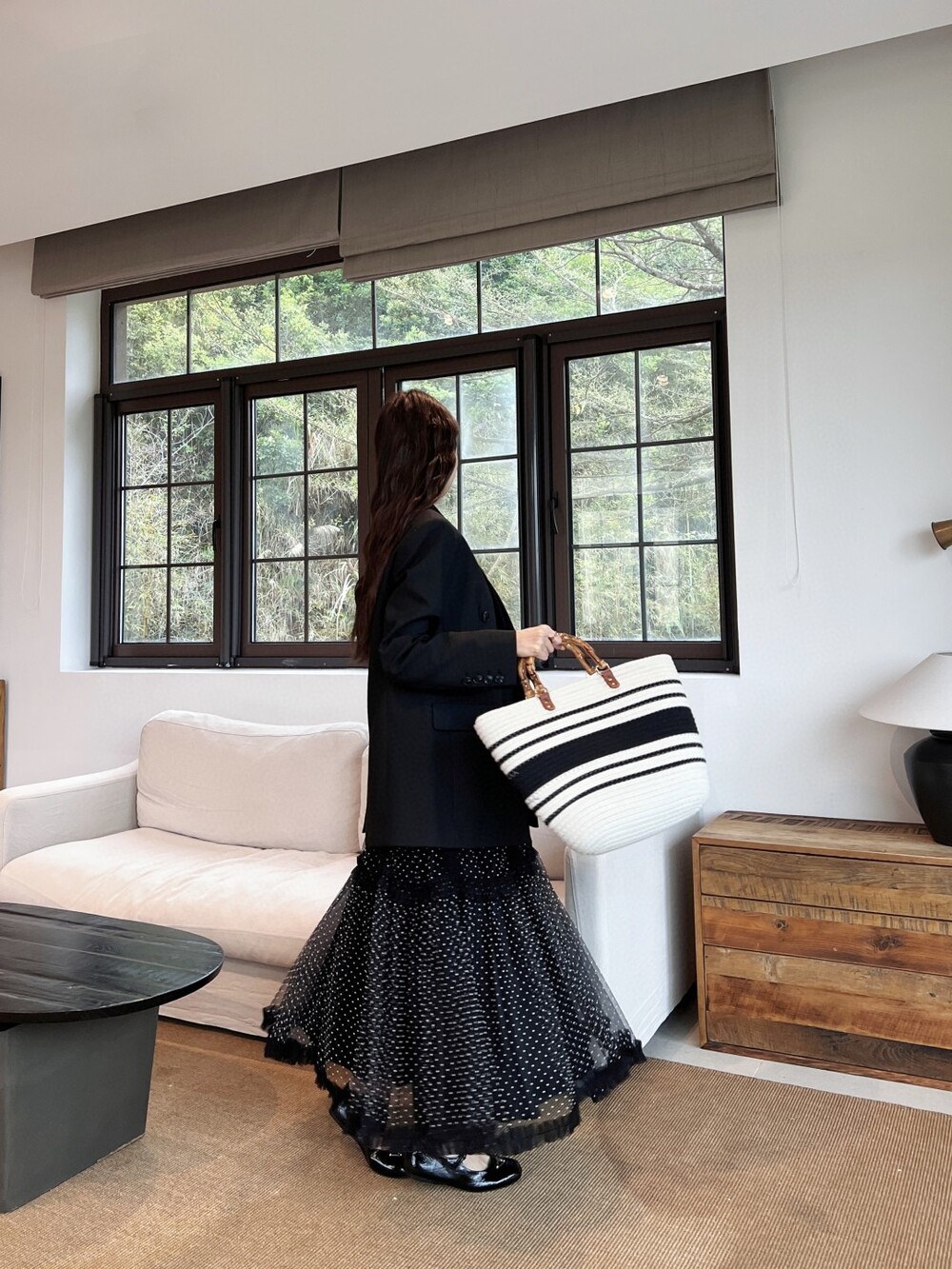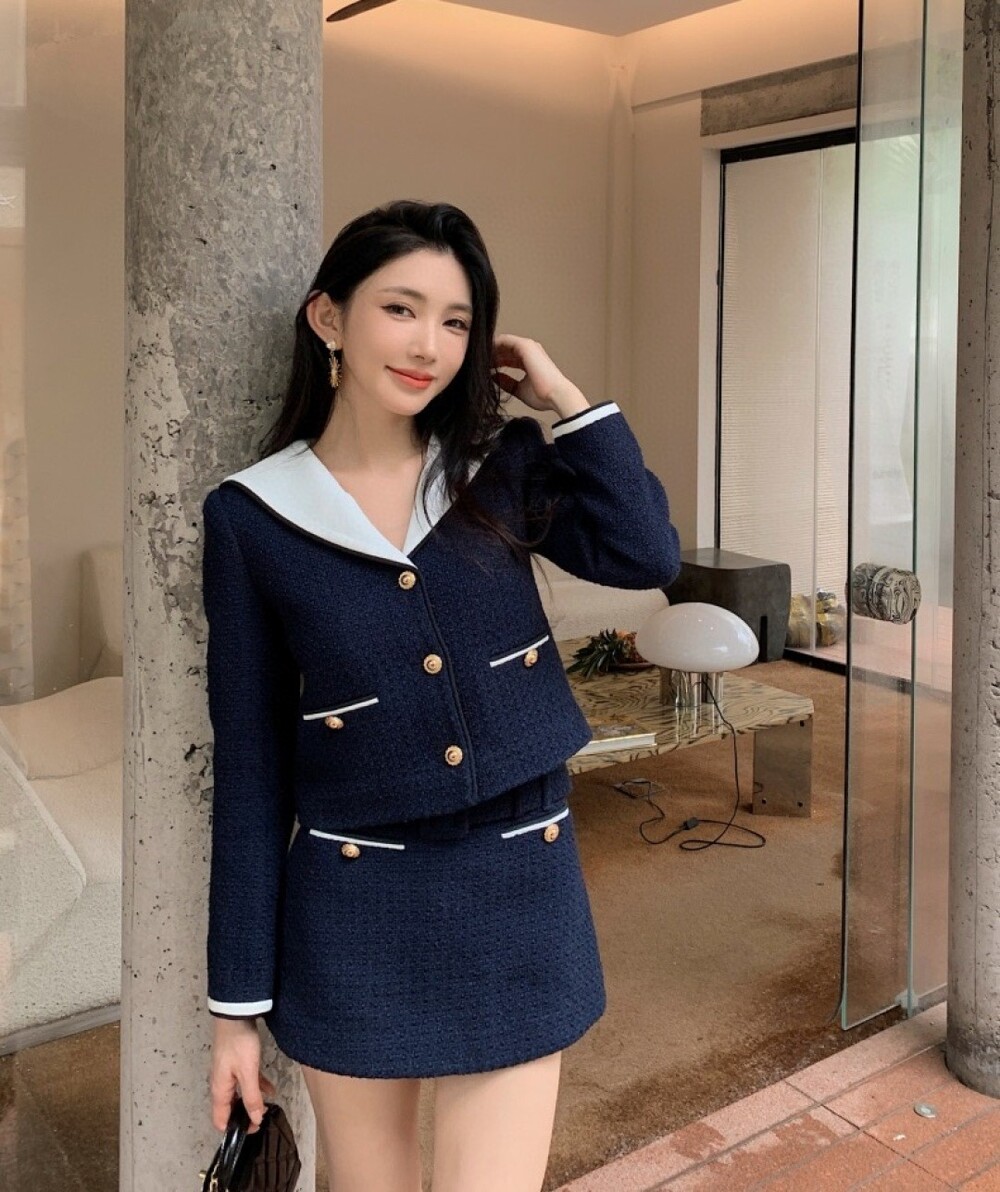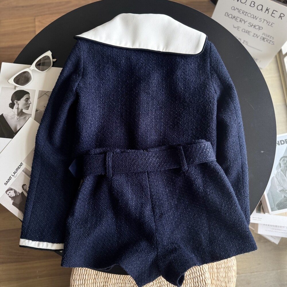 D. CC 마린 퀼팅 배색 크롭 가디건