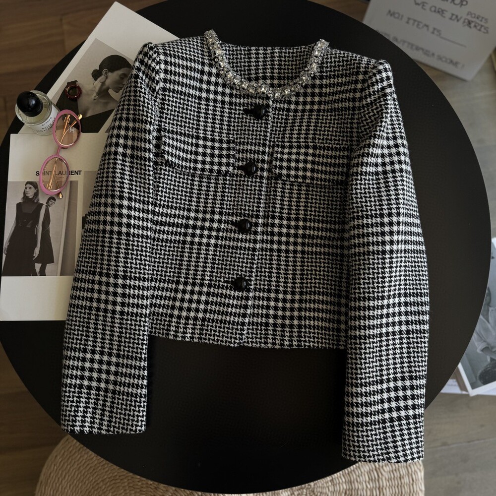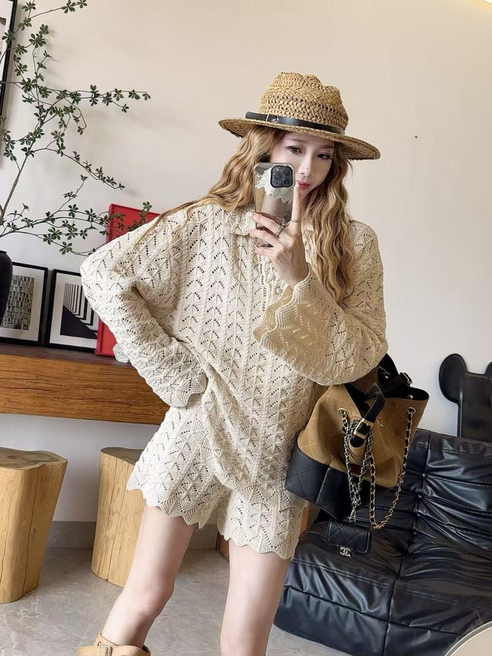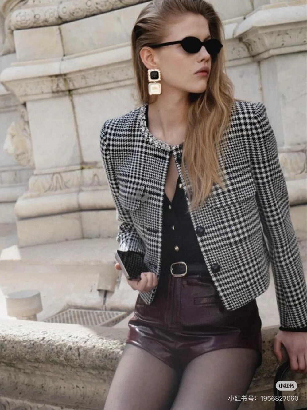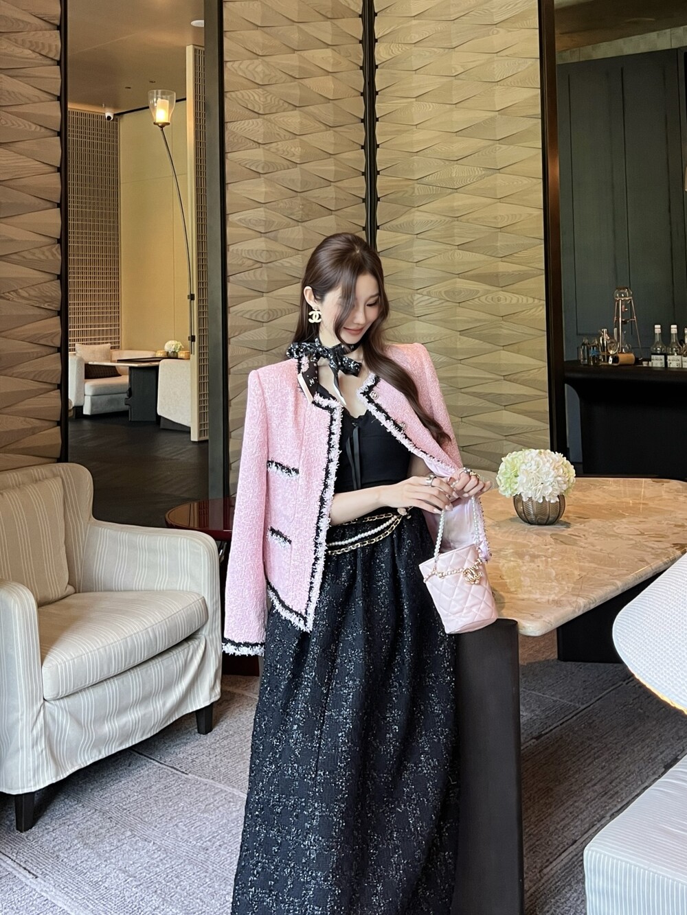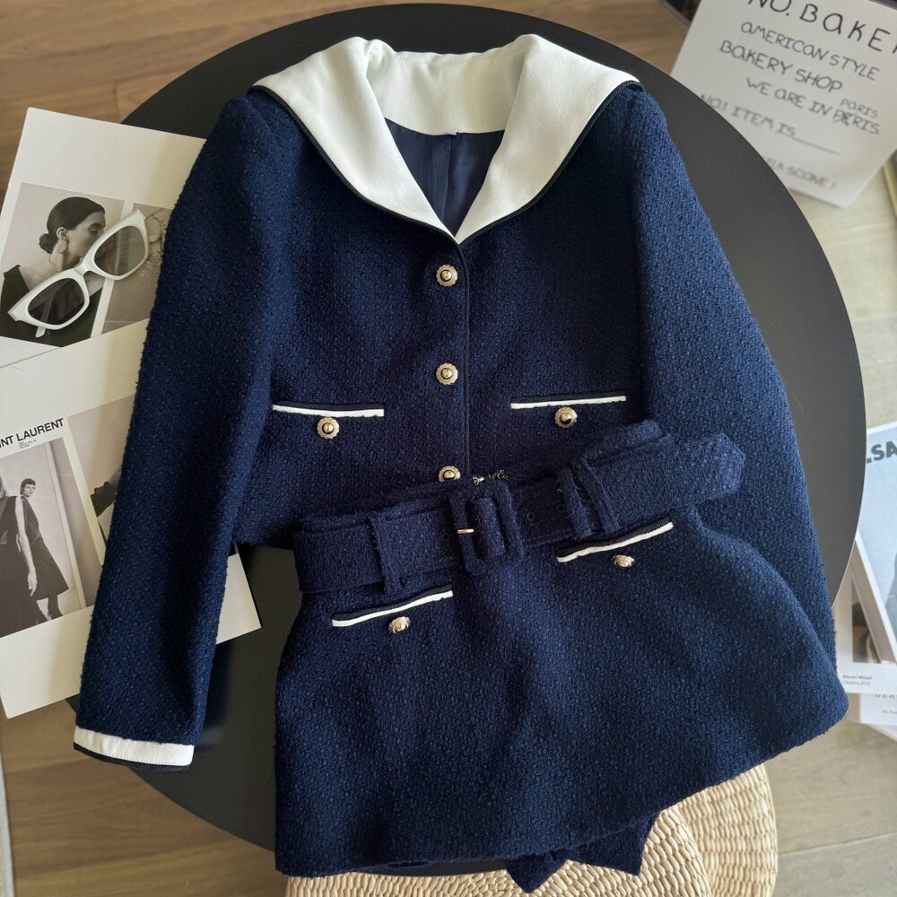 D. CC 마린 퀼팅 배색 크롭 가디건