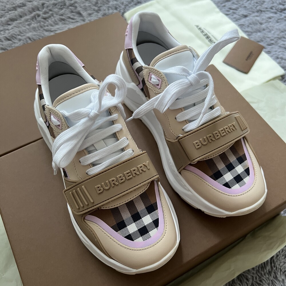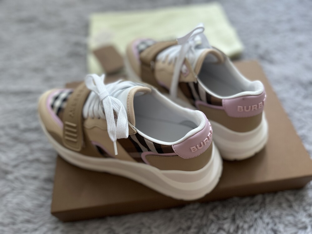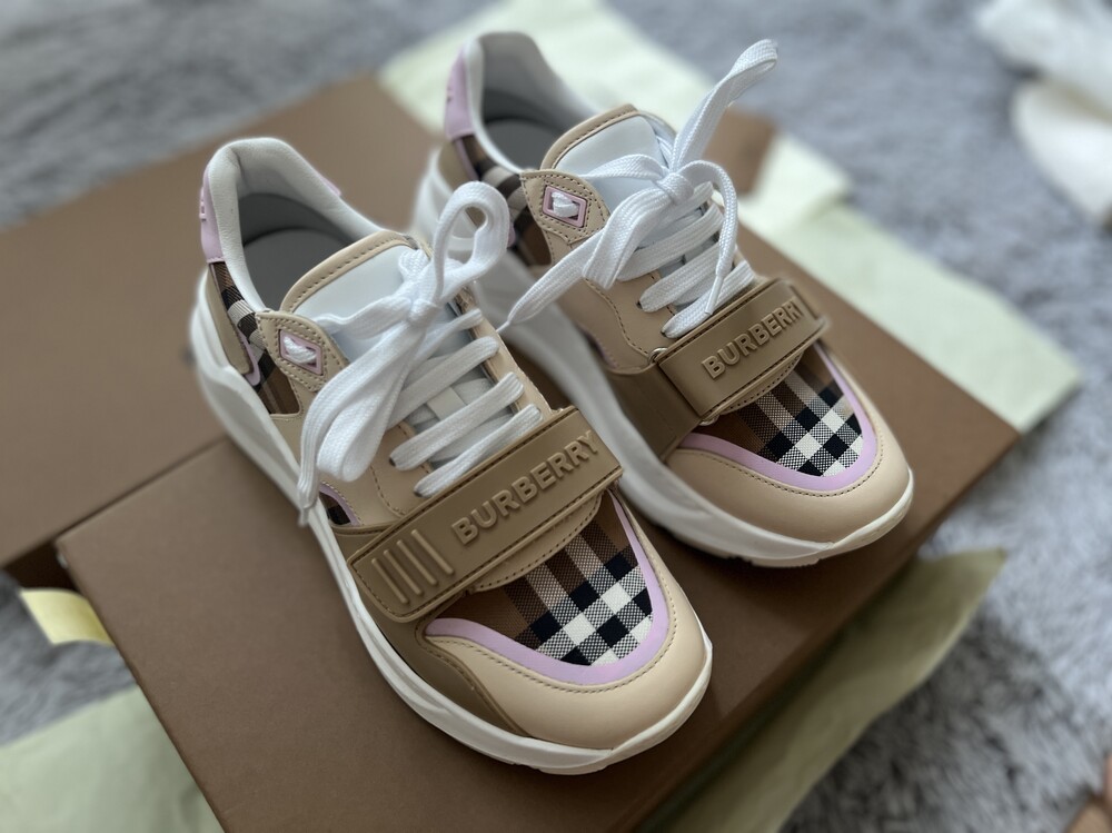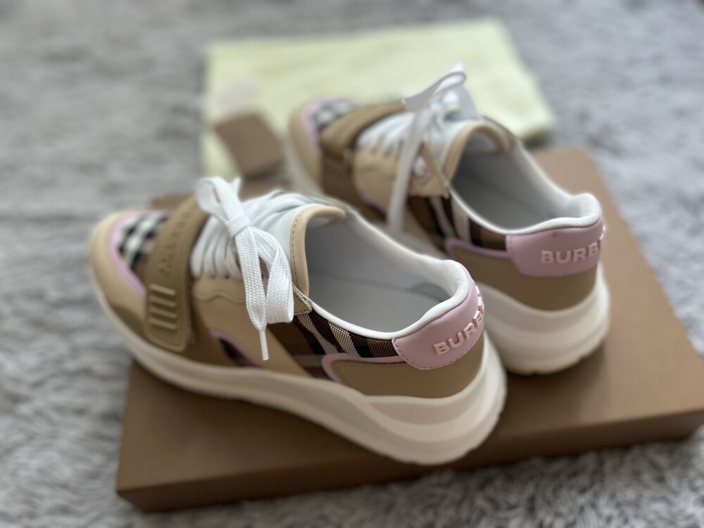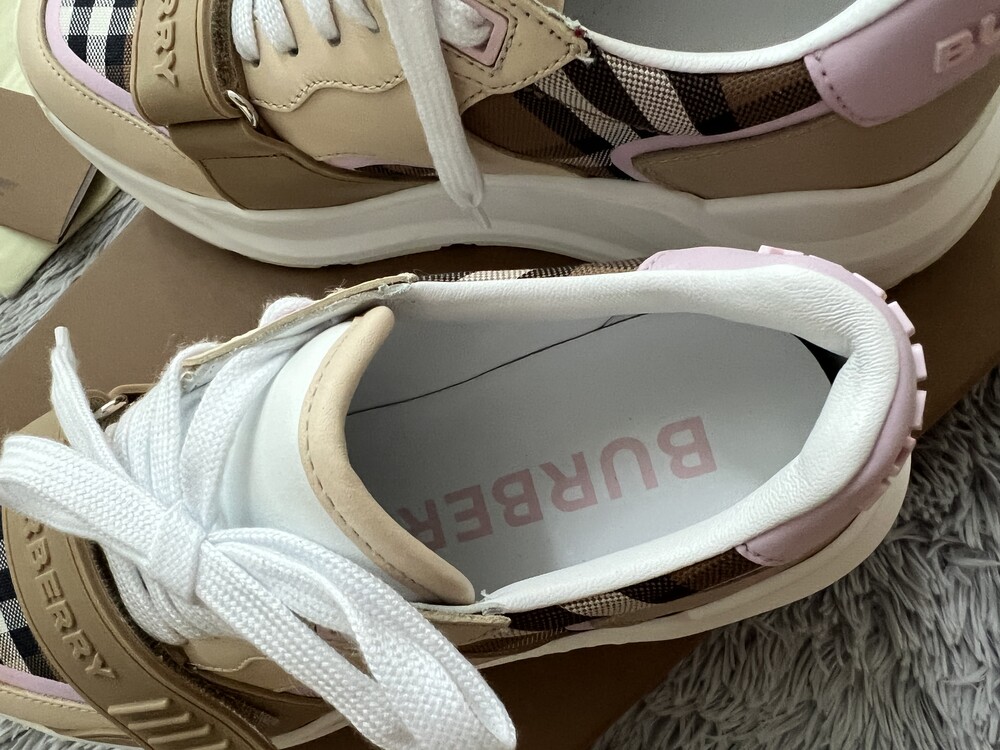 버버리 봄신상 파스텔 코튼 체크 스니커즈 실사 🌈 핑크