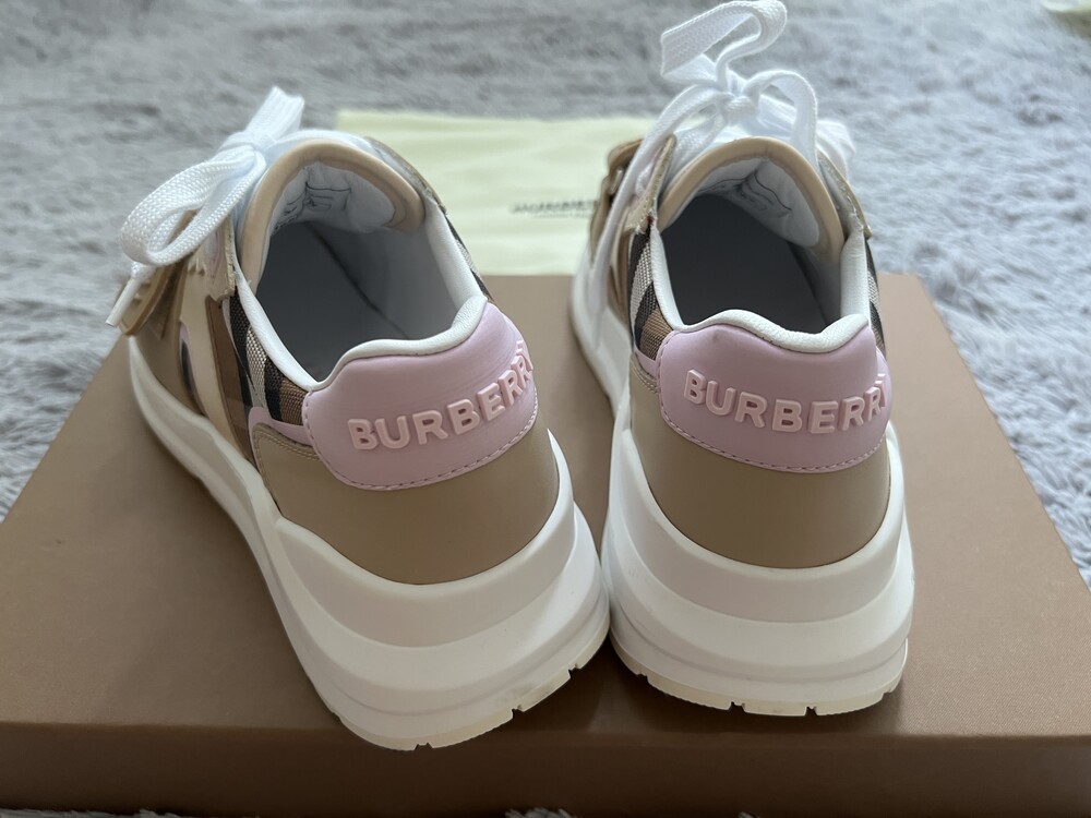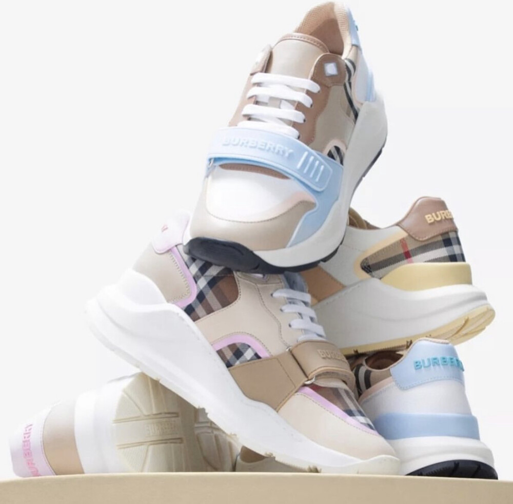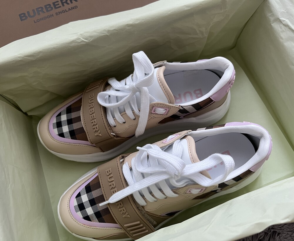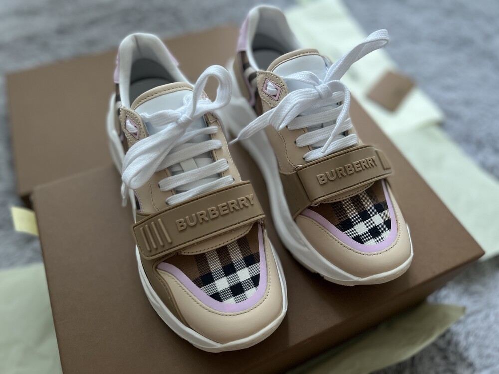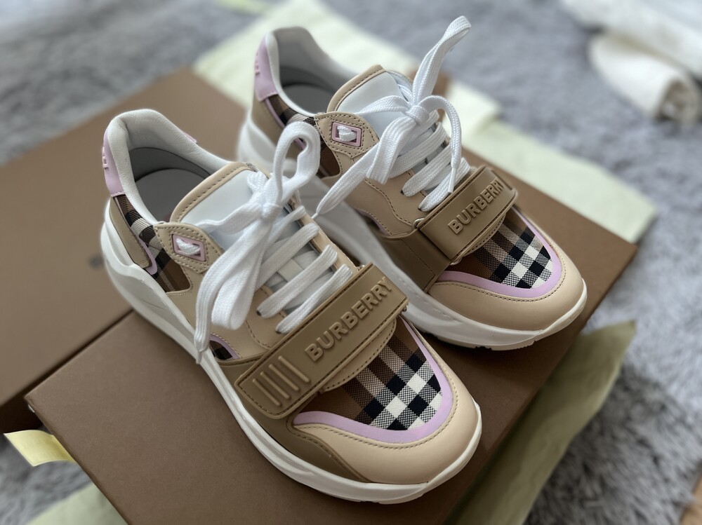 버버리 봄신상 파스텔 코튼 체크 스니커즈 실사 🌈 핑크