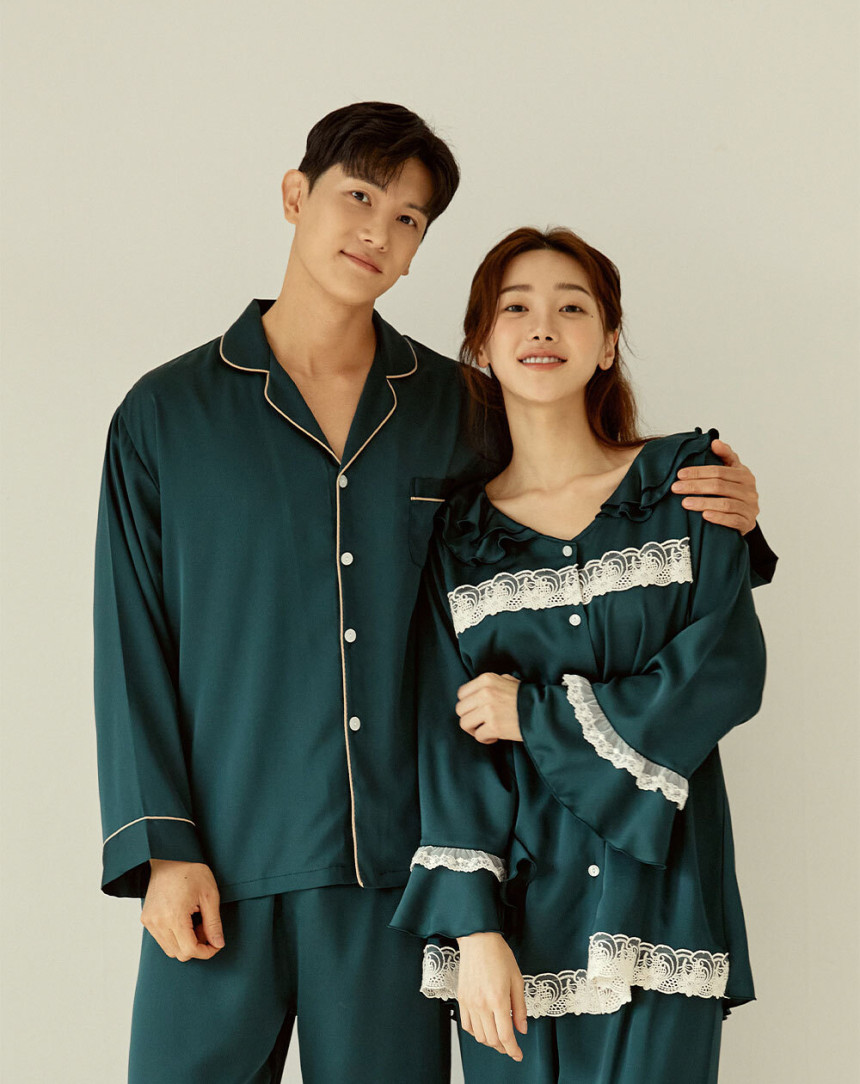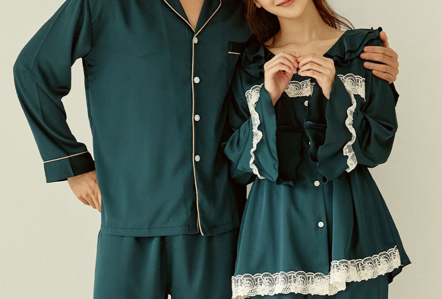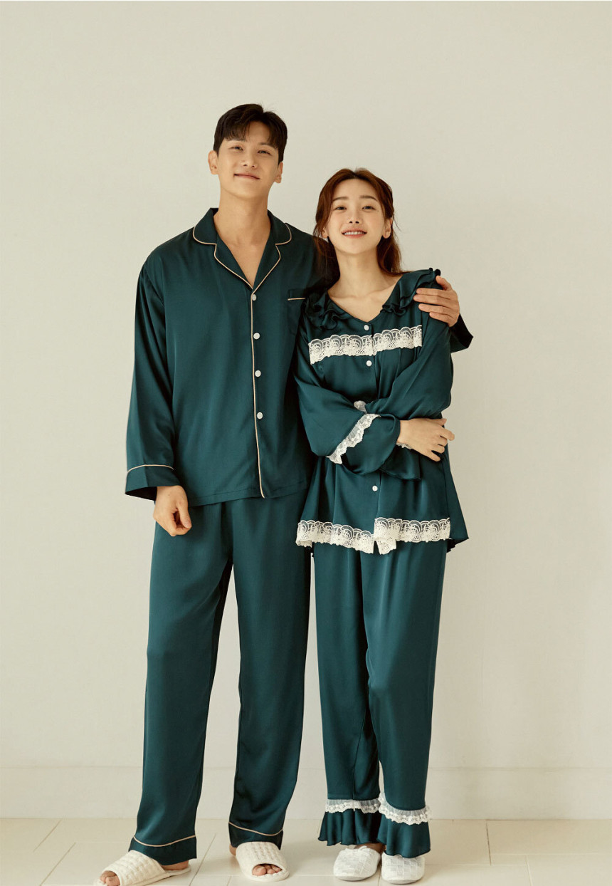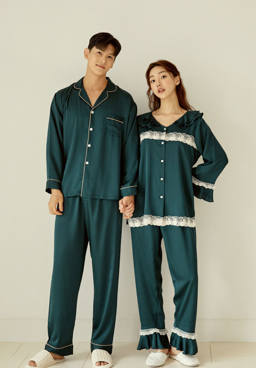 여성 남성 커플 엘리그린 투피스 수면 잠옷