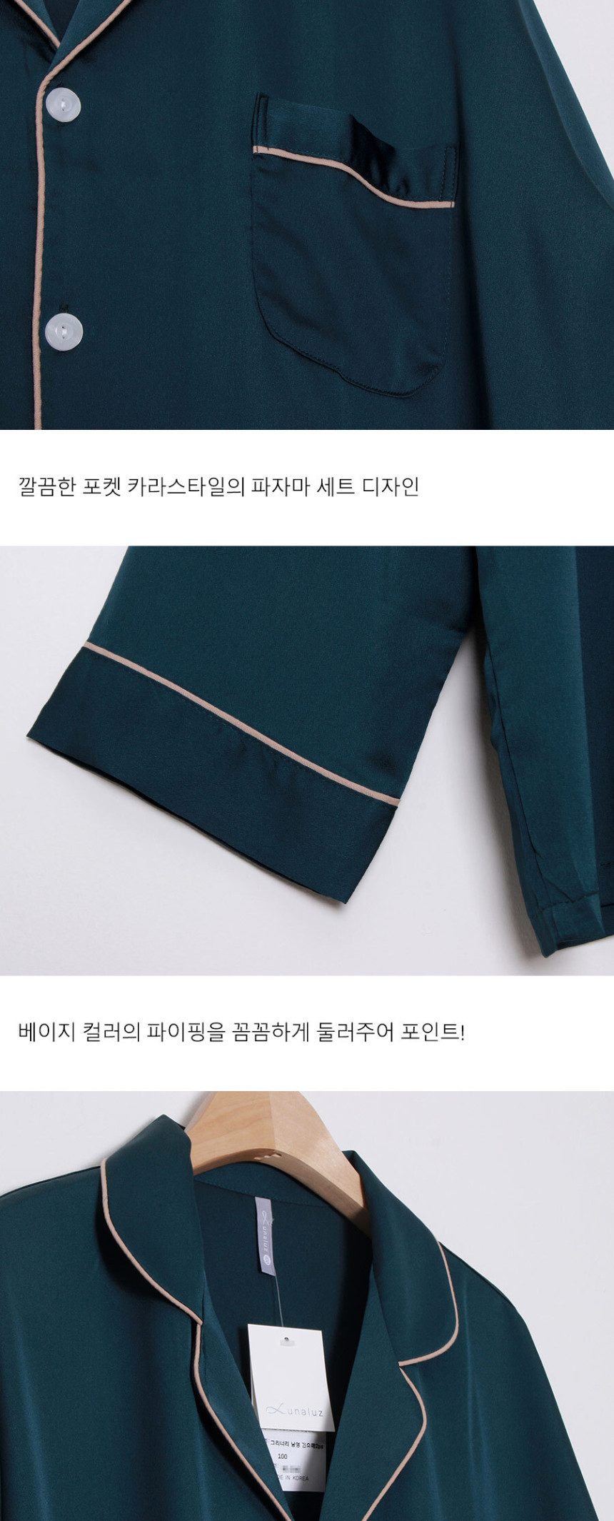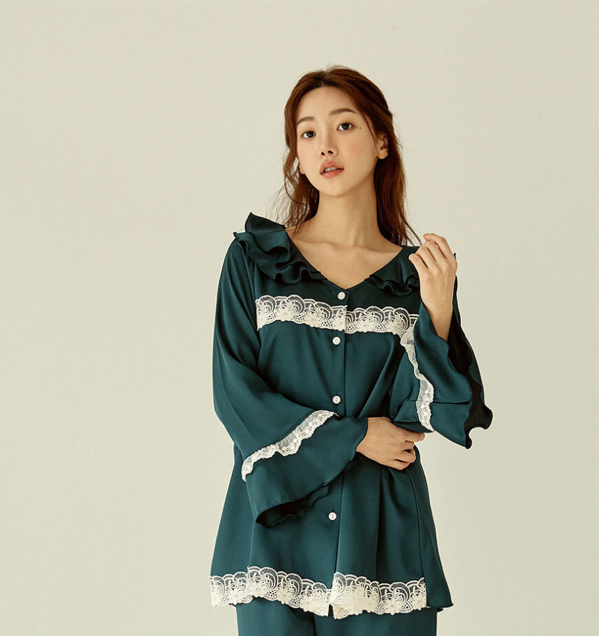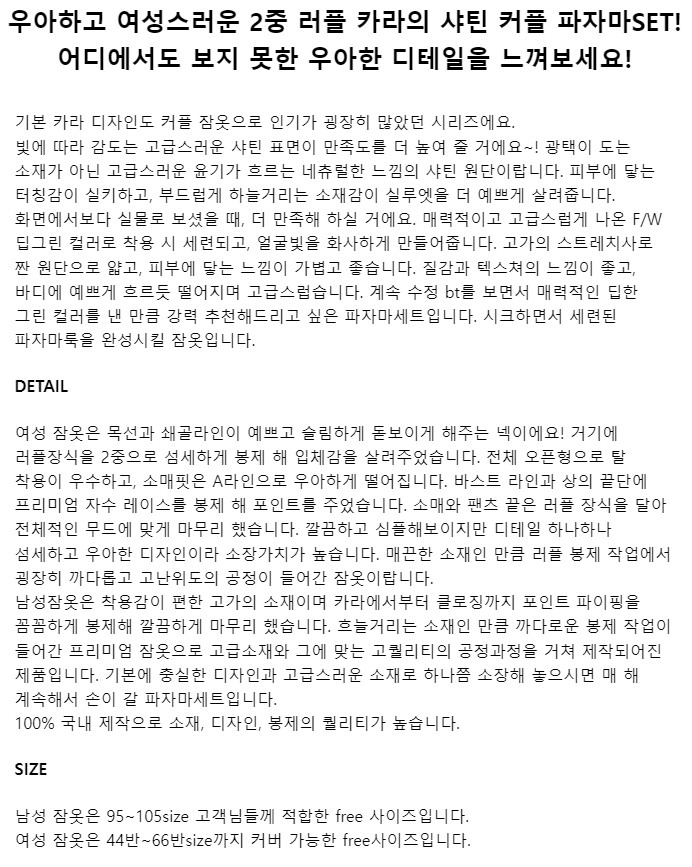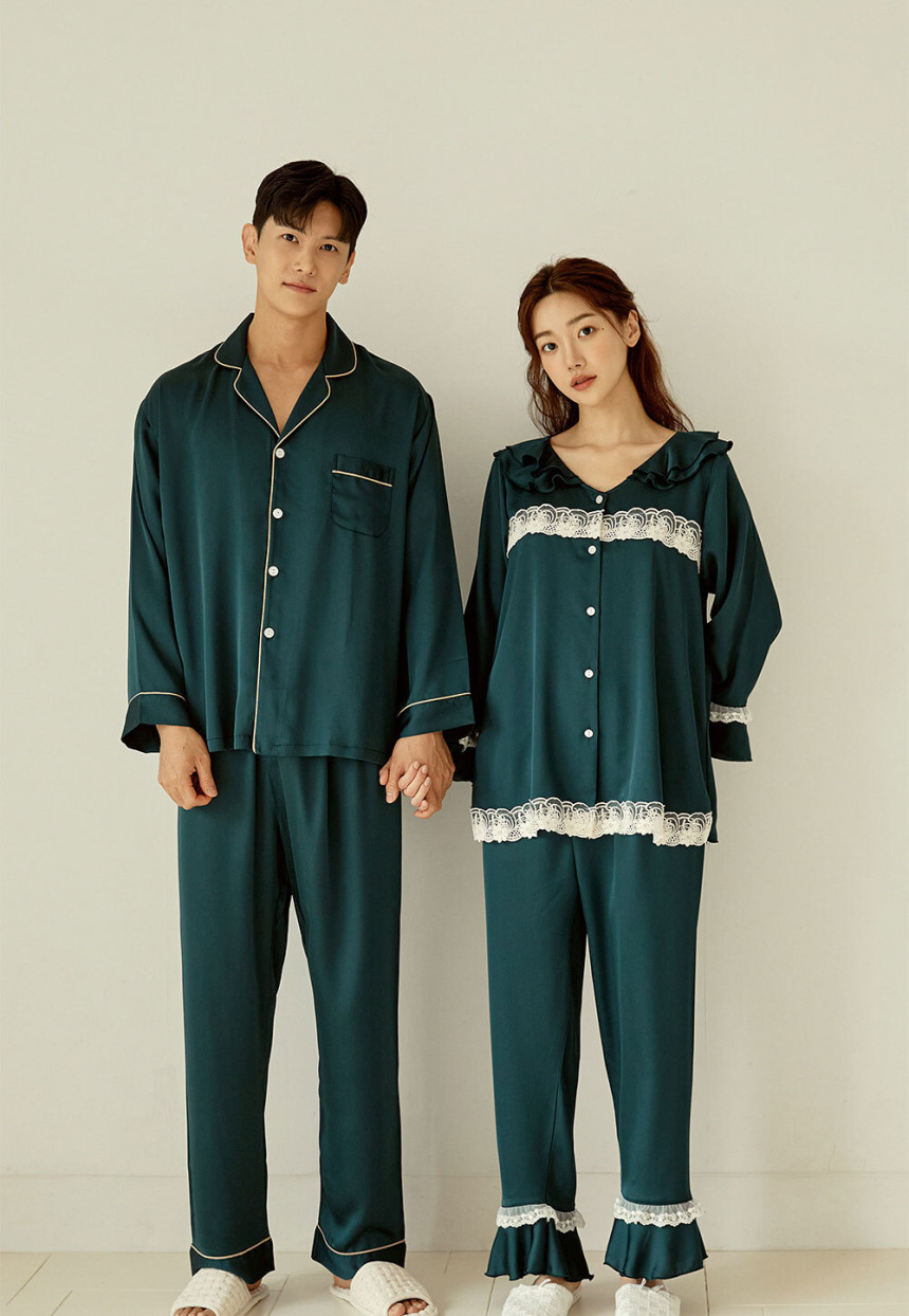 여성 남성 커플 엘리그린 투피스 수면 잠옷