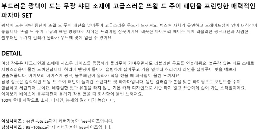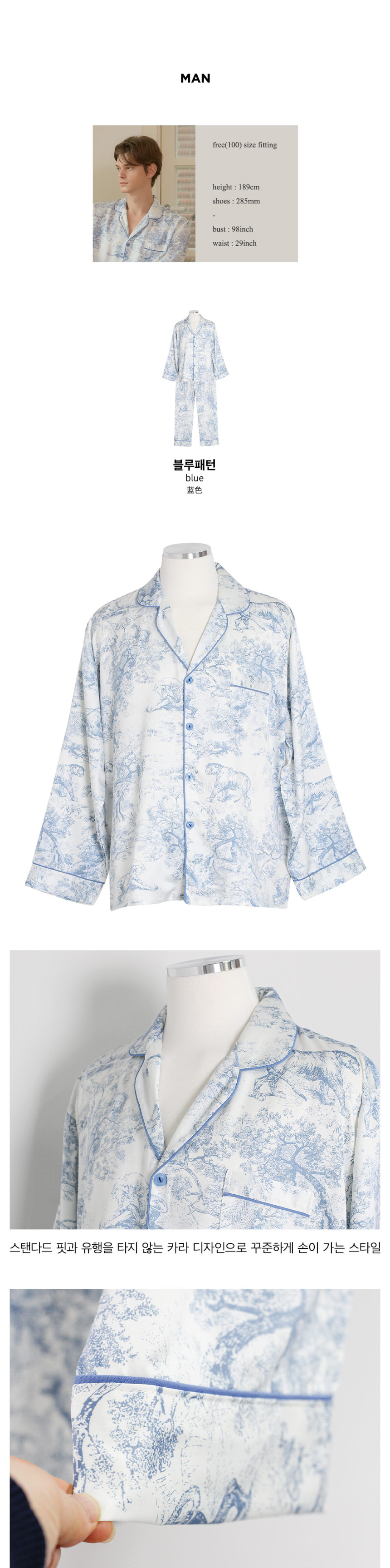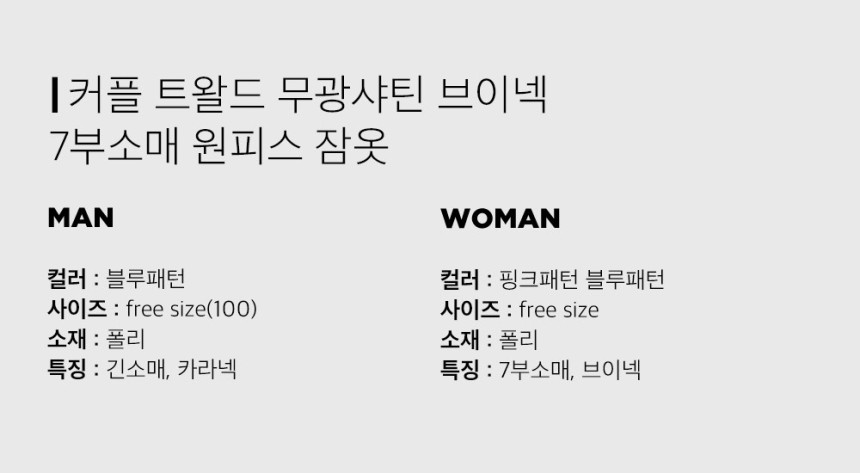 여성 남성 커플 무광샤틴 원피스 투피스 수면 잠옷