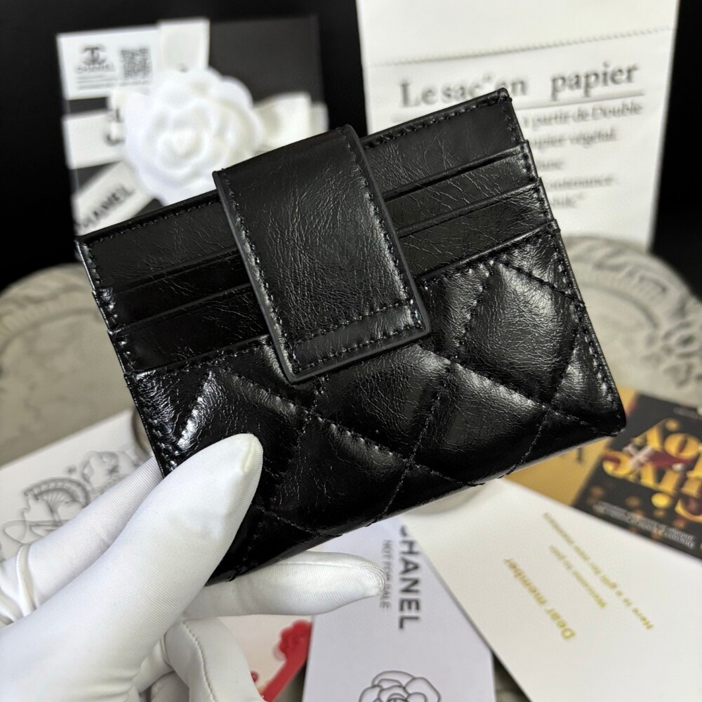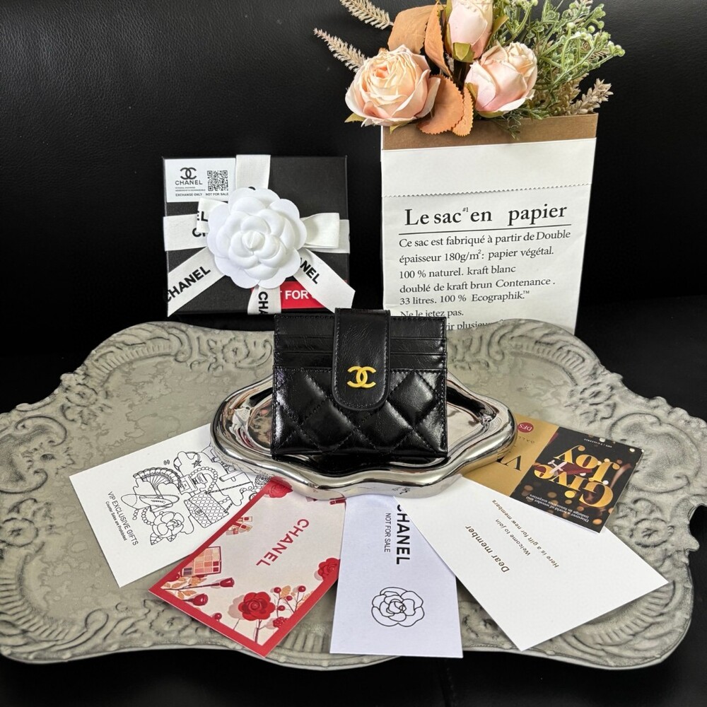 Product DescriptionThis genuine Chanel card holder is a limited VIP gift item, offered exclusively with beauty or makeup purchases.Crafted in luxurious quilted leather, it features the signature gold CC logo and includes 6 card slots plus a central pocket for practical daily use.