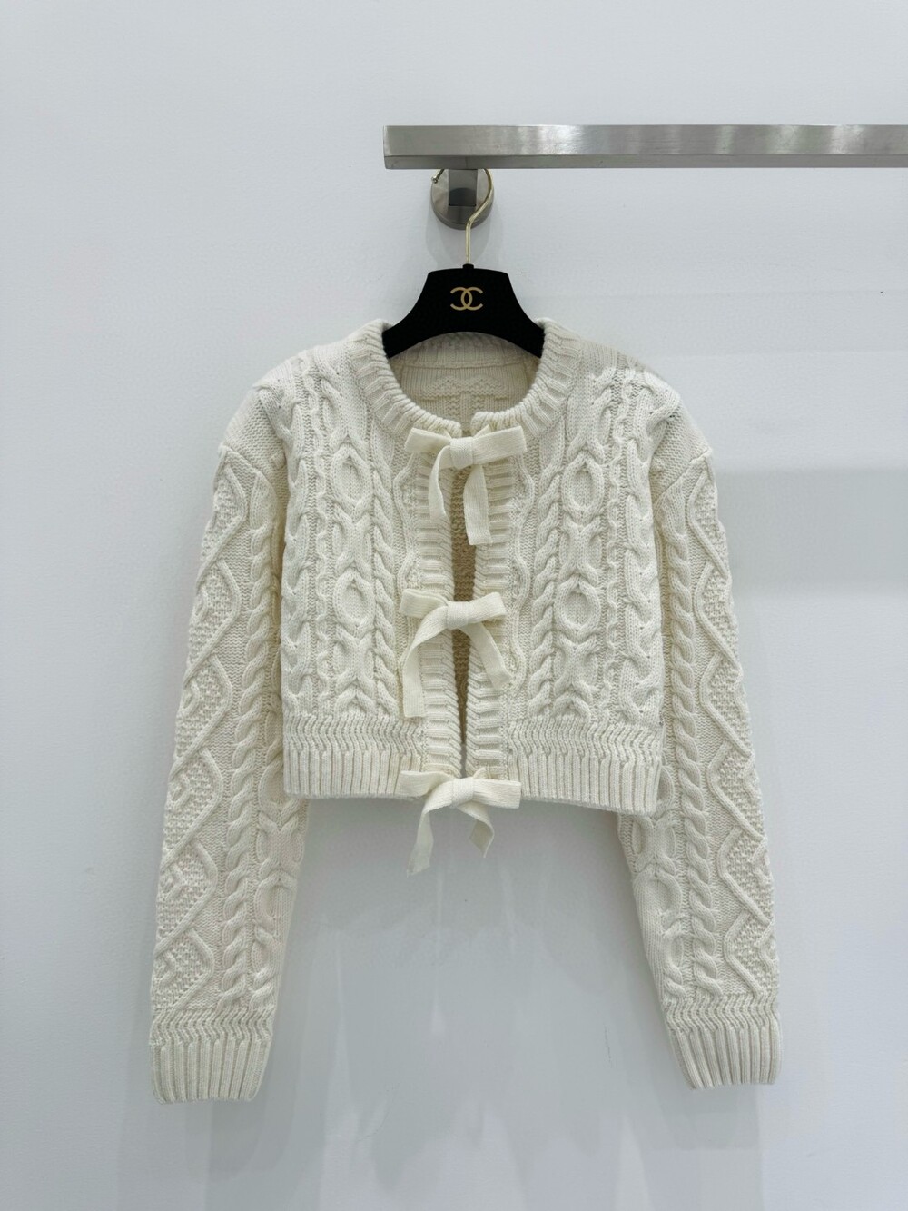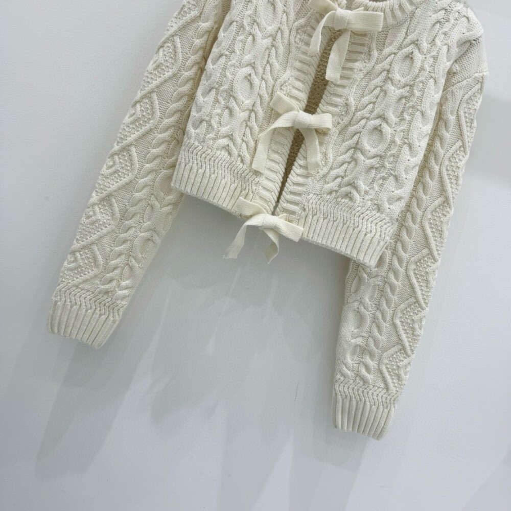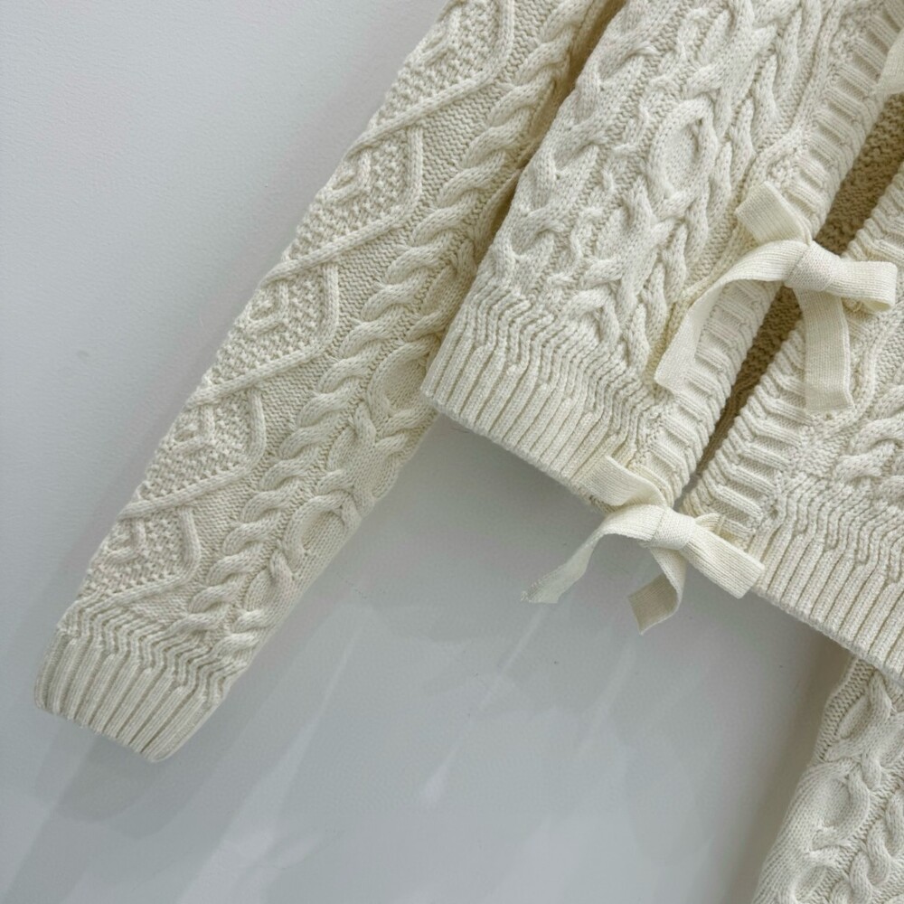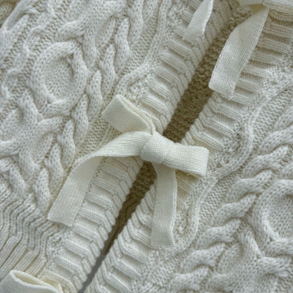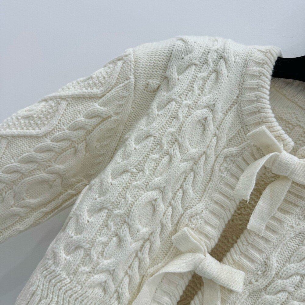 리본 디테일이 돋보이는 케이블 니트 가디건입니다 🤍