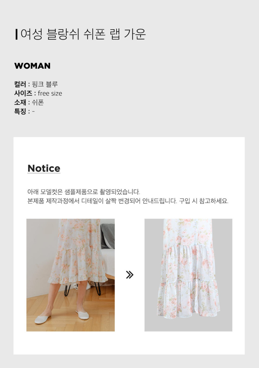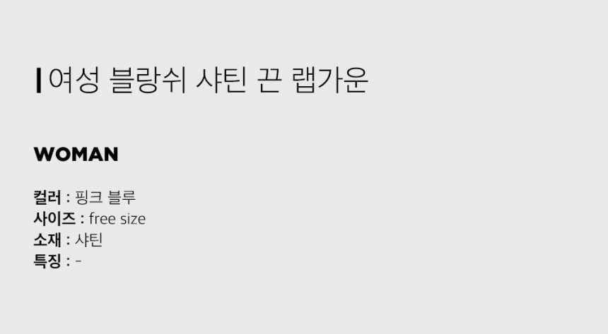 여성 블랑쉬 원피스 랩 가운 수면 잠옷
