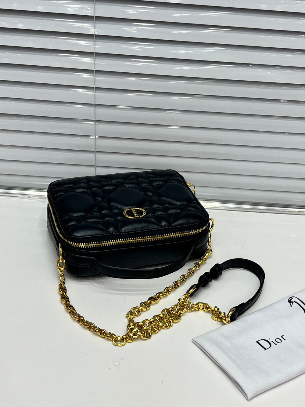Caro Chain Box Bag / The classic caro series is made of cowhide to create a soft texture, durable and beautiful [rose,black, oblique] Detachable chain and leather shoulder strap, armpit back, portable, and crossbody, the capacity is also very , you can put your phone / 19.5*15*6