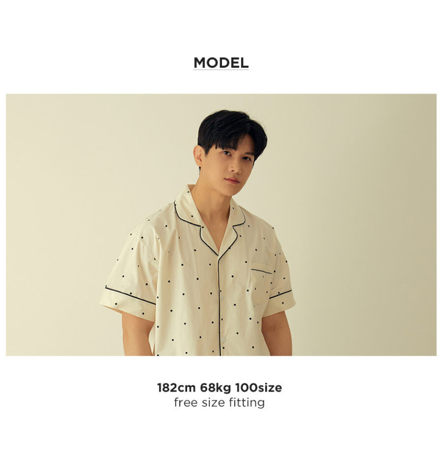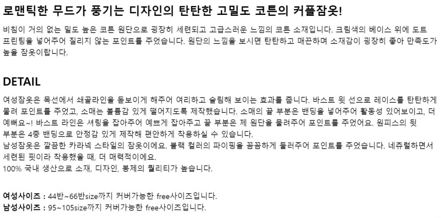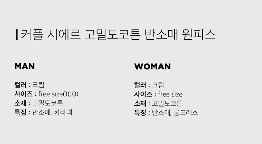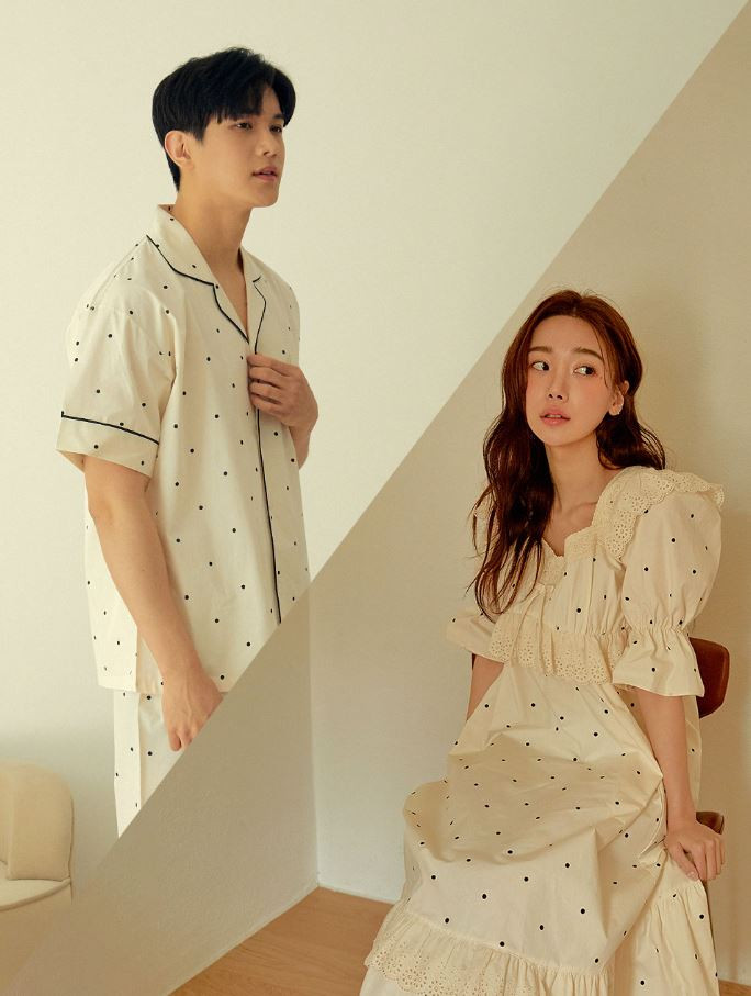 여성 남성 커플 시에르 고밀도 코튼 반소매 원피스 투피스