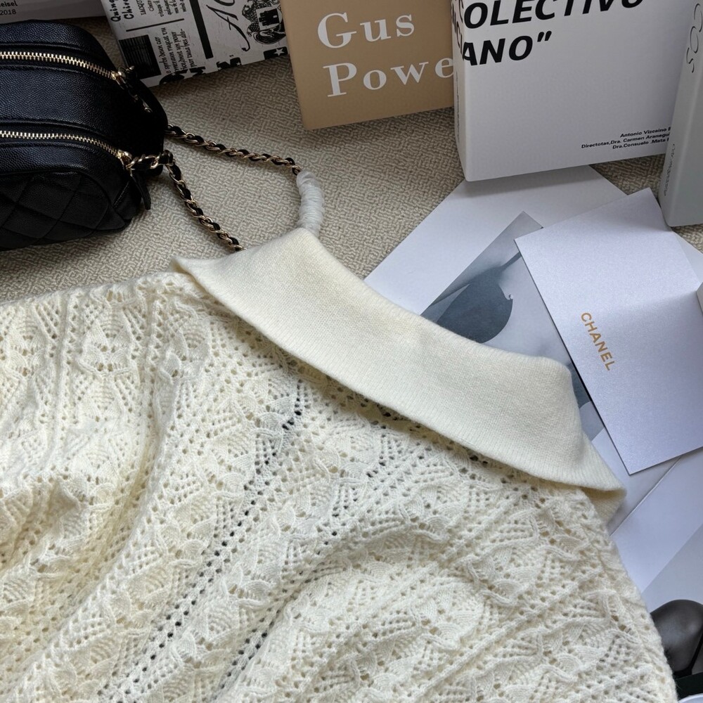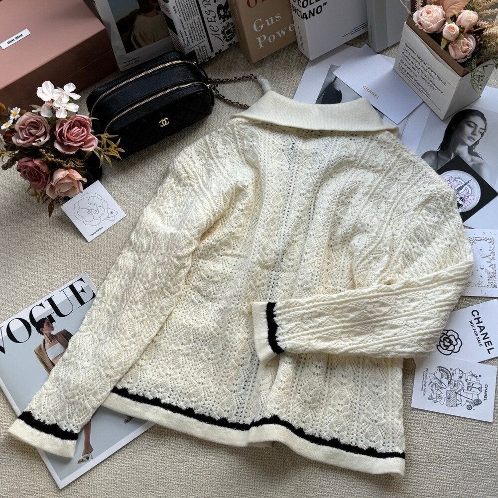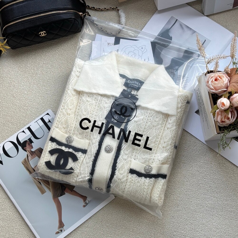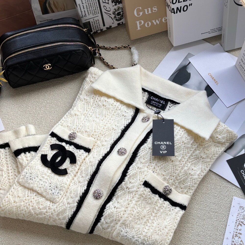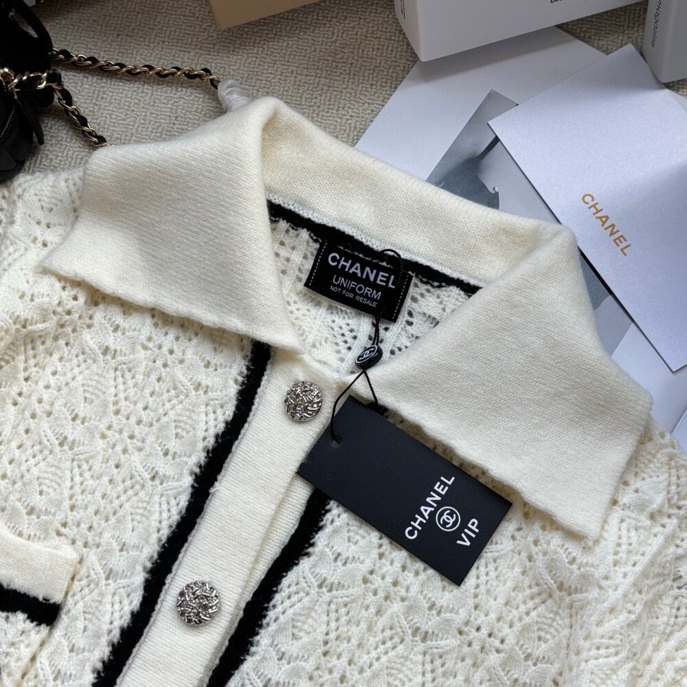 An elegant CHANEL lace knit cardigan featuring a timeless French vintage charm.