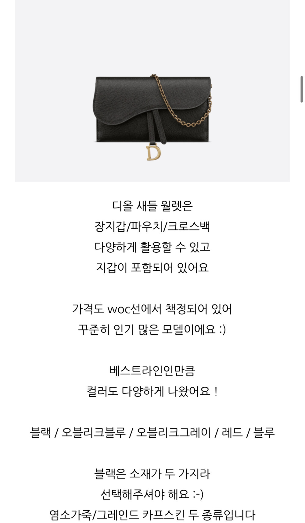 공지사항 [정매장바잉] 디올 새들 체인백 월렛 / woc S5614CCEH_M900