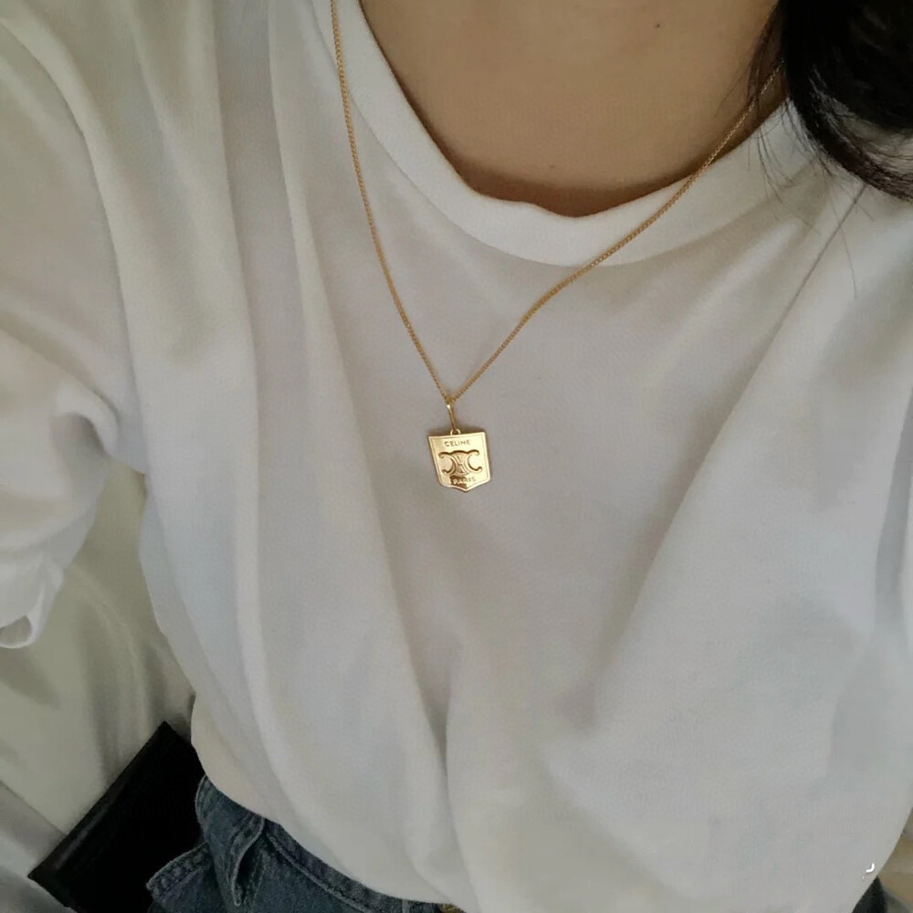 Gold logo unique to the brand Celine necklace makes you more radiant