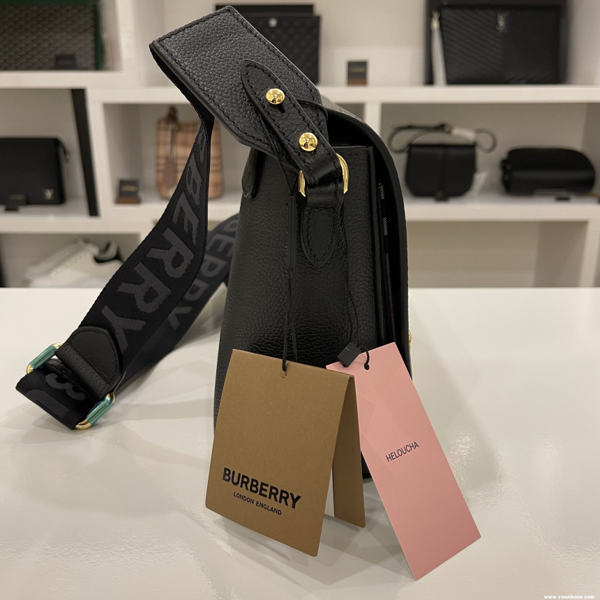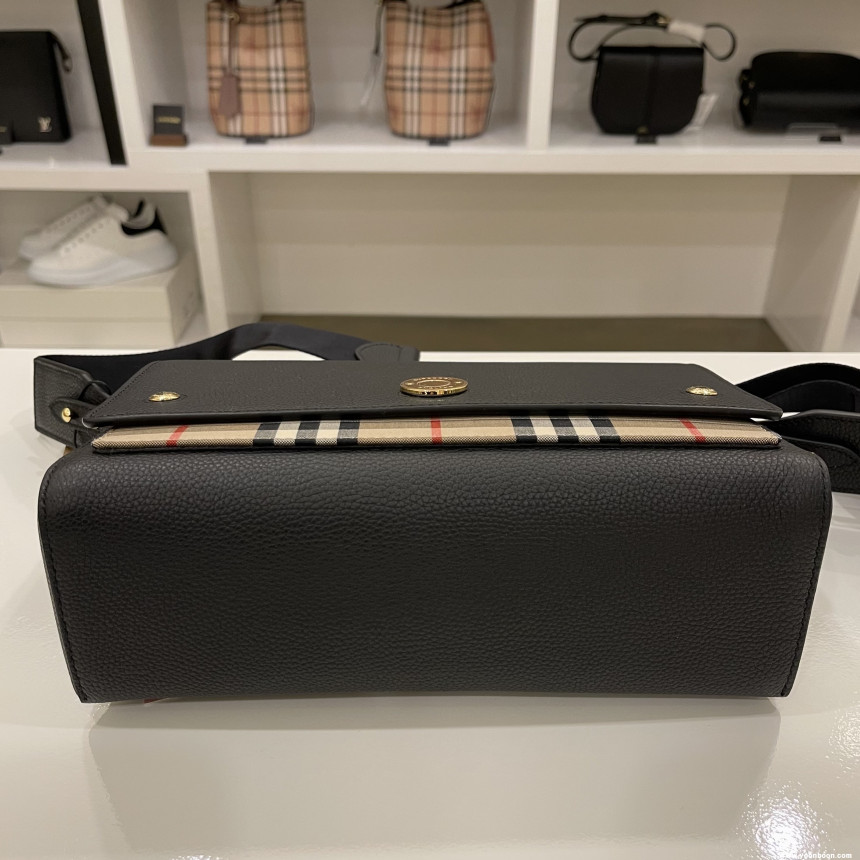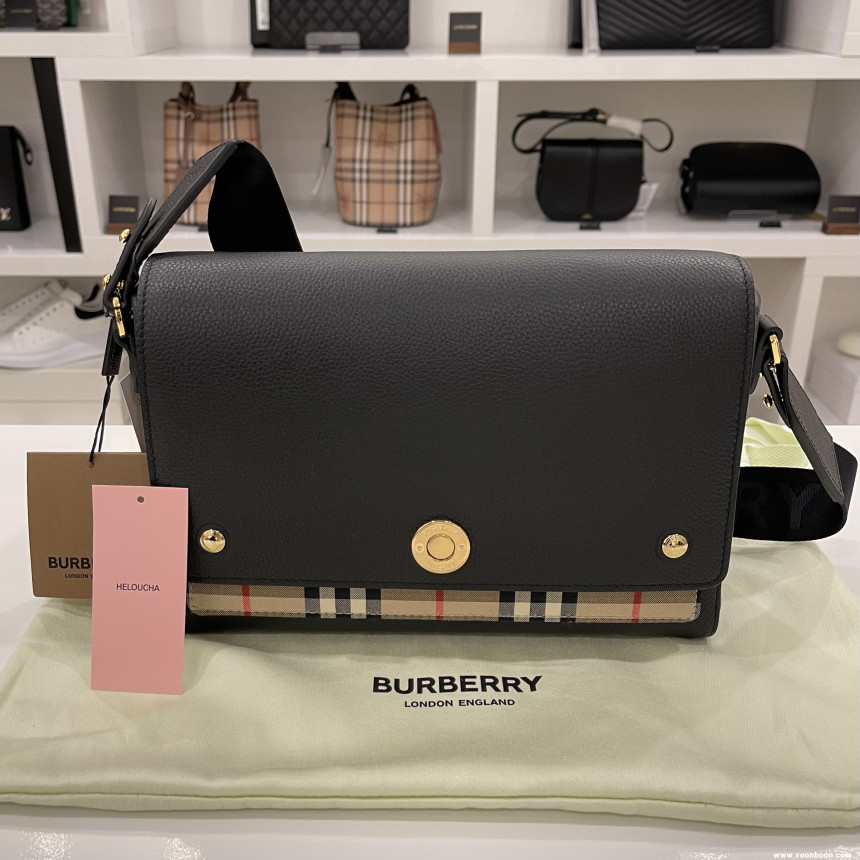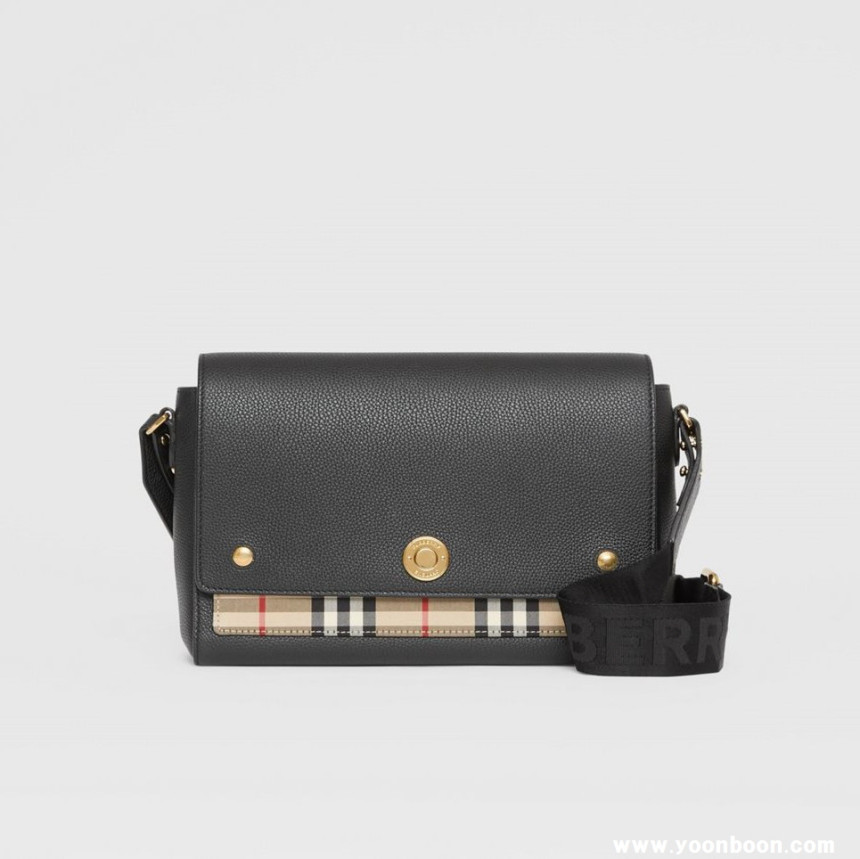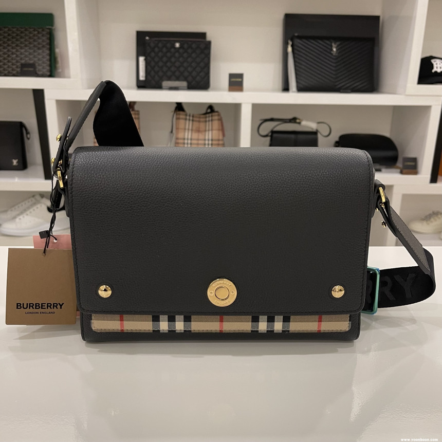 버버리 Leather and Vintage Check Note Crossbody Bag [Black]80211101