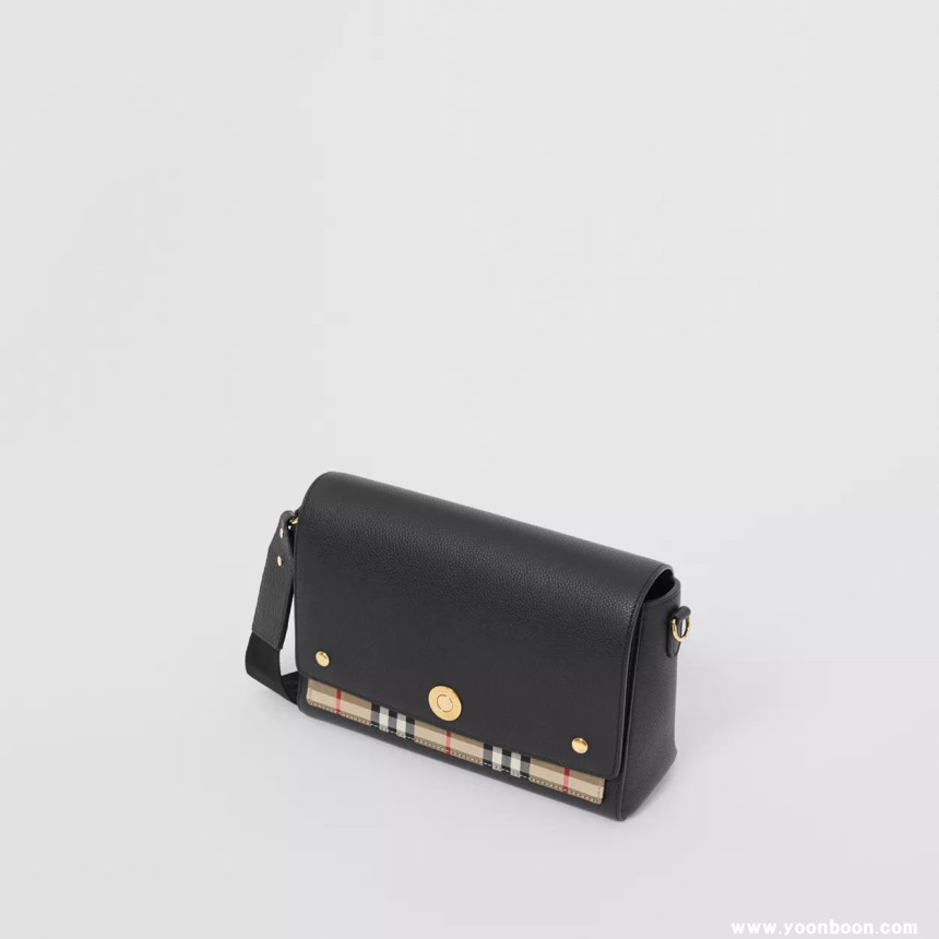 버버리 Leather and Vintage Check Note Crossbody Bag [Black] 80211101
