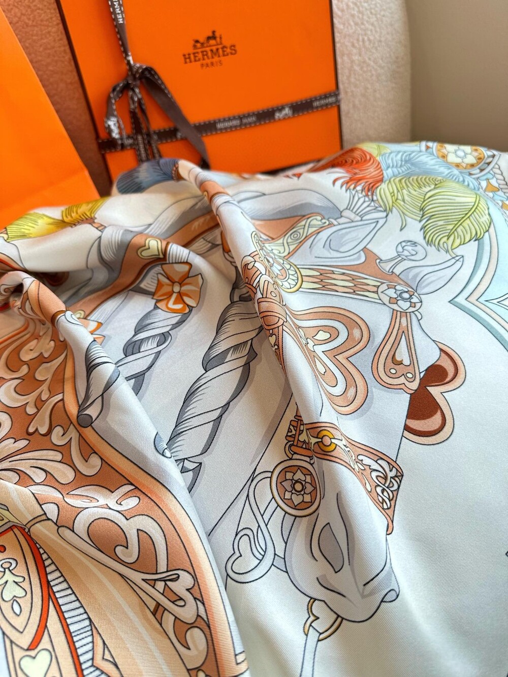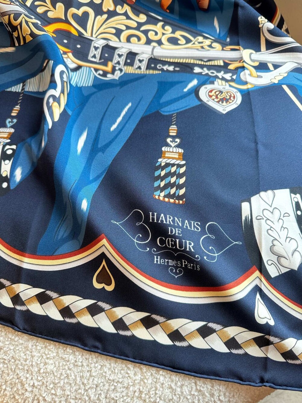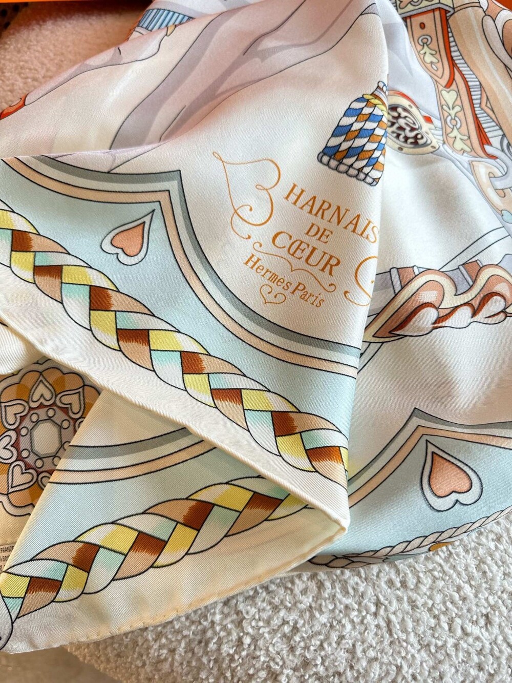 This design by Japanese artist Daiske Nomura adds a touch of romantic equestrian charm to a porcelain plate originally designed in 1804 by Fontaine & Percier, two celebrated French architects and decorators. This original plate, now part of Émile Hermès’ private collection, features a charming motif that, two centuries later, has been reimagined into a pair of lovers in love – playfully portrayed as romantic riders in the design.Fabric: 100% 18mm silk twill