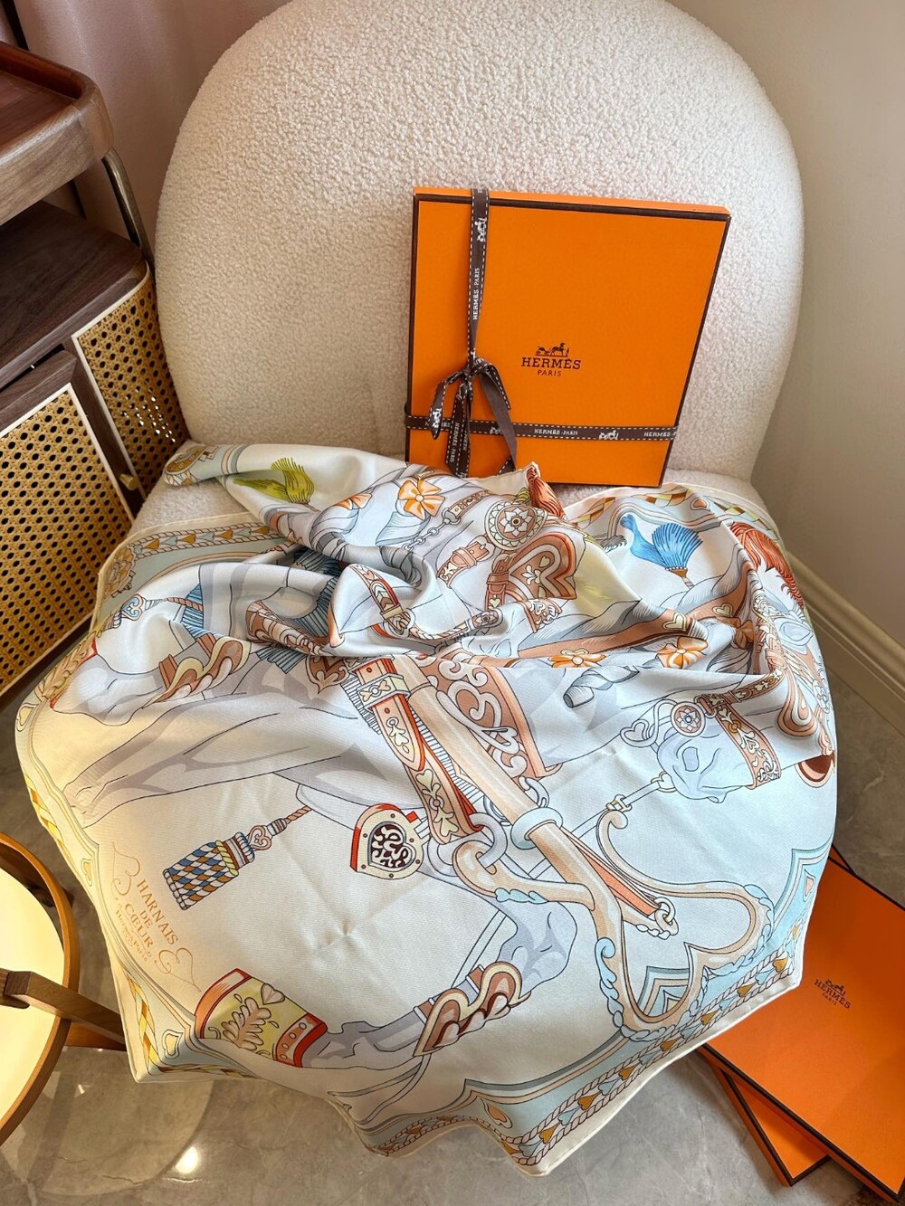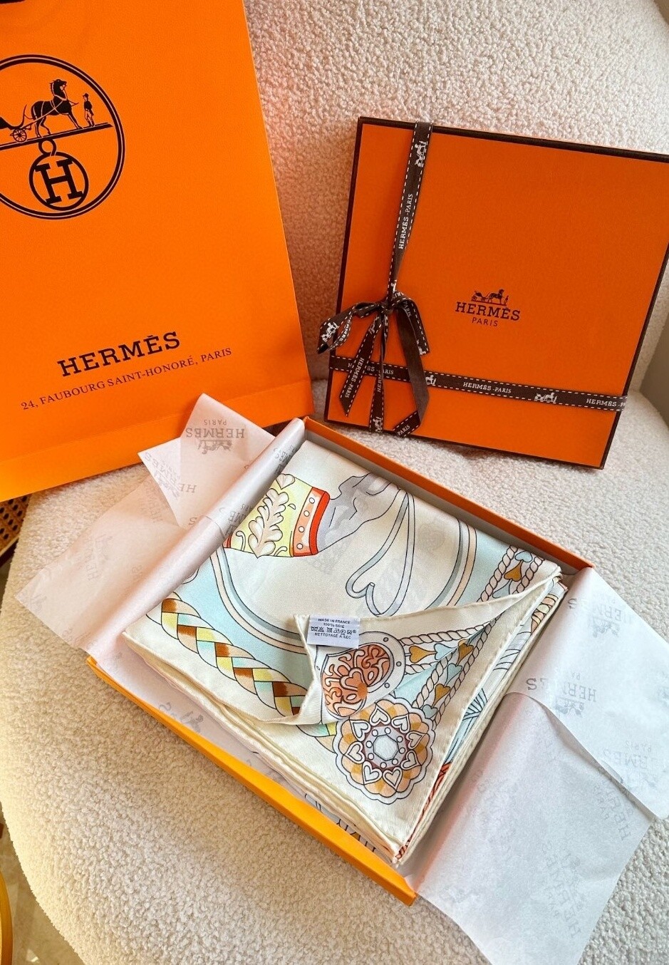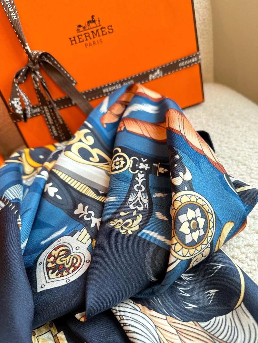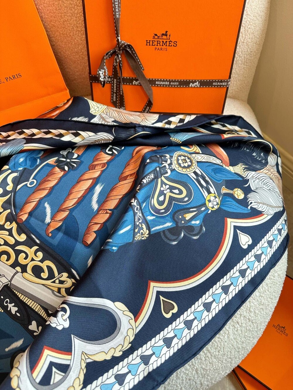 This design by Japanese artist Daiske Nomura adds a touch of romantic equestrian charm to a porcelain plate originally designed in 1804 by Fontaine & Percier, two celebrated French architects and decorators. This original plate, now part of Émile Hermès’ private collection, features a charming motif that, two centuries later, has been reimagined into a pair of lovers in love – playfully portrayed as romantic riders in the design.Fabric: 100% 18mm silk twill