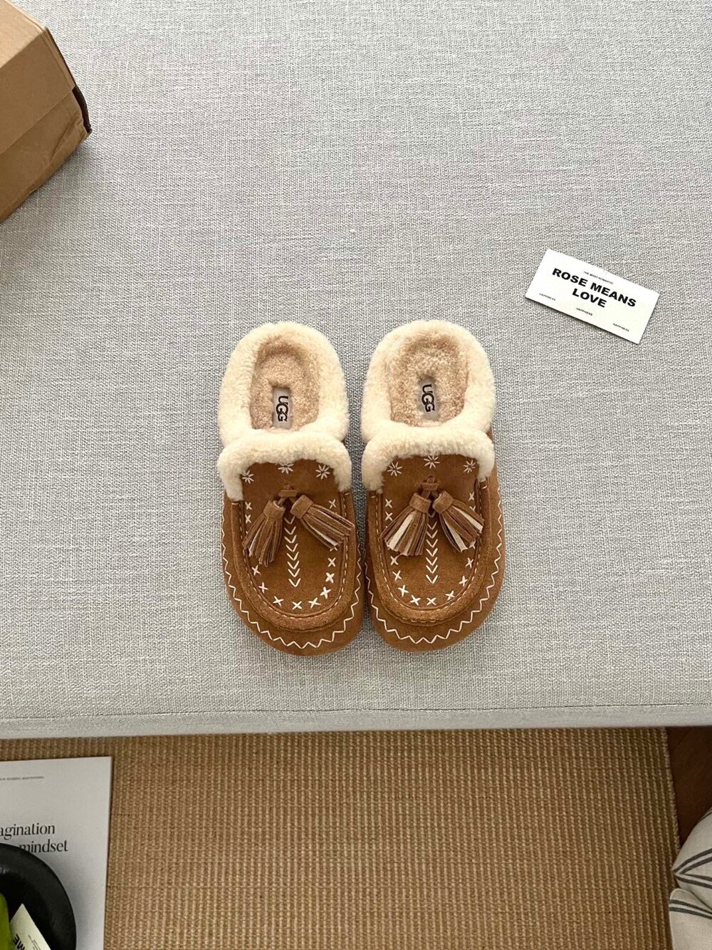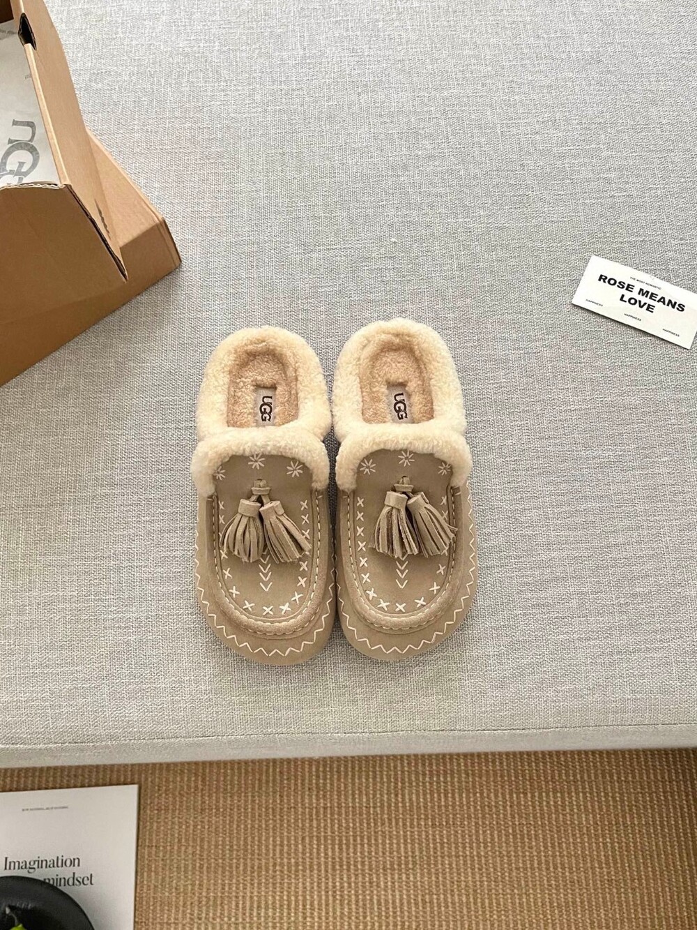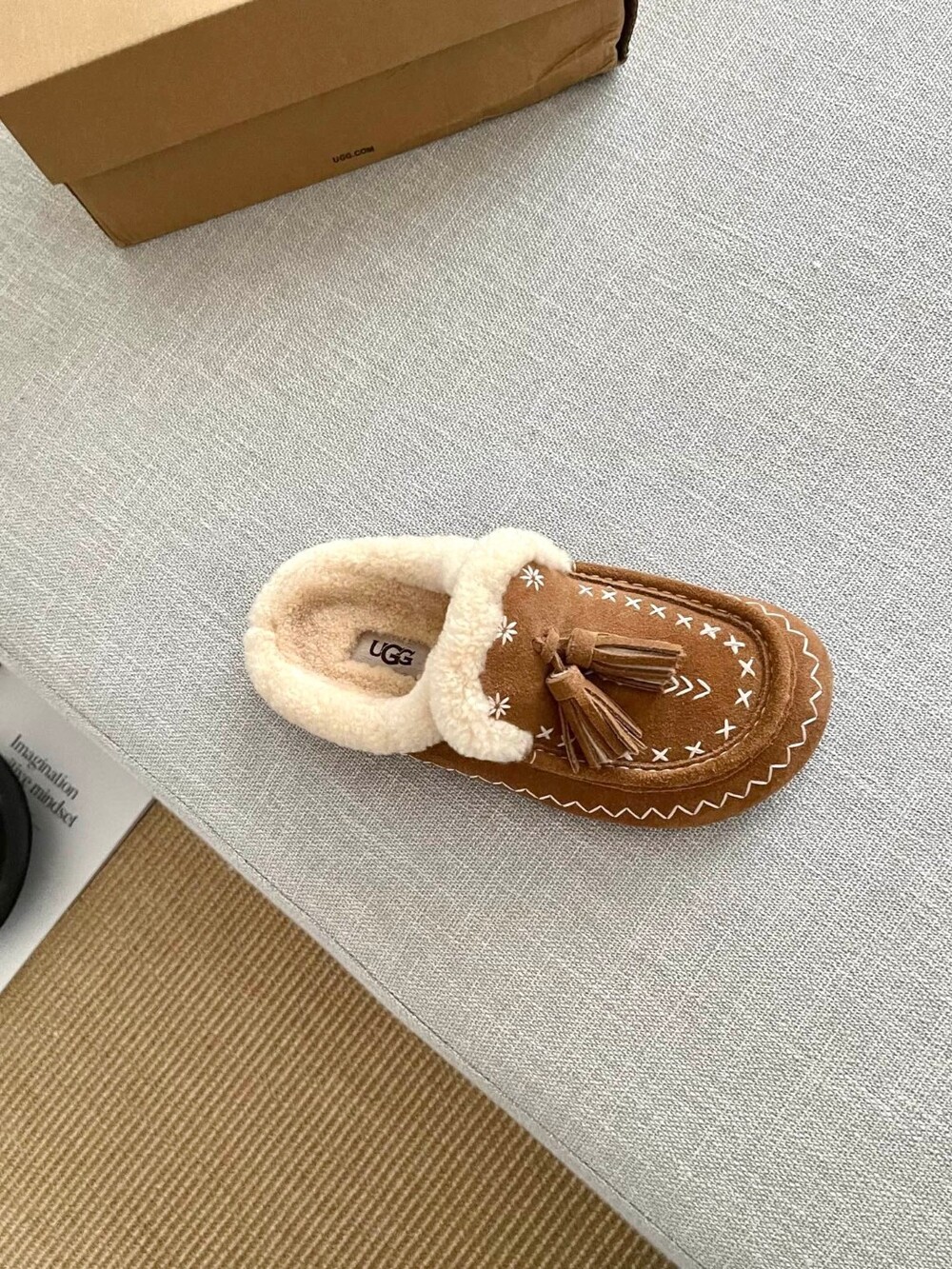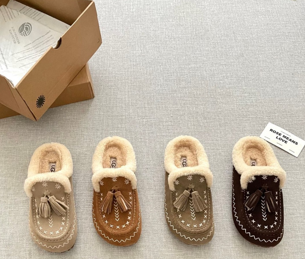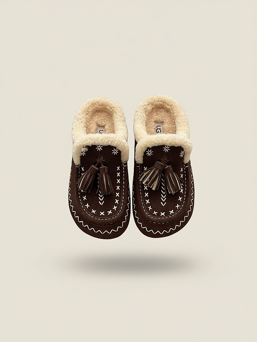 [수입] UGG Tassel Embroidered Shearling Slippers