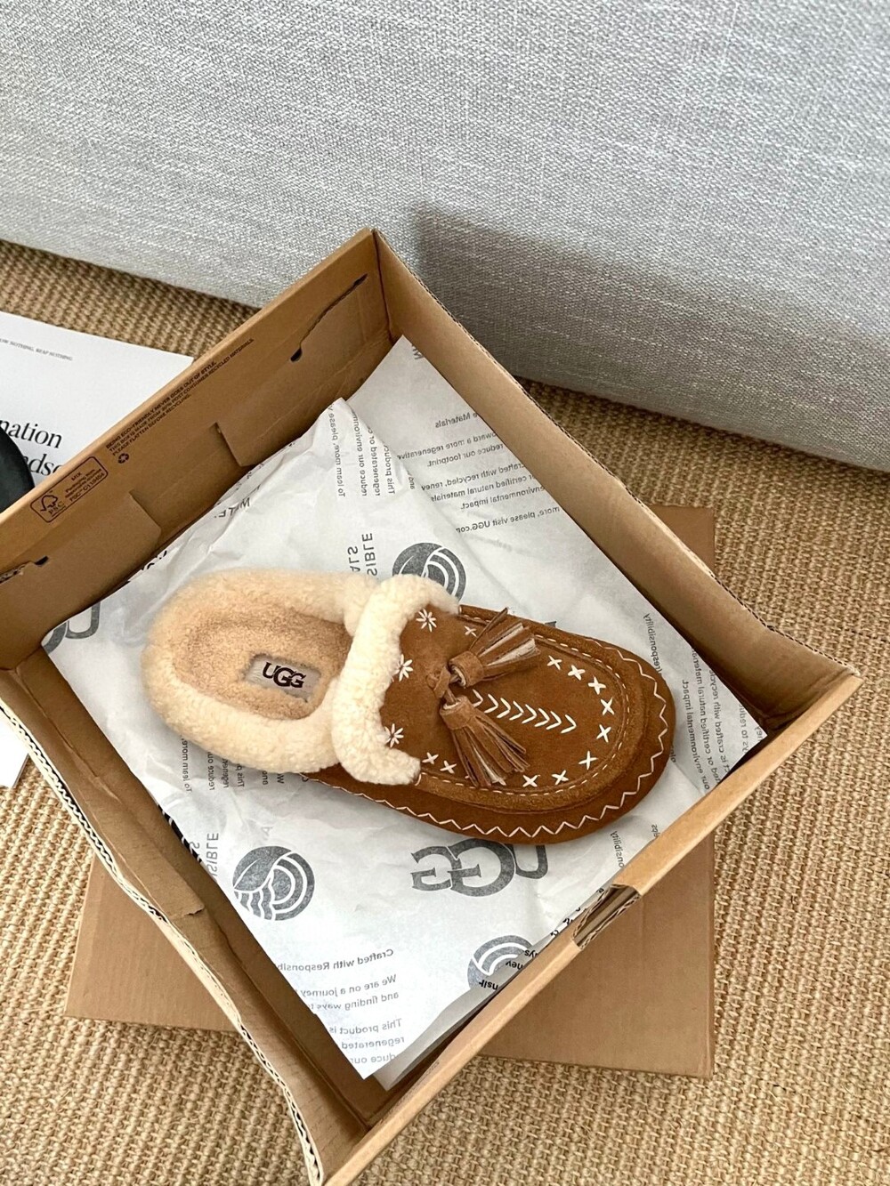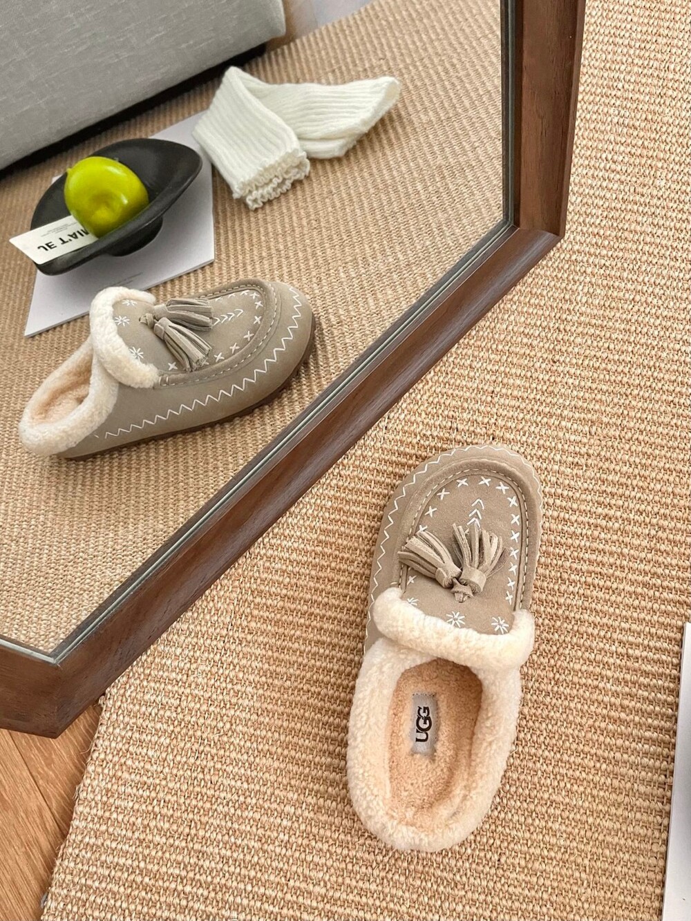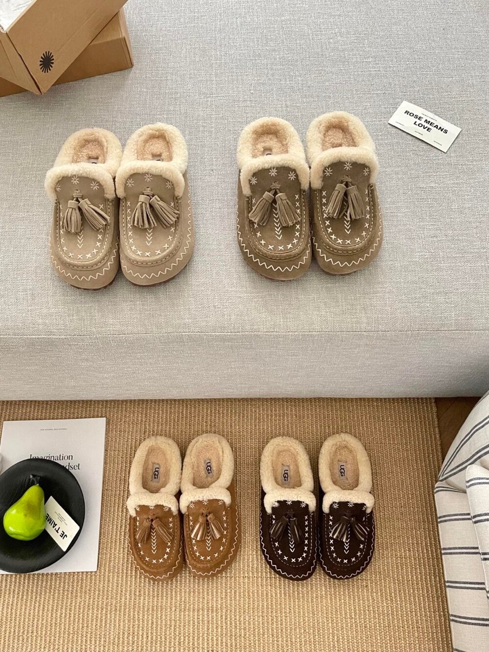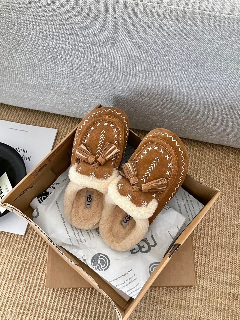 [수입] UGG Tassel Embroidered Shearling Slippers