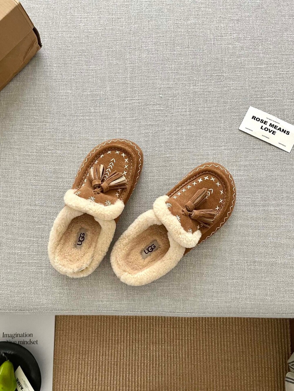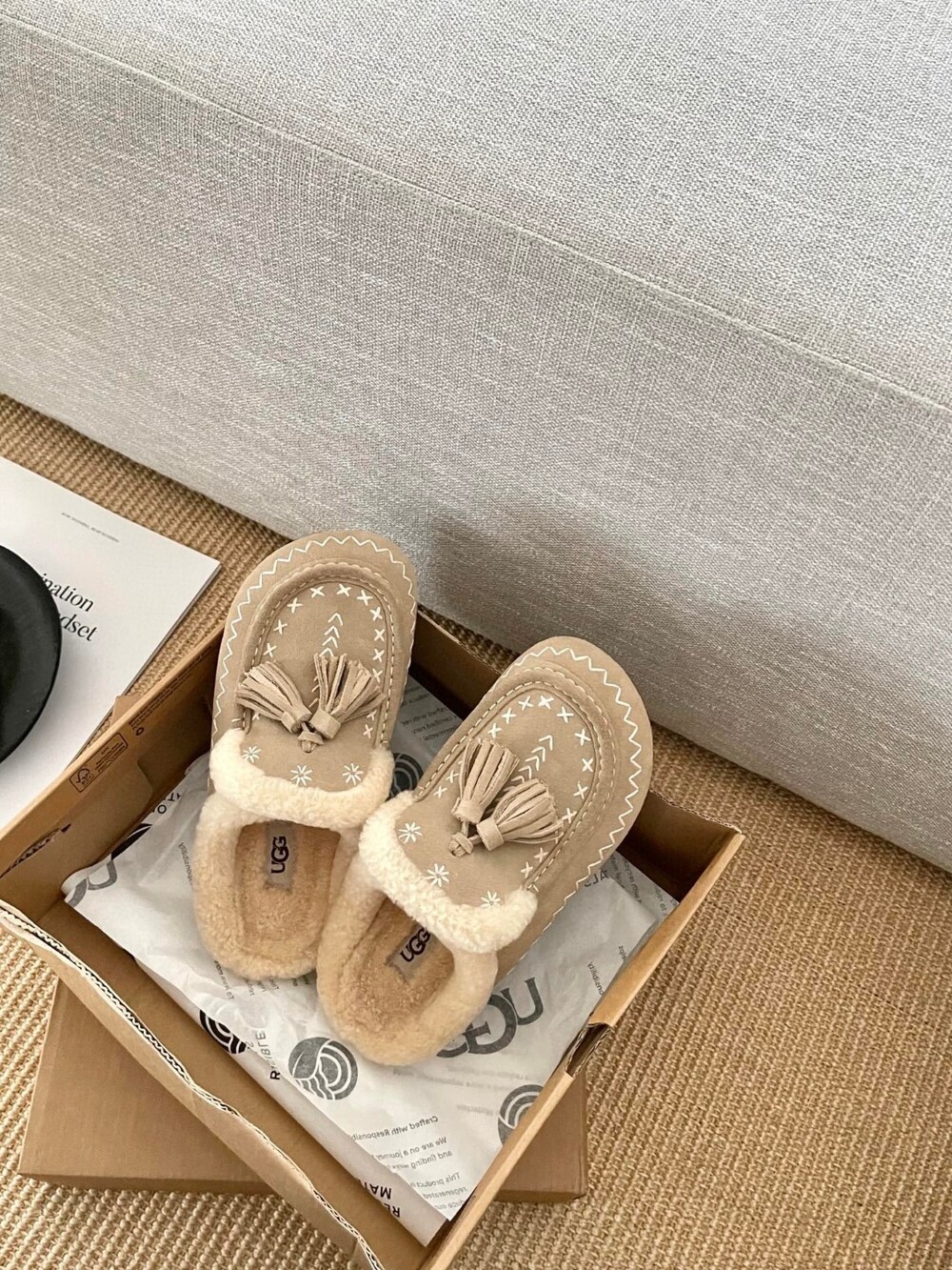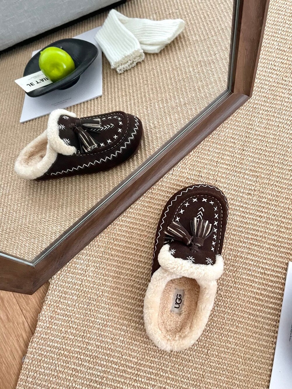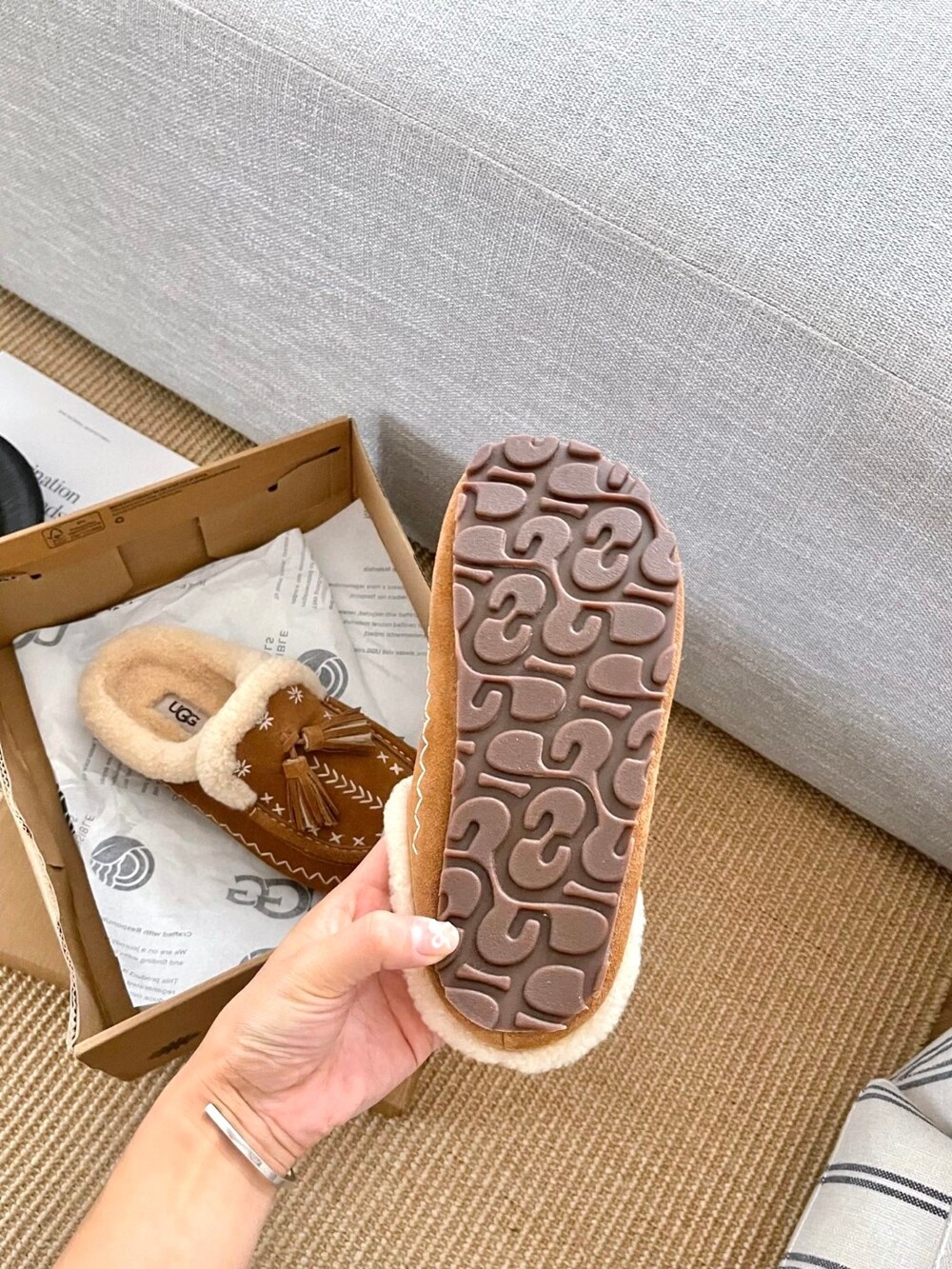 [수입] UGG Tassel Embroidered Shearling Slippers