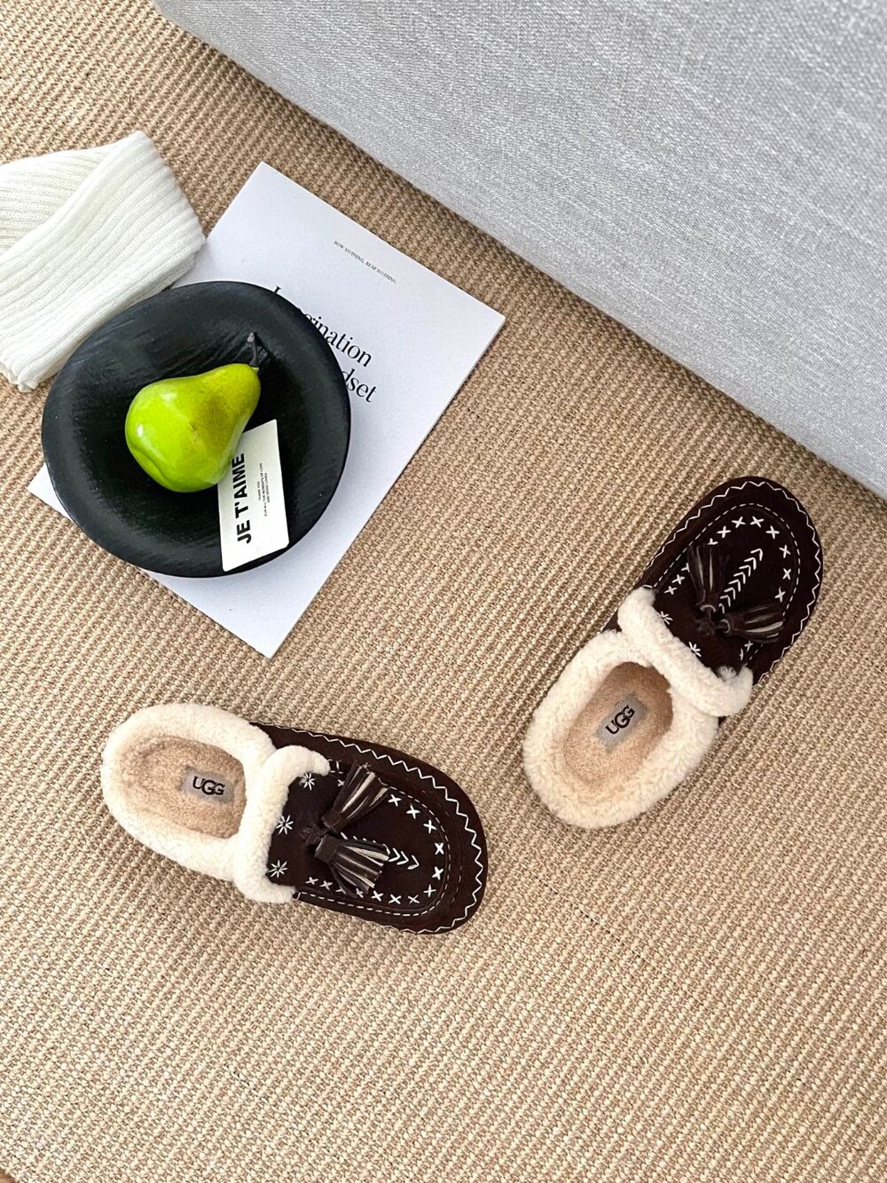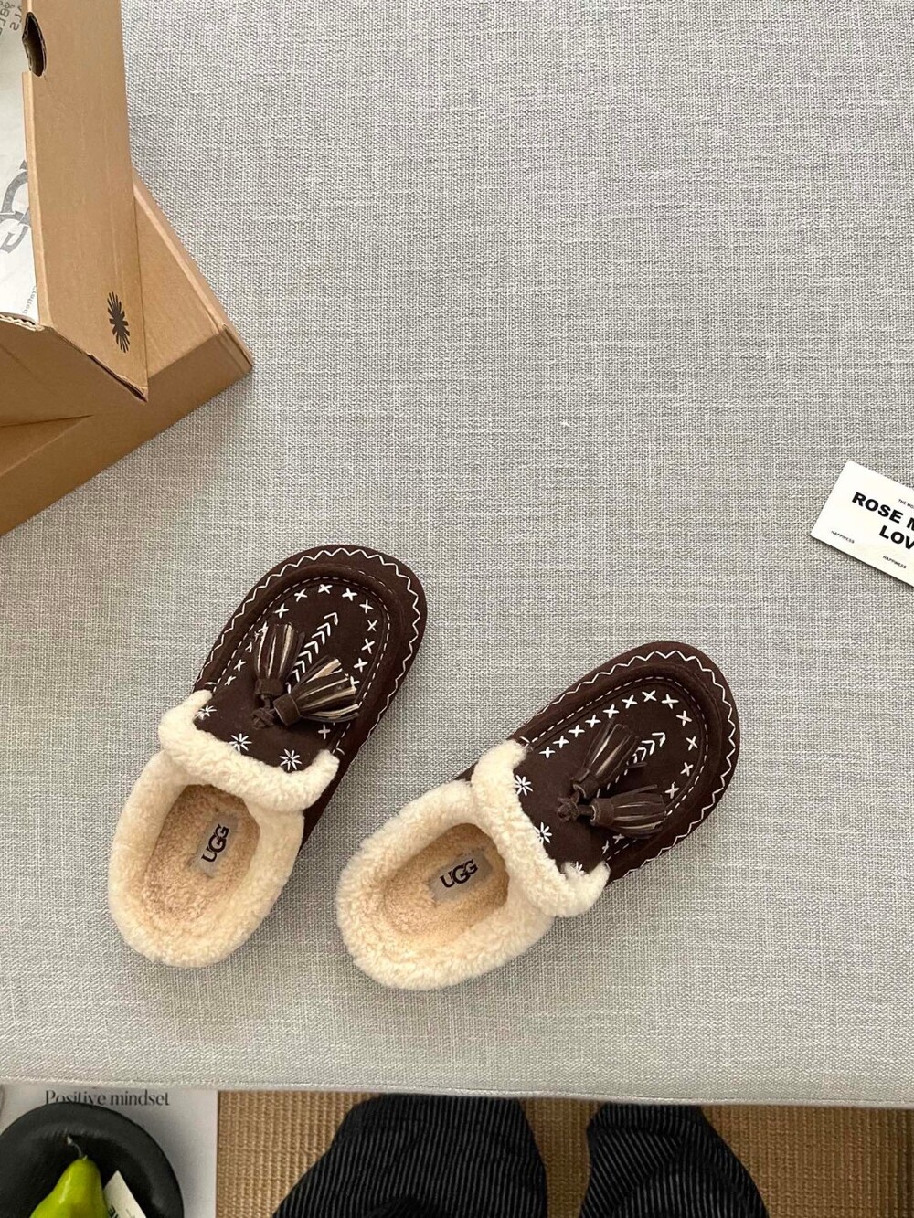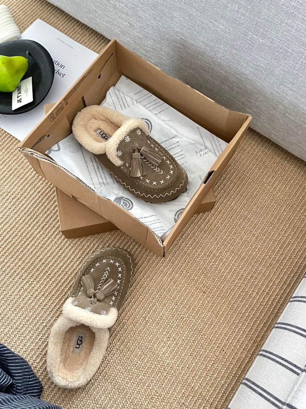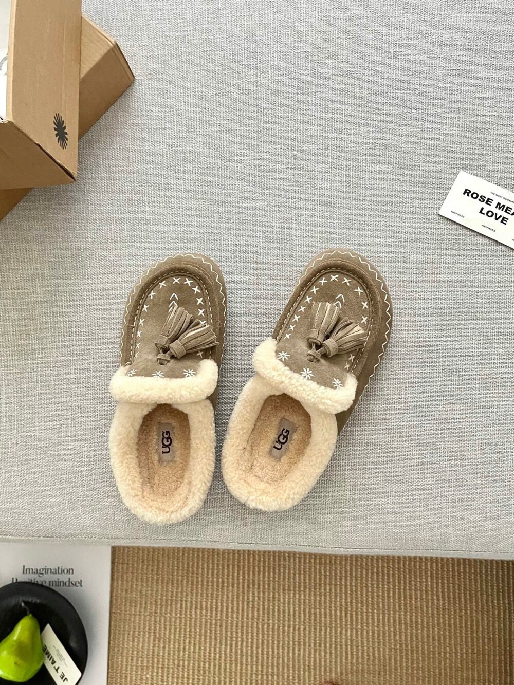 [수입] UGG Tassel Embroidered Shearling Slippers