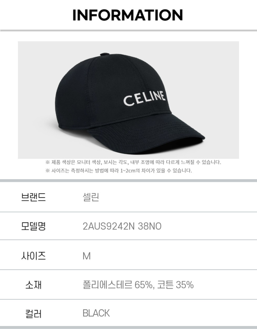 [국내재고보유] 셀린느 로고 자수 볼캡[BLACK/M] 2AUS9242N 38NO