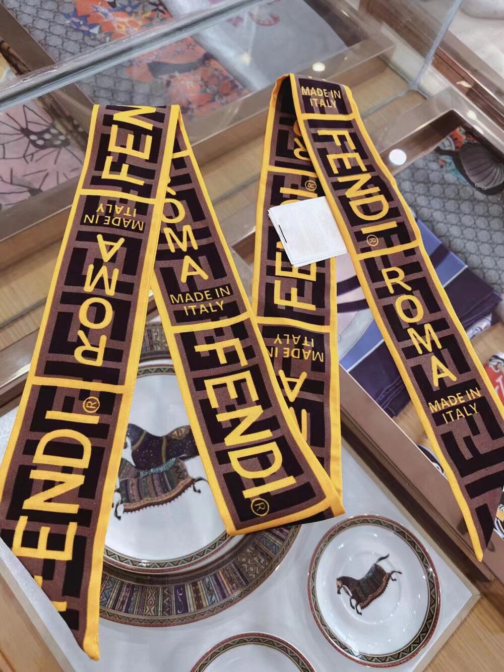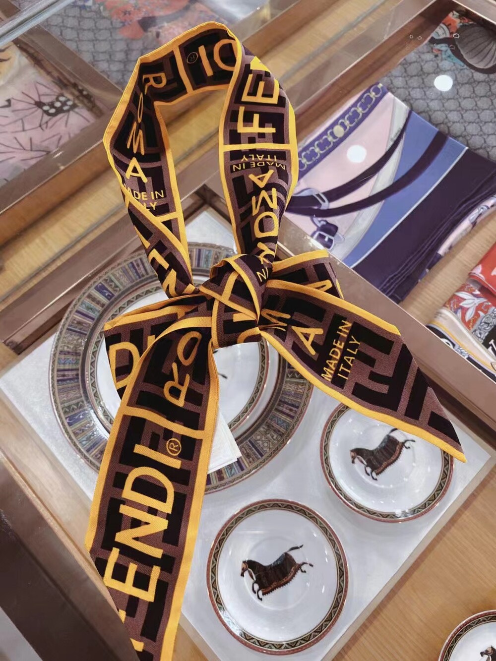 실크 스카프 카운터 펜디 포인트 사용/더블 레이어 실크/ 가방 묶기, 헤어밴드, 작은 스카프로 활용도가 높습니다, 심플한 베이스코디나 셔츠와 레이어드해도 예뻐요 :) 🎀실크 100%. 최신 카운터 기프트