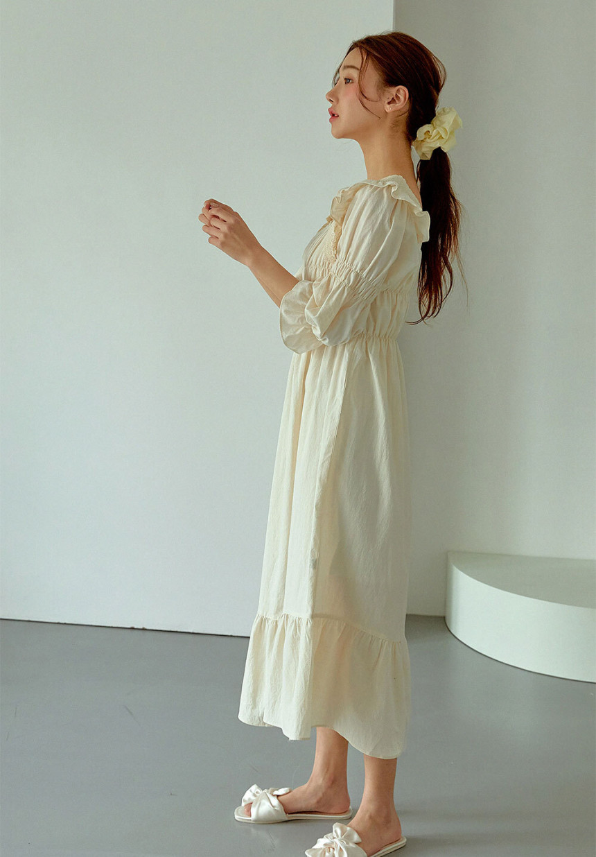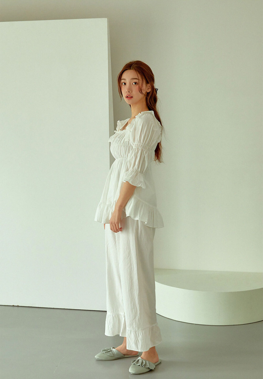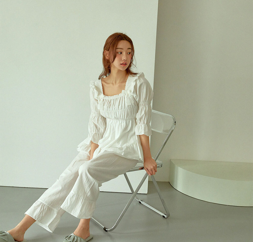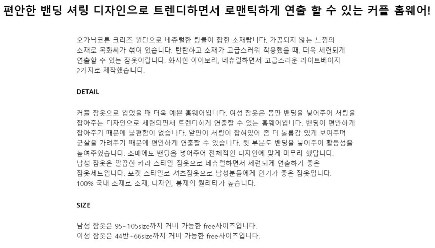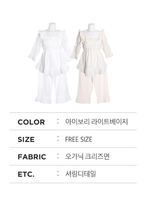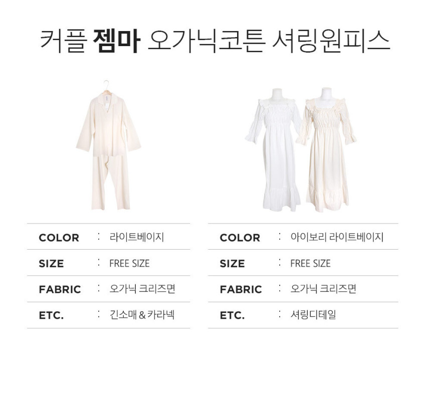 여성 남성 커플 젬마 오가닉코튼 셔링 원피스 투피스 잠옷