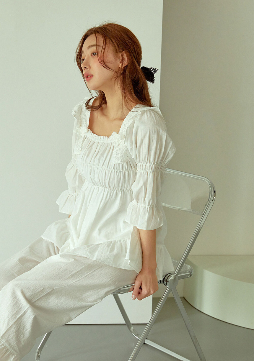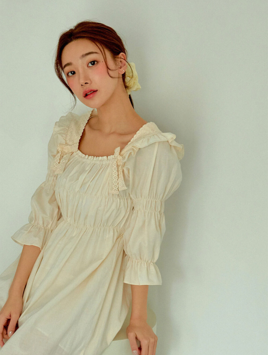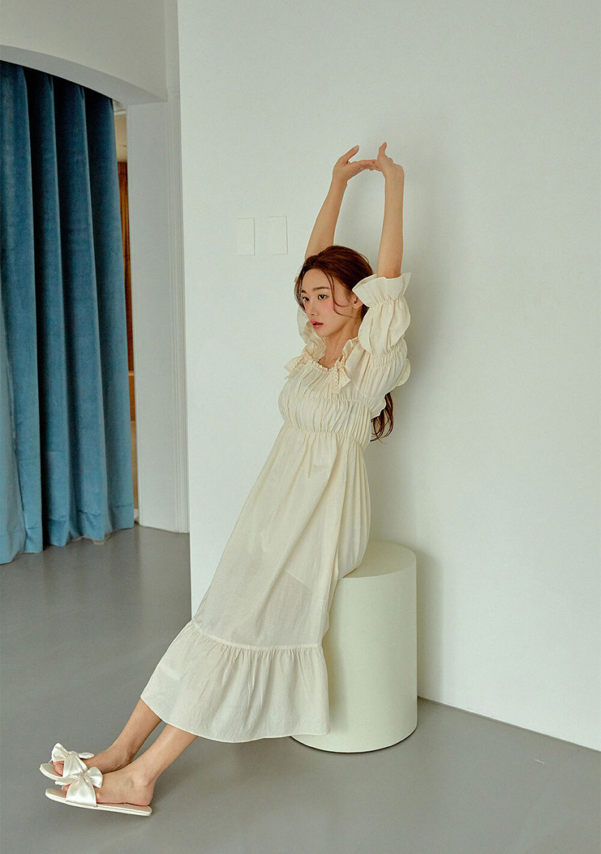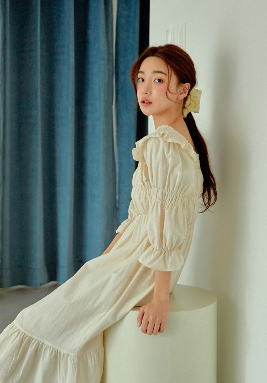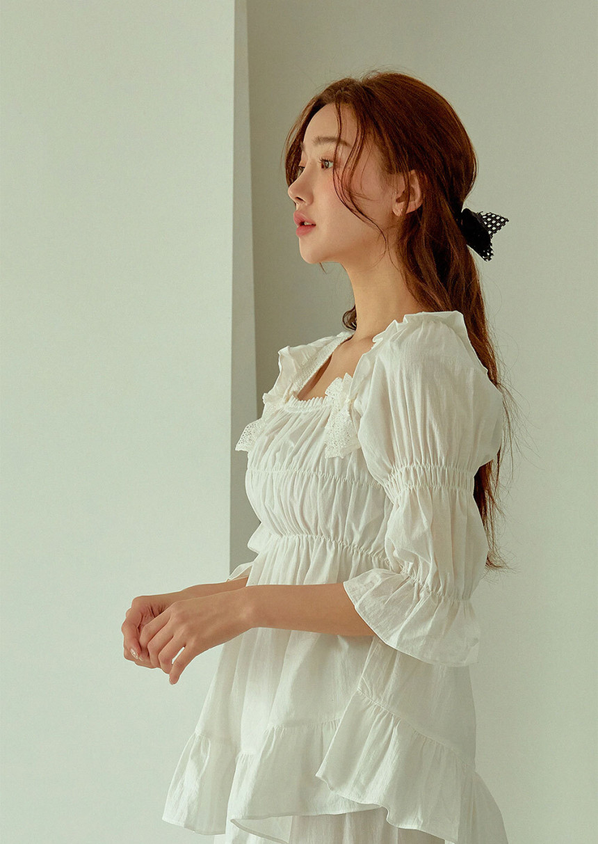 여성 남성 커플 젬마 오가닉코튼 셔링 원피스 투피스 잠옷