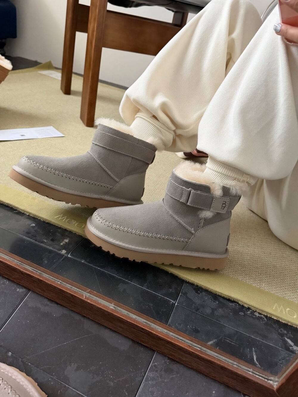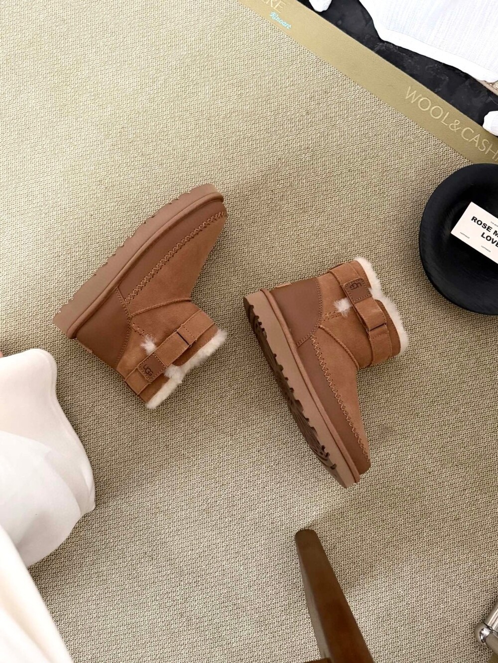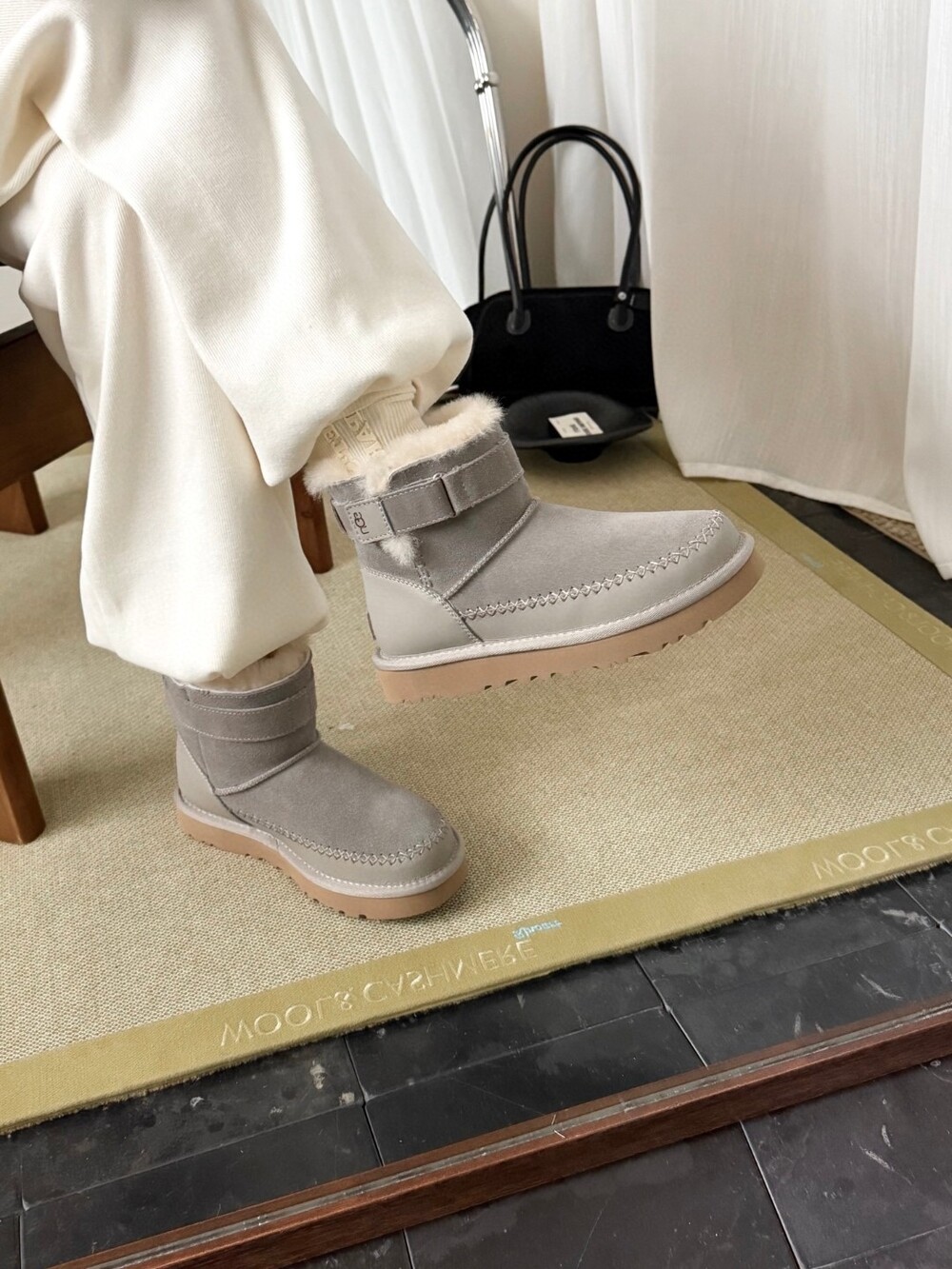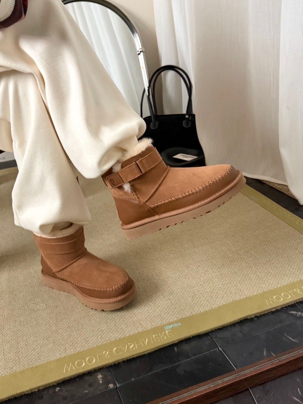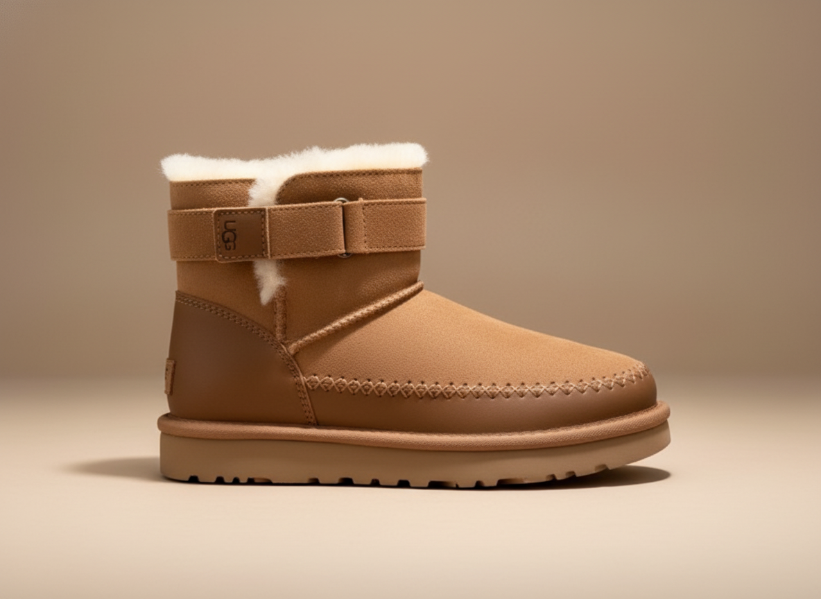 UGG의 클래식 라인에 세련된 벨트 디테일을 더한 숏부츠