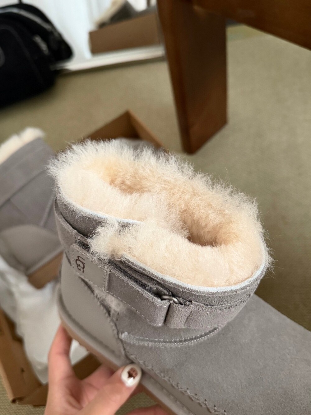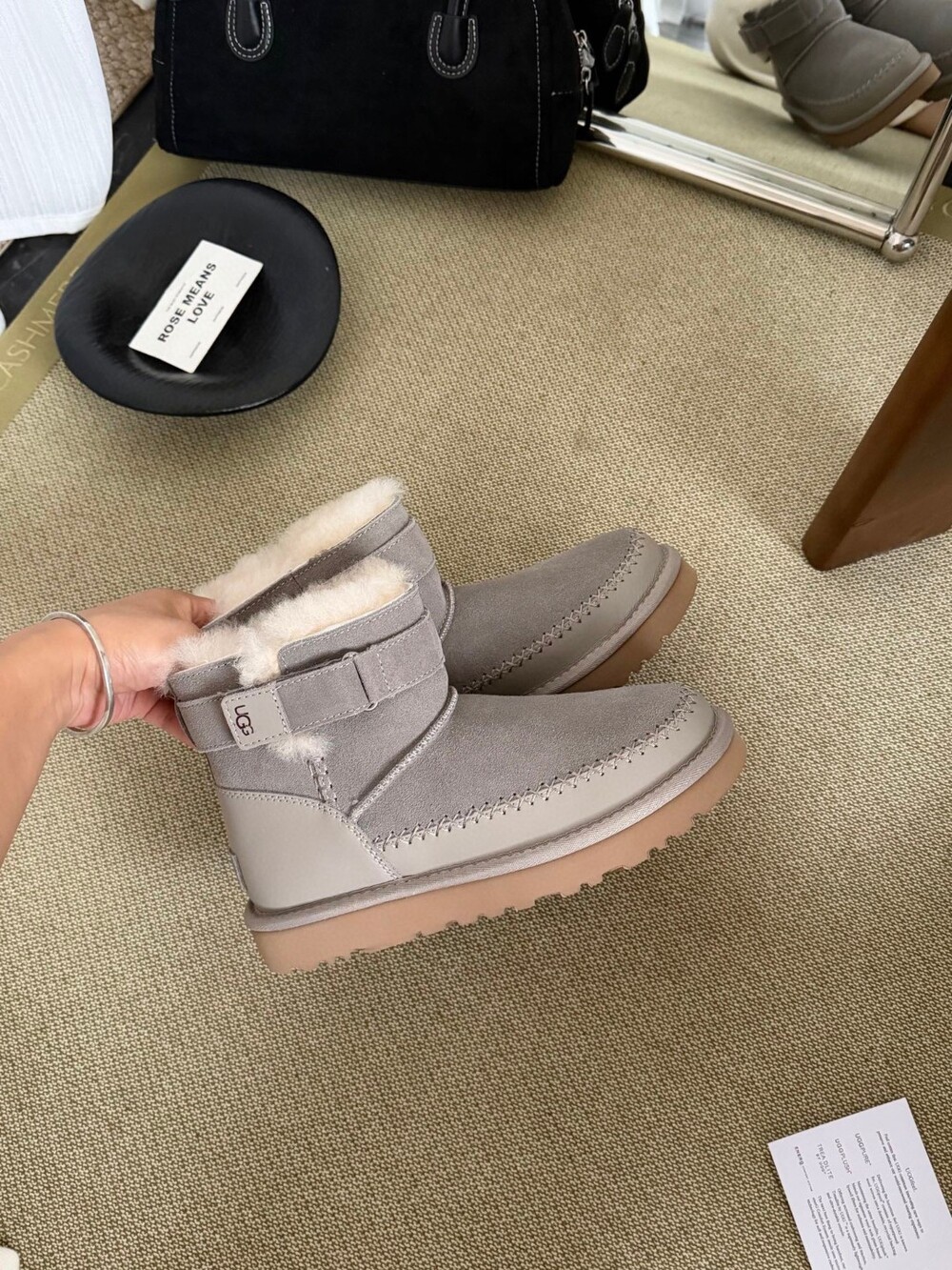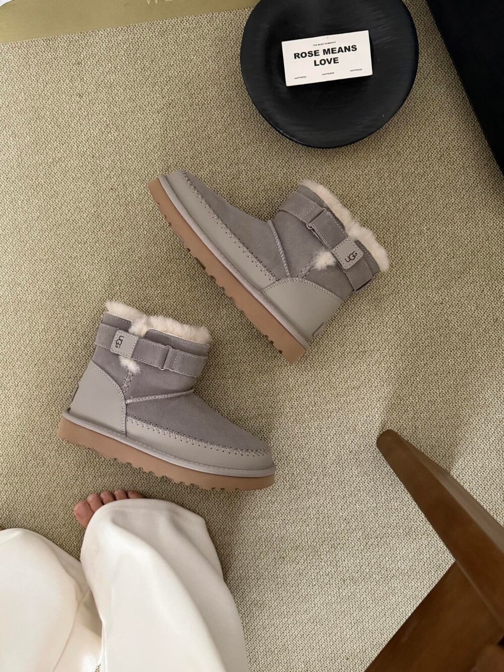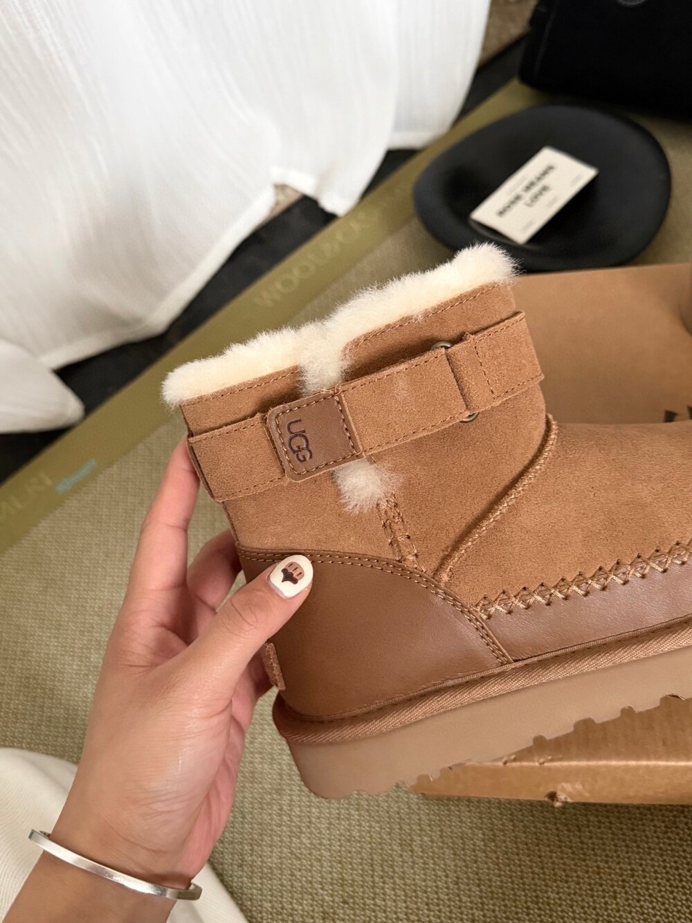 UGG의 클래식 라인에 세련된 벨트 디테일을 더한 숏부츠