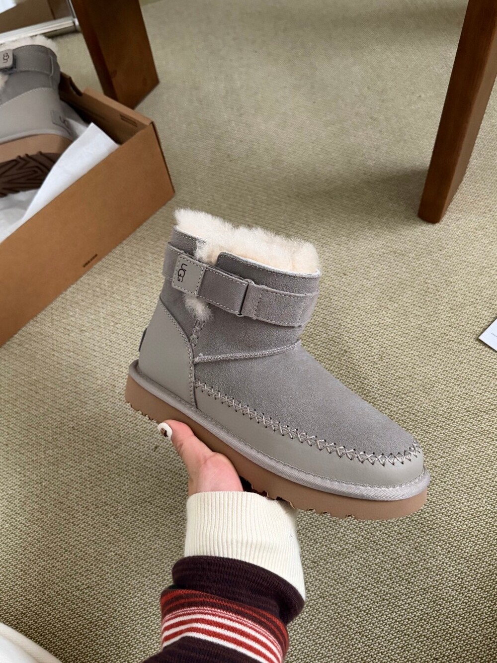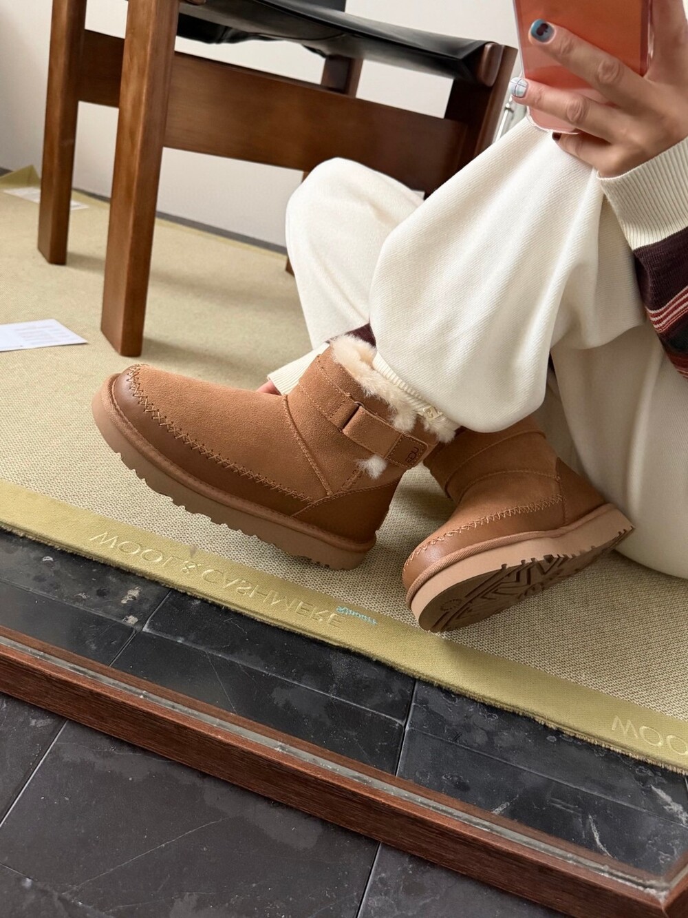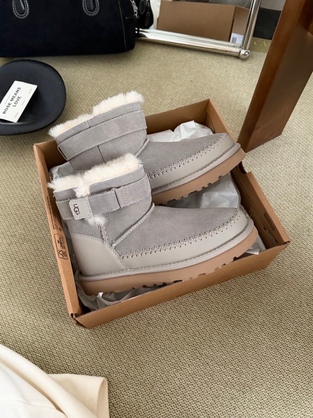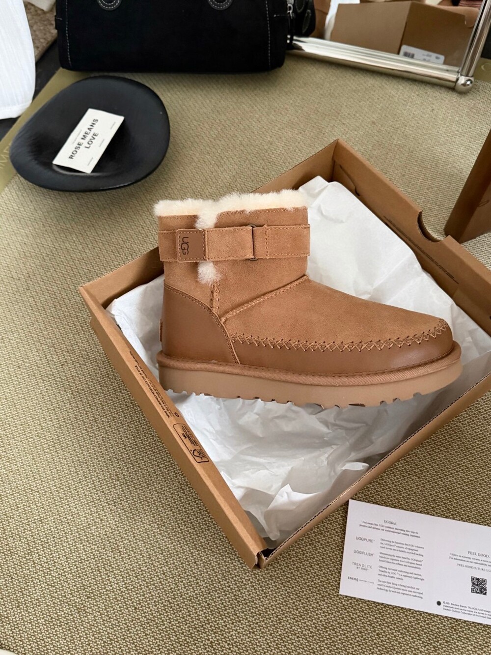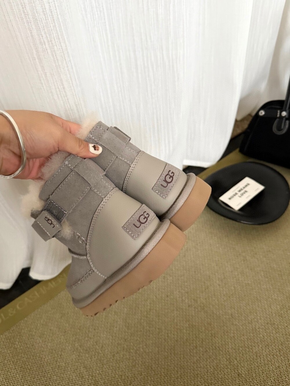 UGG의 클래식 라인에 세련된 벨트 디테일을 더한 숏부츠