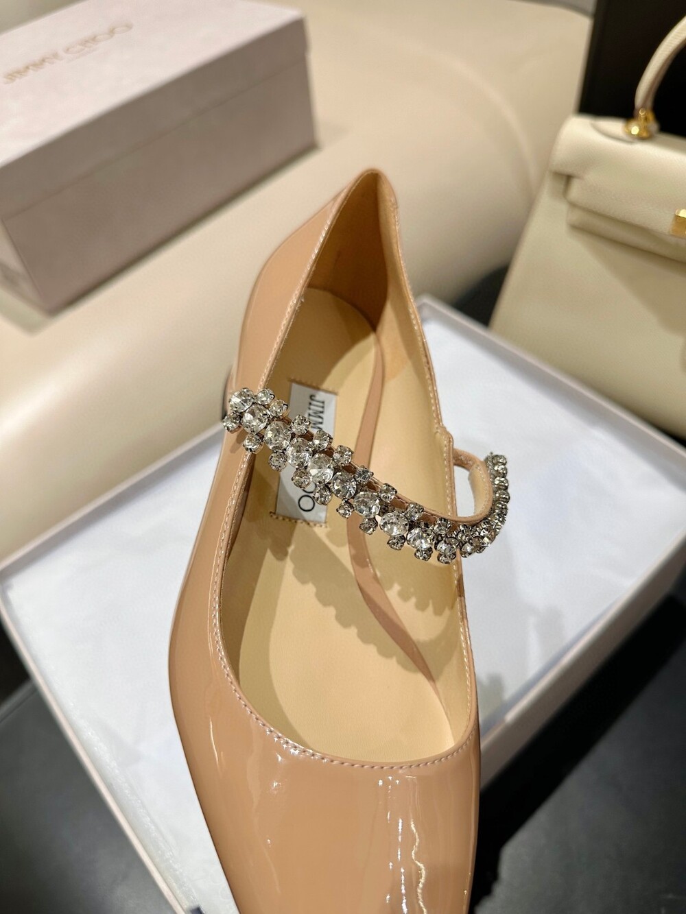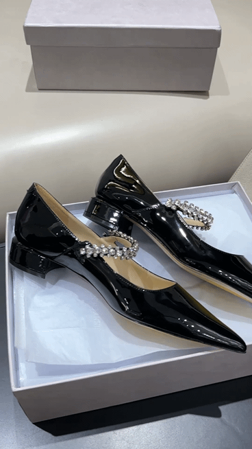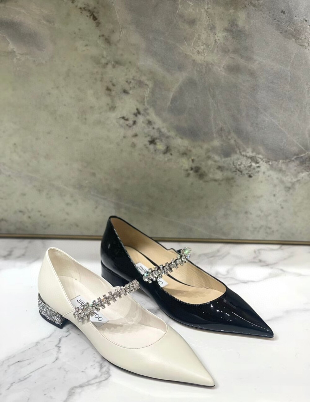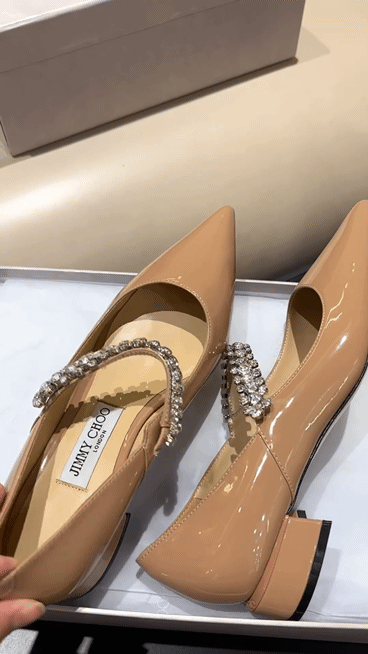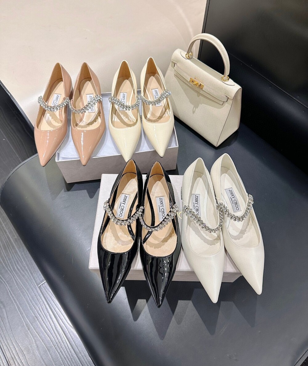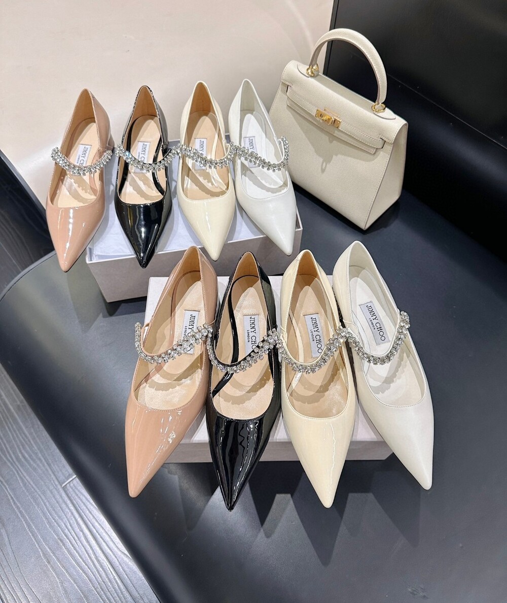 지미 특유의 빙 스톤 장식이 발을 화사하게 만들어주면서