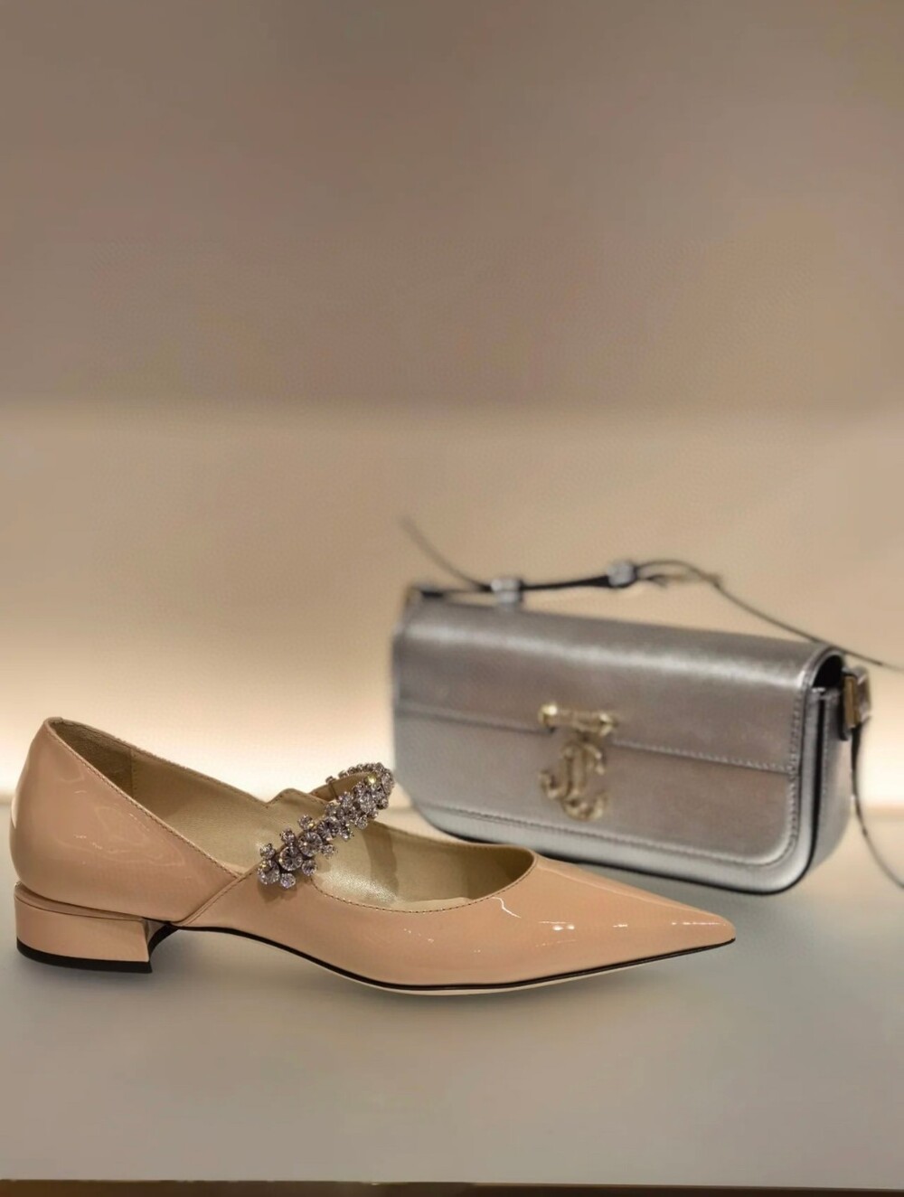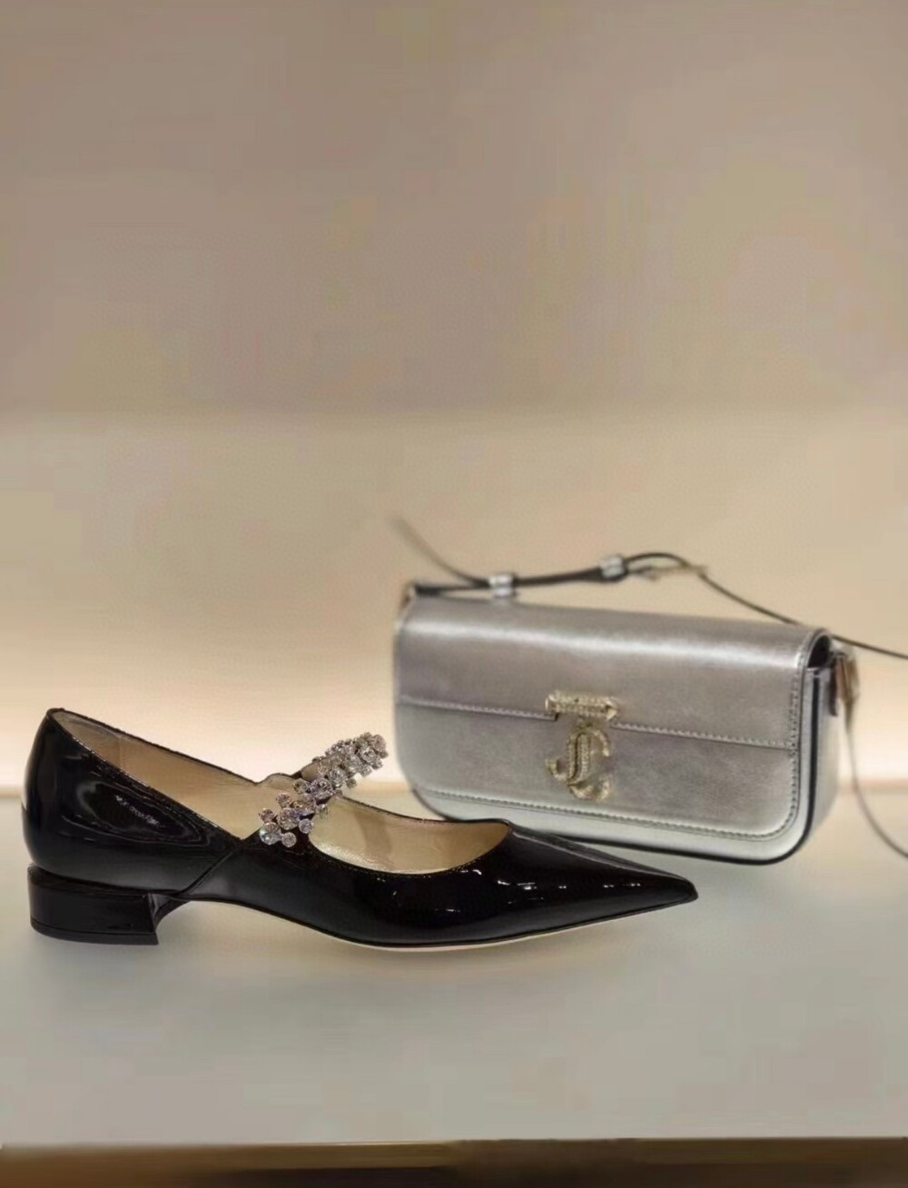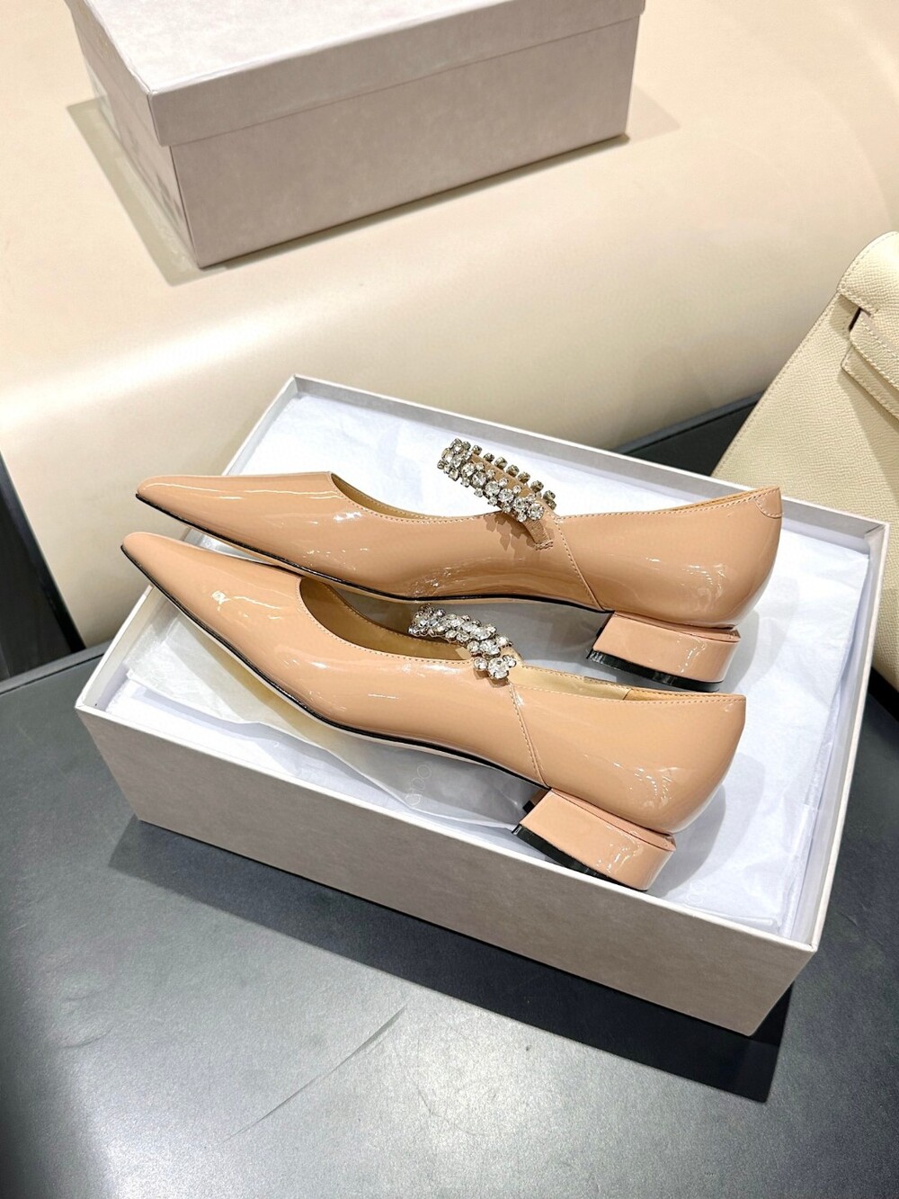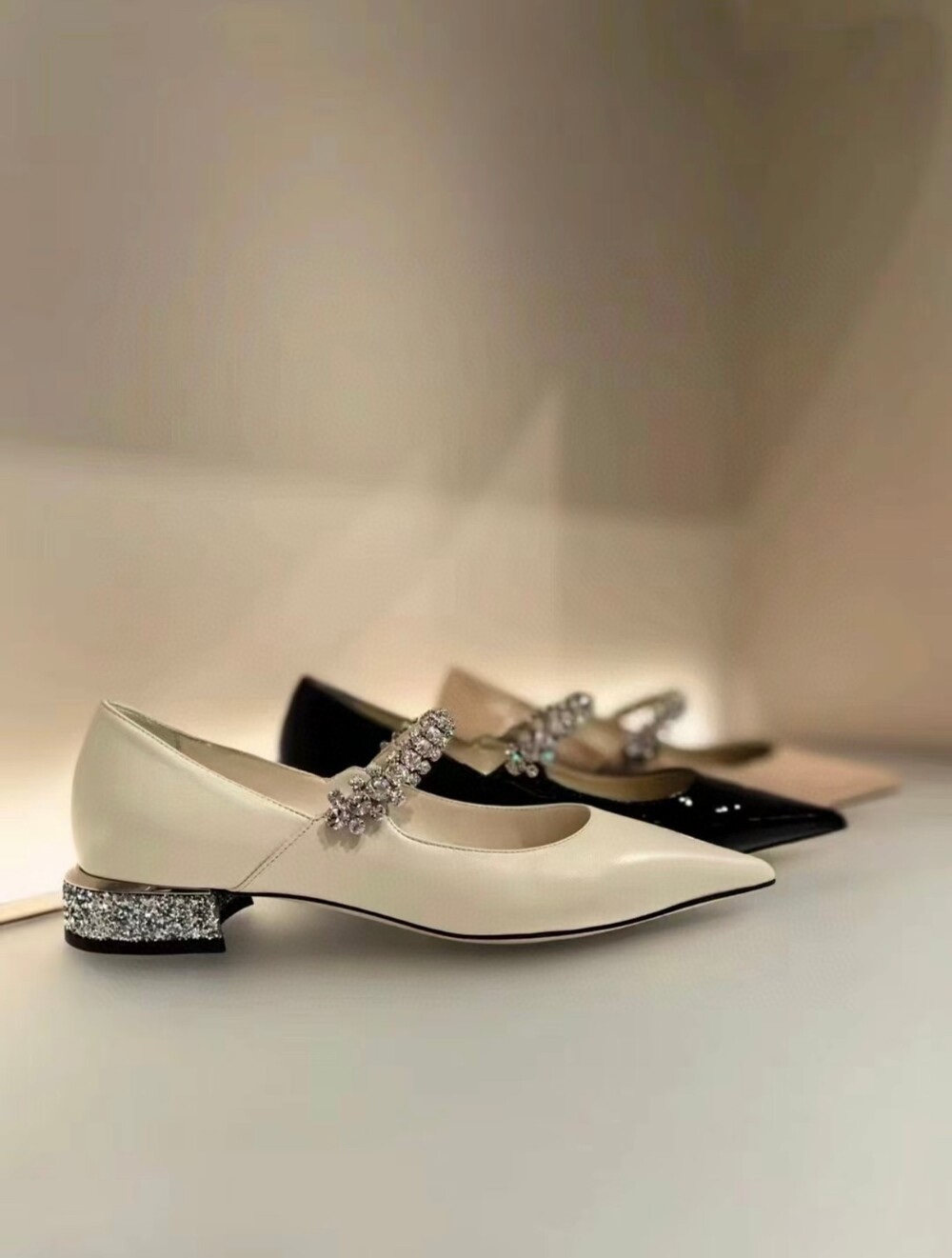 지미 특유의 빙 스톤 장식이 발을 화사하게 만들어주면서