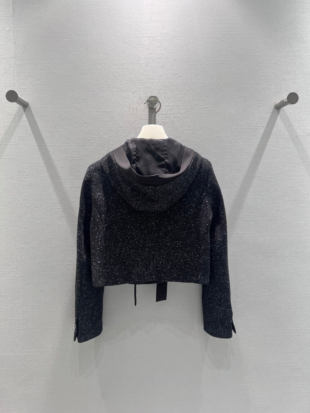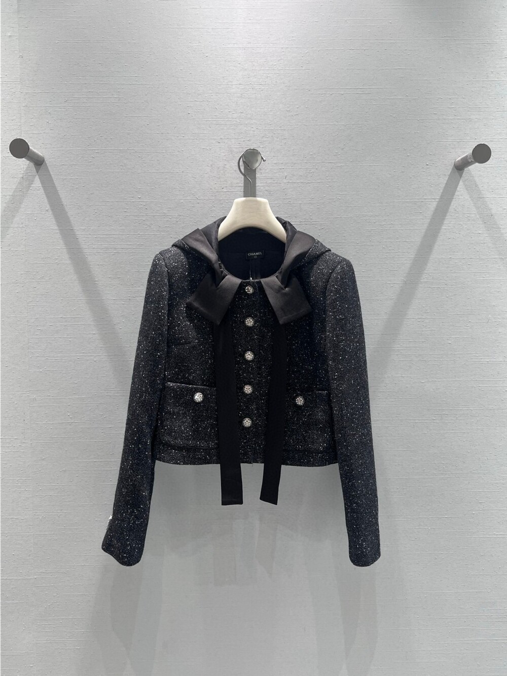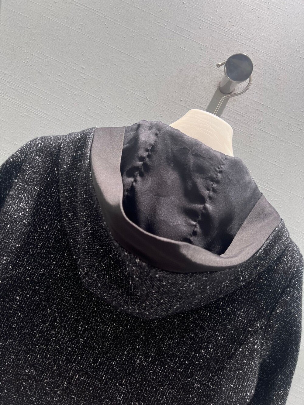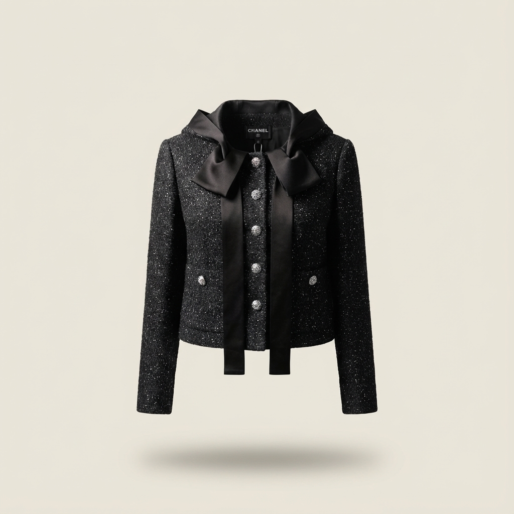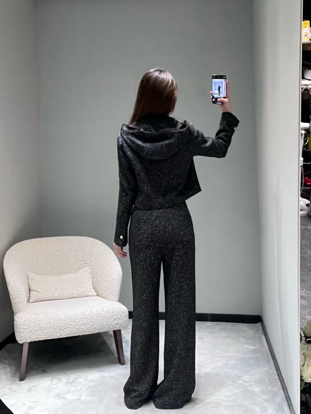 블랙 트위드 베이스에 실버 반짝임이 은은하게 섞인 고급스러운 셋업이에요