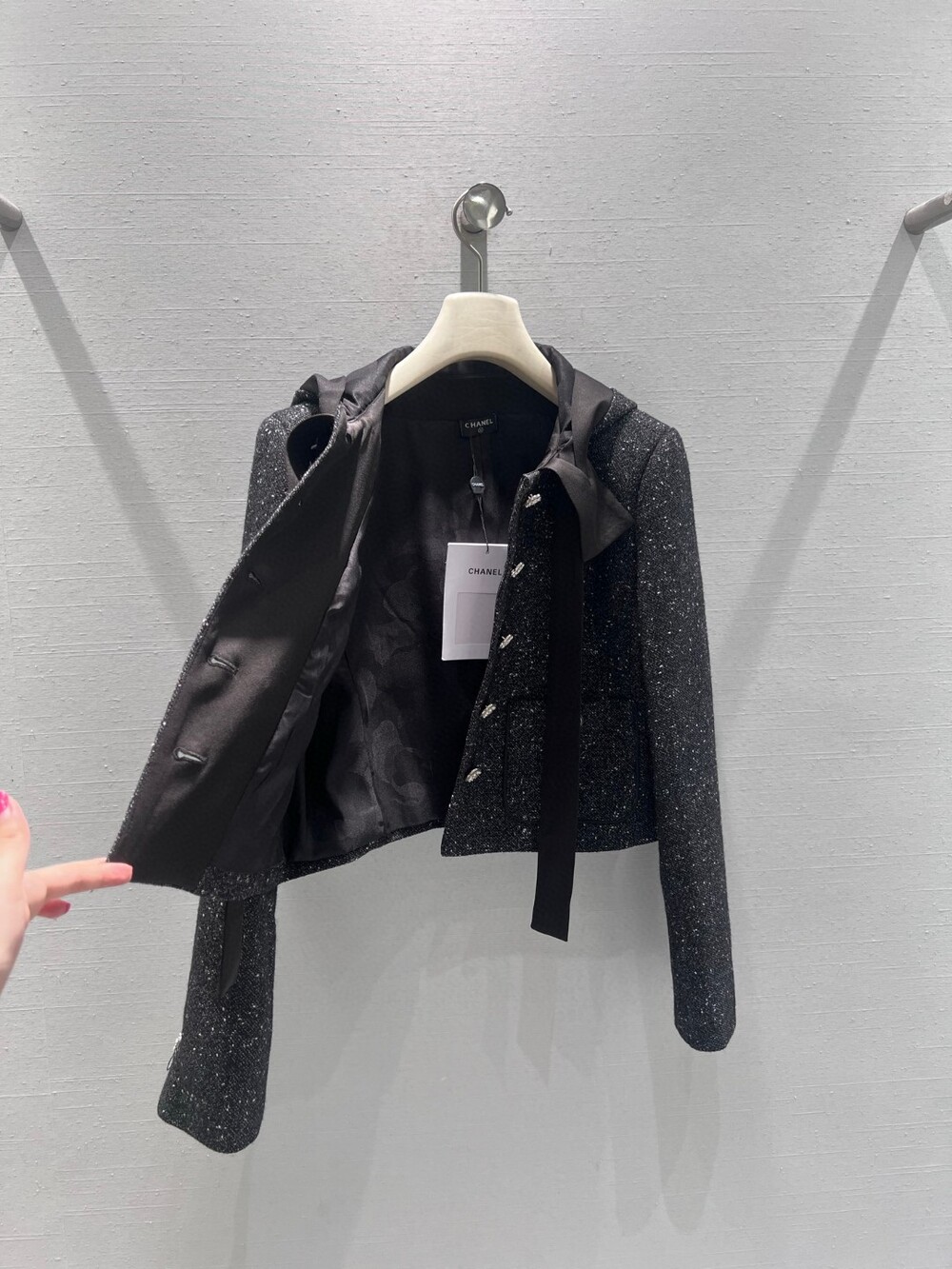 리본이 달린 새틴 카라가 포인트인 자켓은