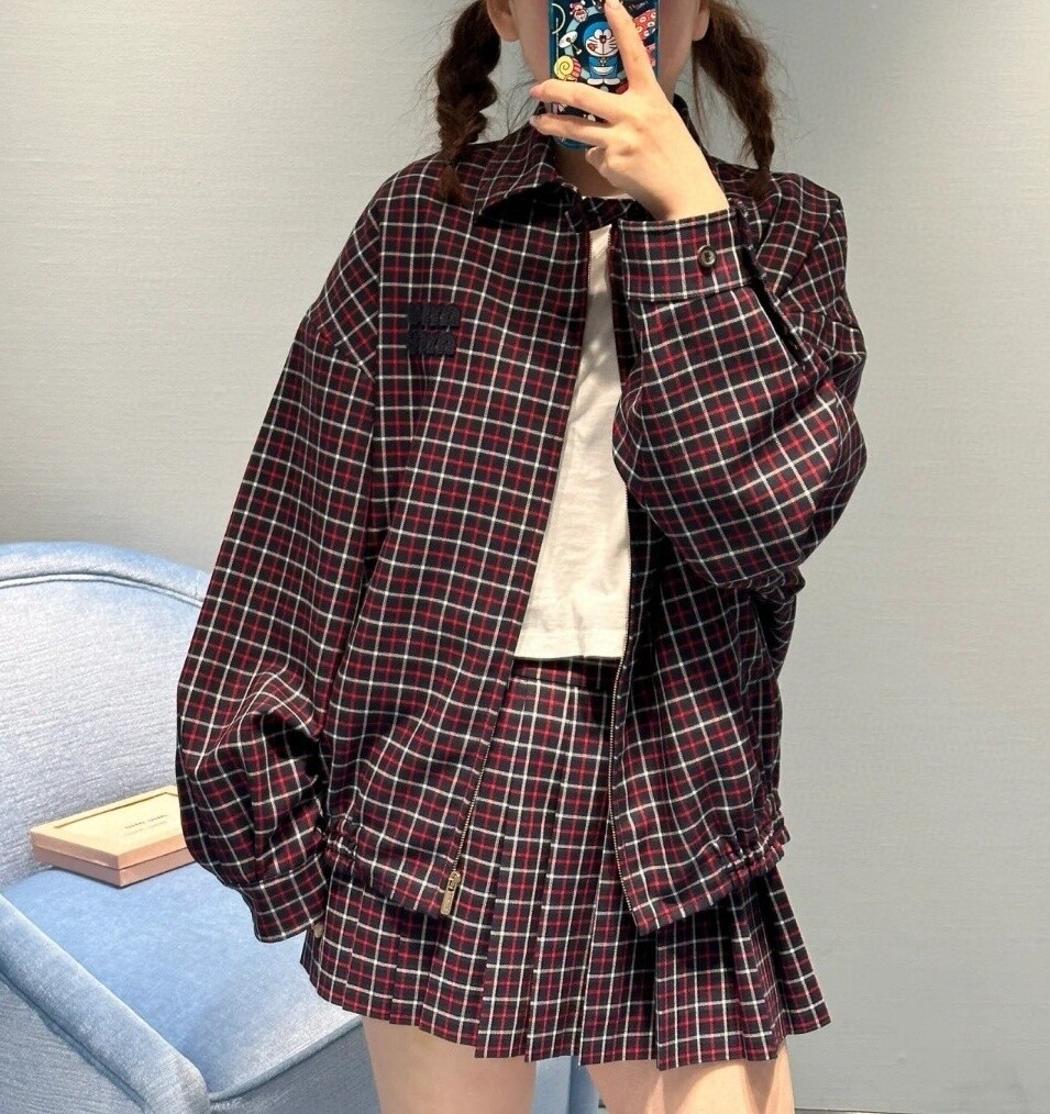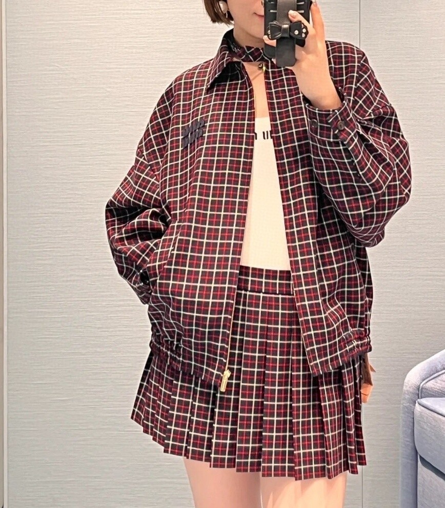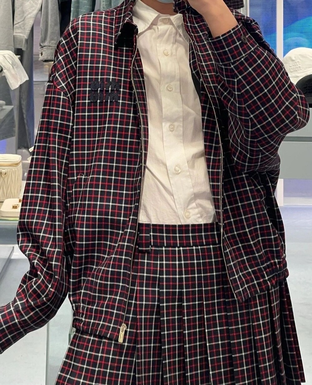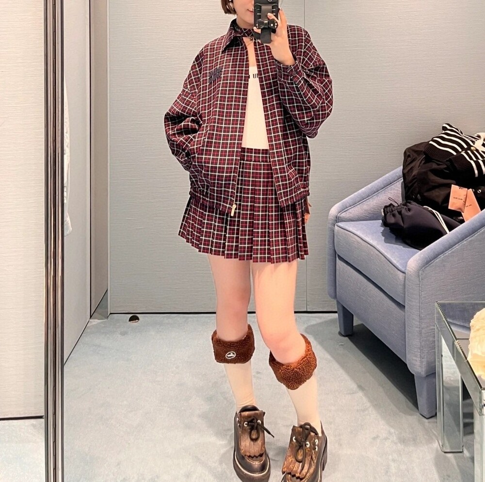 캐쥬얼하게 입을 수 있는 봄버 자켓과 플리즈 스커트에요