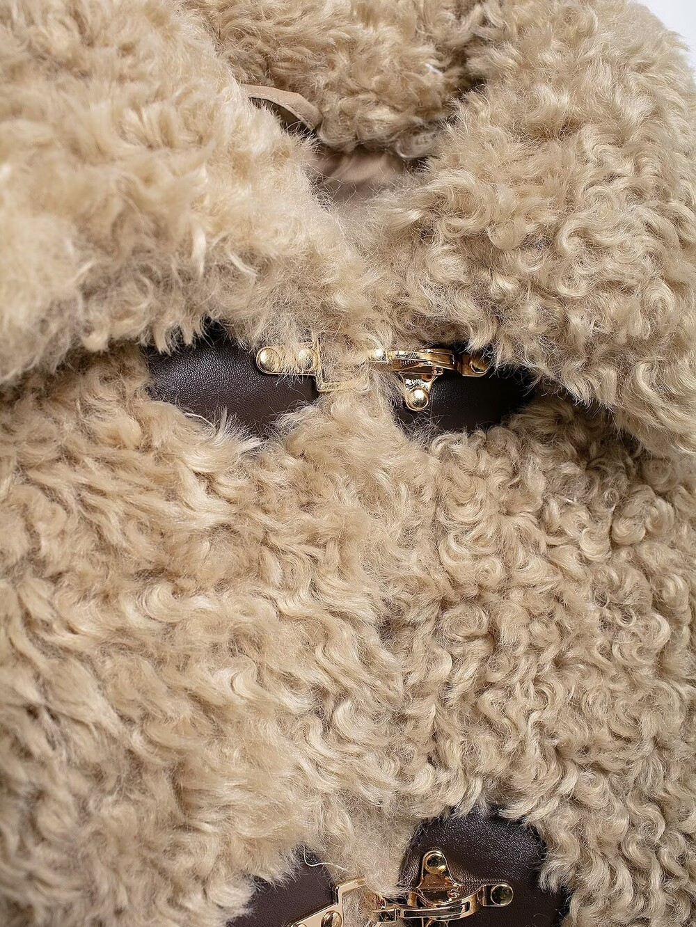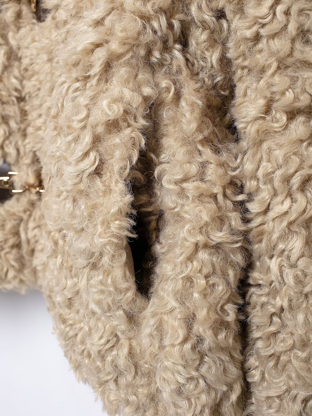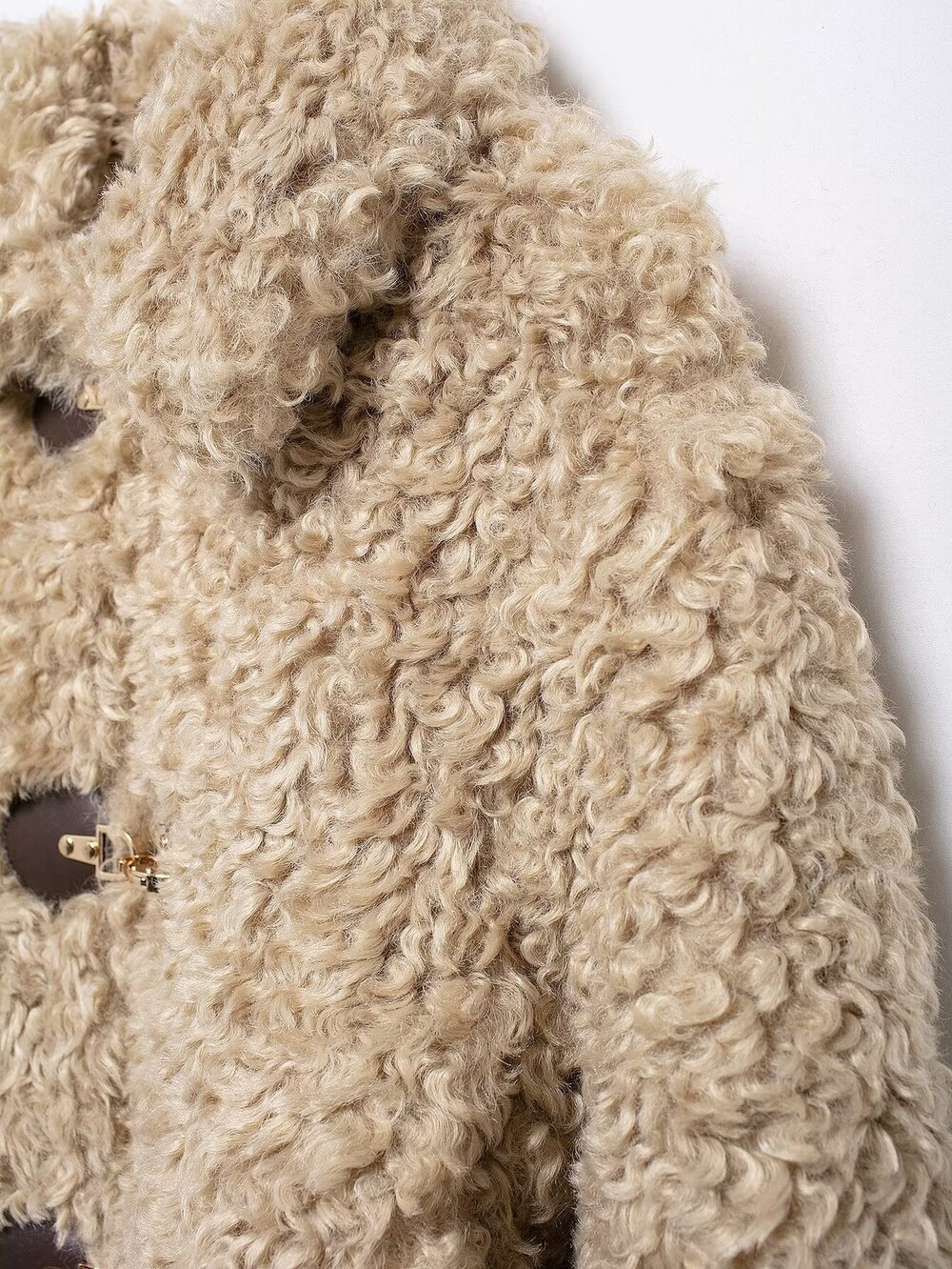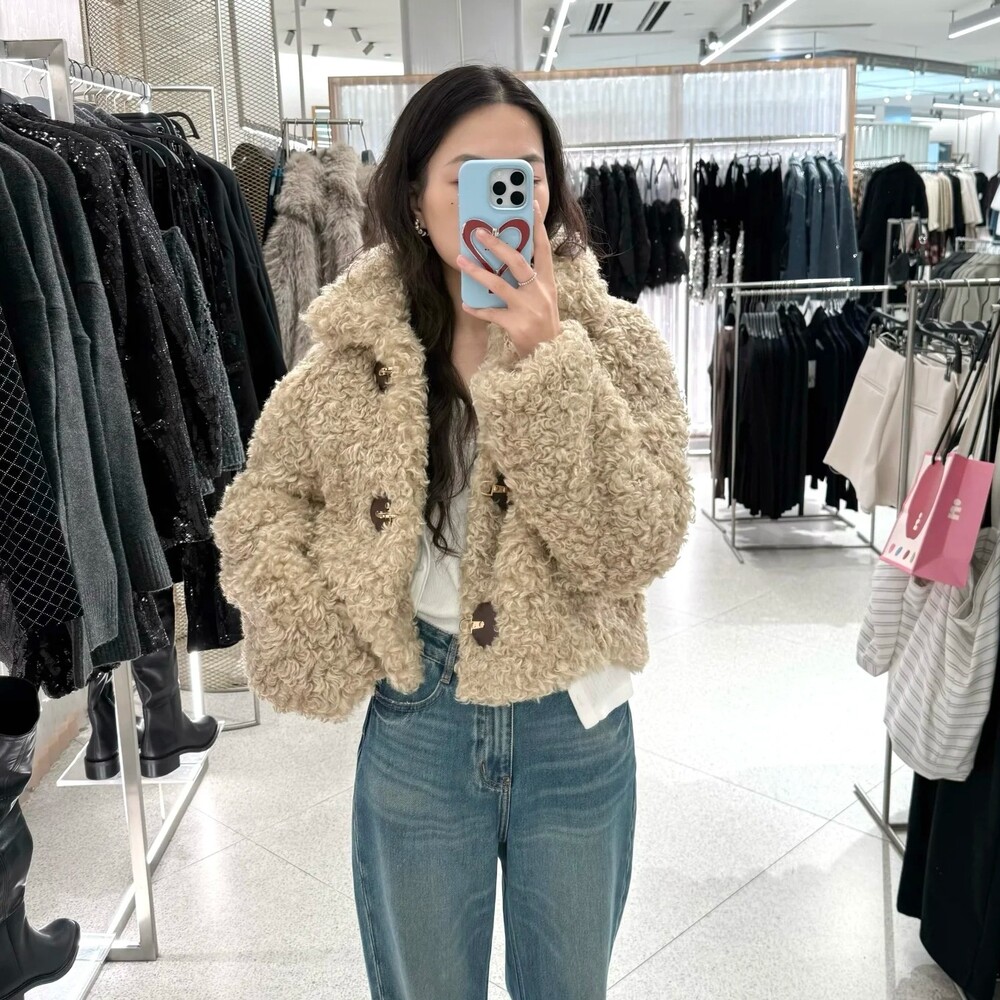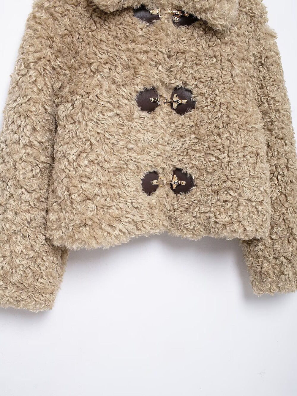 보송보송한 인조 시어링 텍스처가 돋보이는 테디 버클 숏코트입니다.