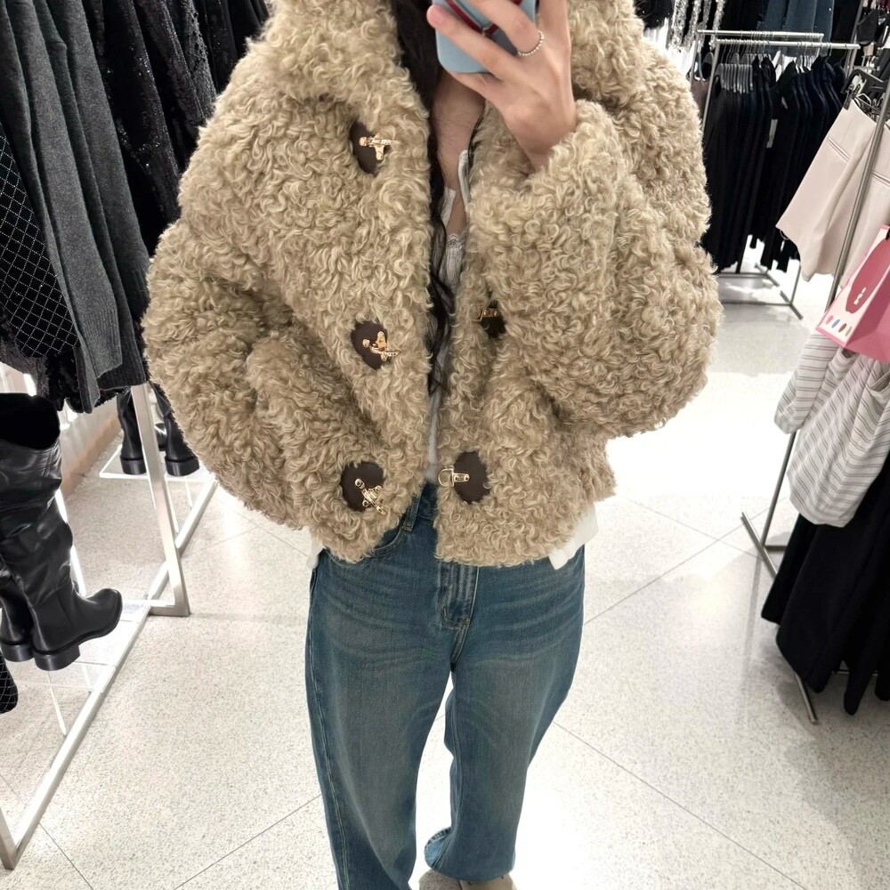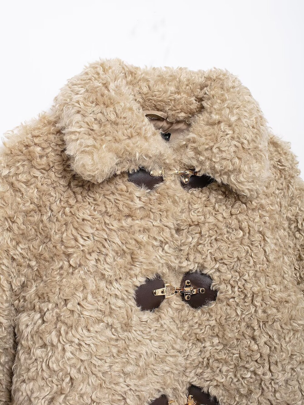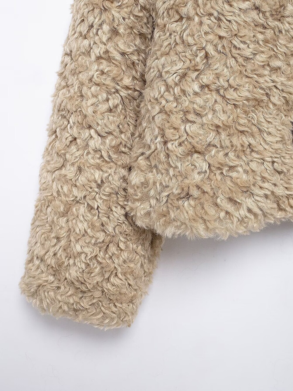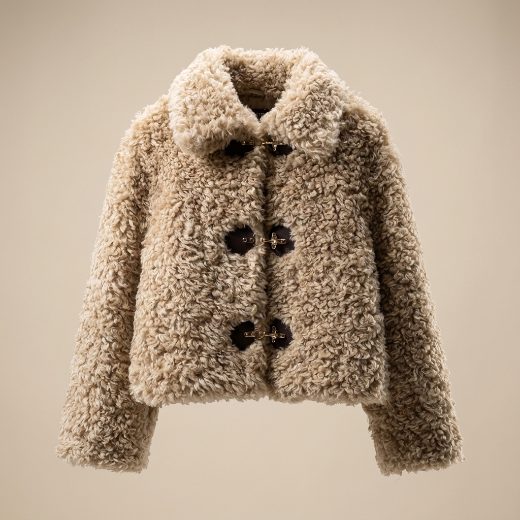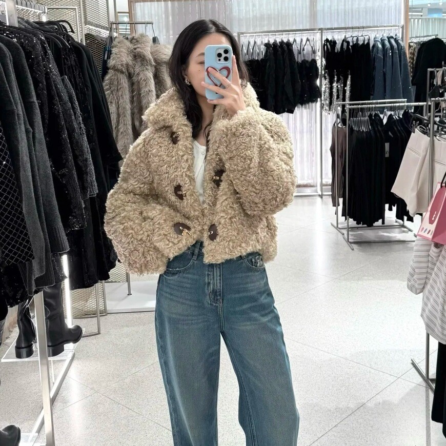 보송보송한 인조 시어링 텍스처가 돋보이는 테디 버클 숏코트입니다.