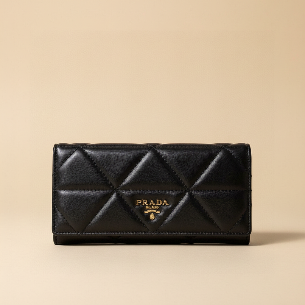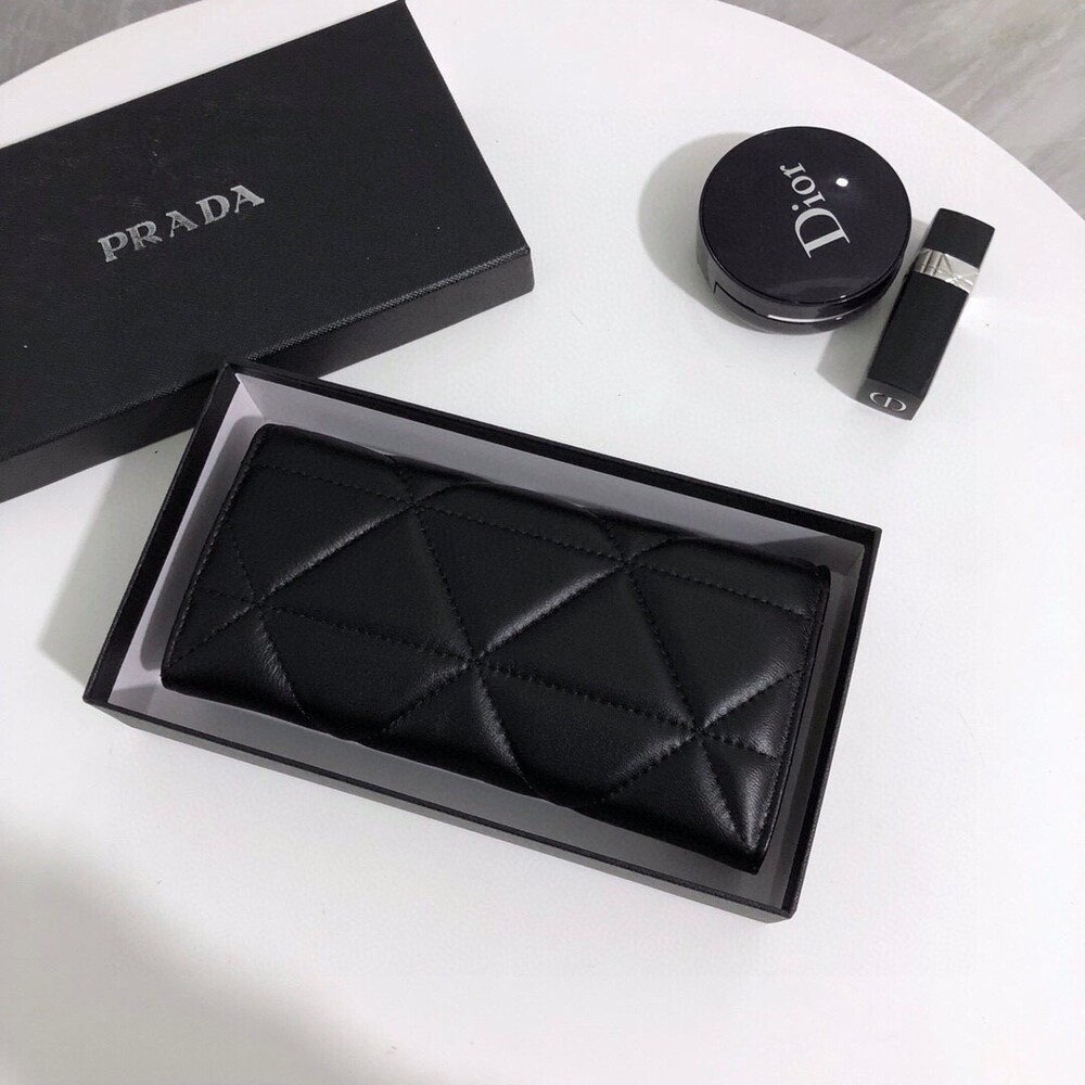 Experience timeless elegance with the PRADA Quilted Lambskin Bi-Fold Wallet,