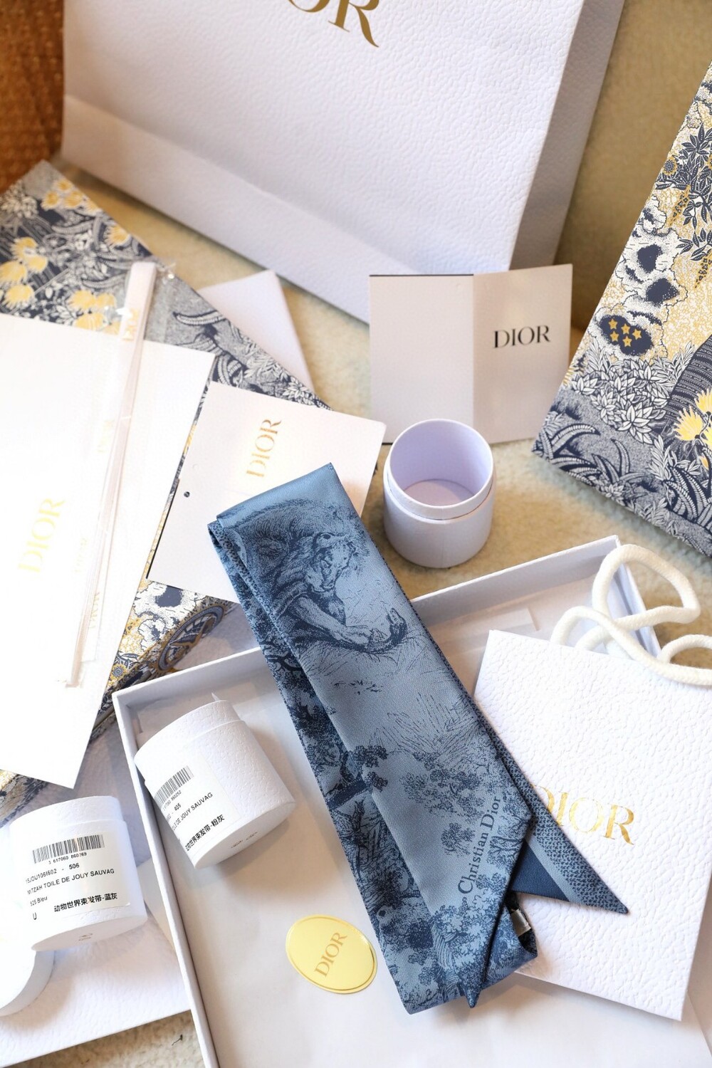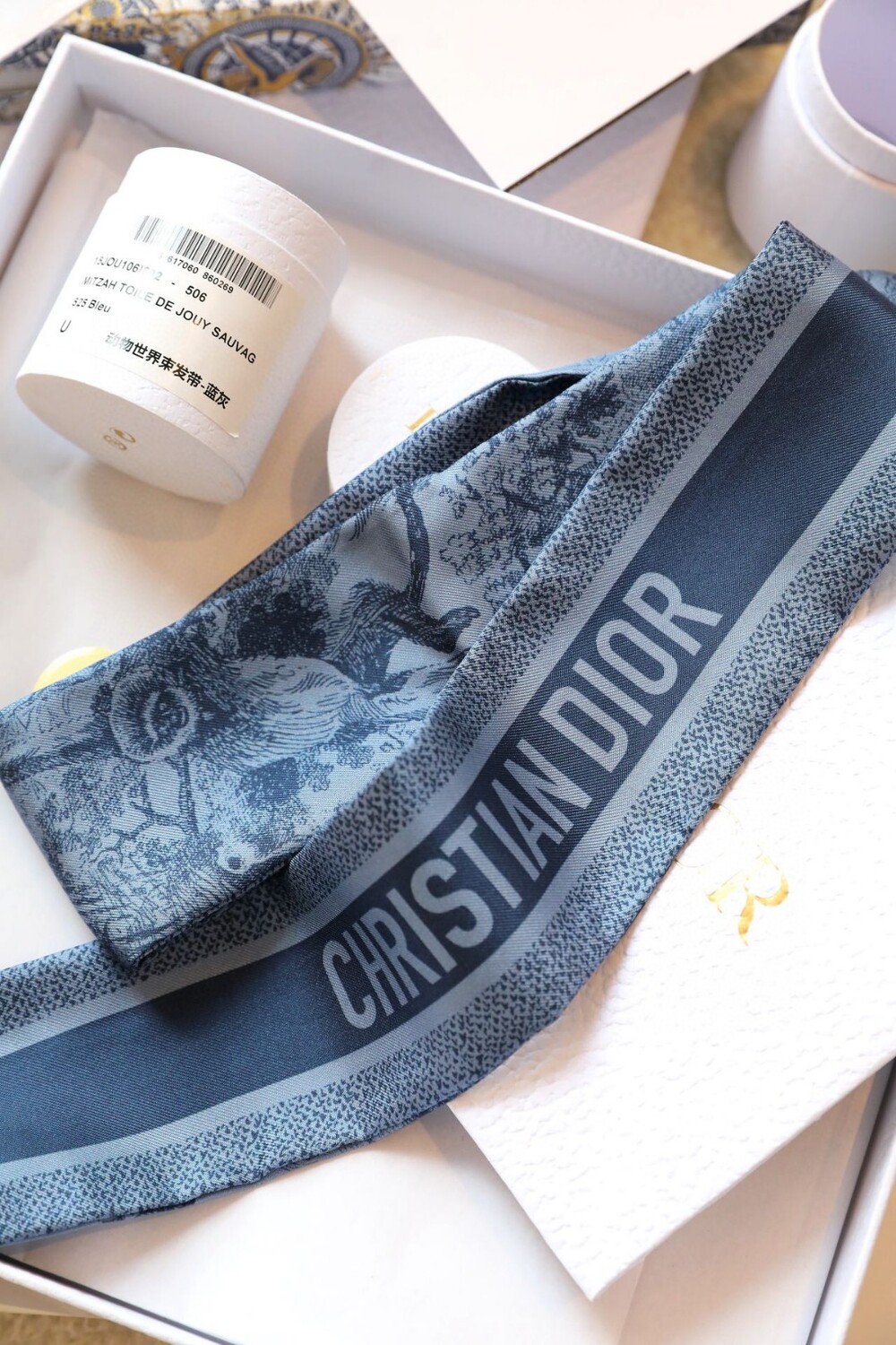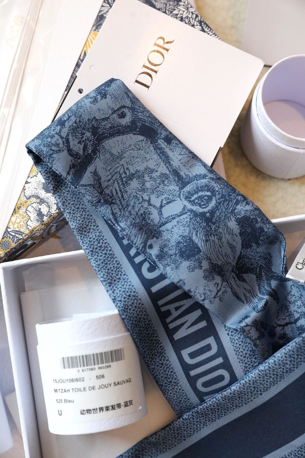 Dior senior gift item name: Animal World HairbandFabric: heavy 18mm silk, size: 6*105This Sauvage Ruy print pays tribute to the iconic design introduced by the D family in 1947.Made of ivory and navy mulberry silk twill fabric, it is embellished with contrasting logo jacquard pattern.It can be worn on the neck or as a head to create a complete D-family look.Ivory and Navy Blue Rui PrintsContrasting CD logo bar pattern100% mulberry silk